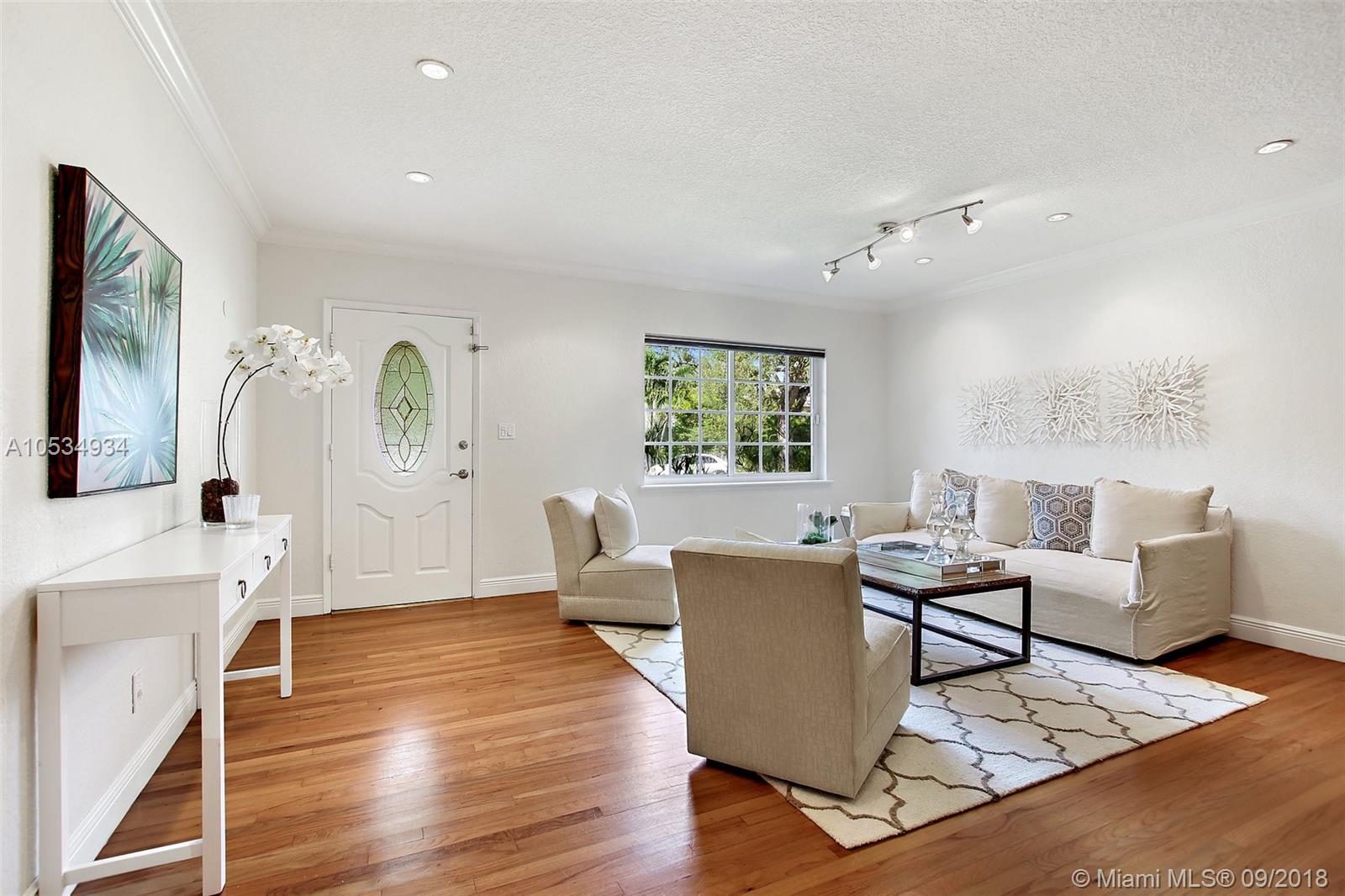 LOOK NO FURTHER! A perfect "10" centrally located 3/3 completely updated Gables home. Open floor plan featuring impact windows/doors, gleaming wood flooring throughout, renovated bathrooms, stainless steel kitchen plus amazing closets. Only a few steps to the Trolley and access to central Coral Gables or the metro.