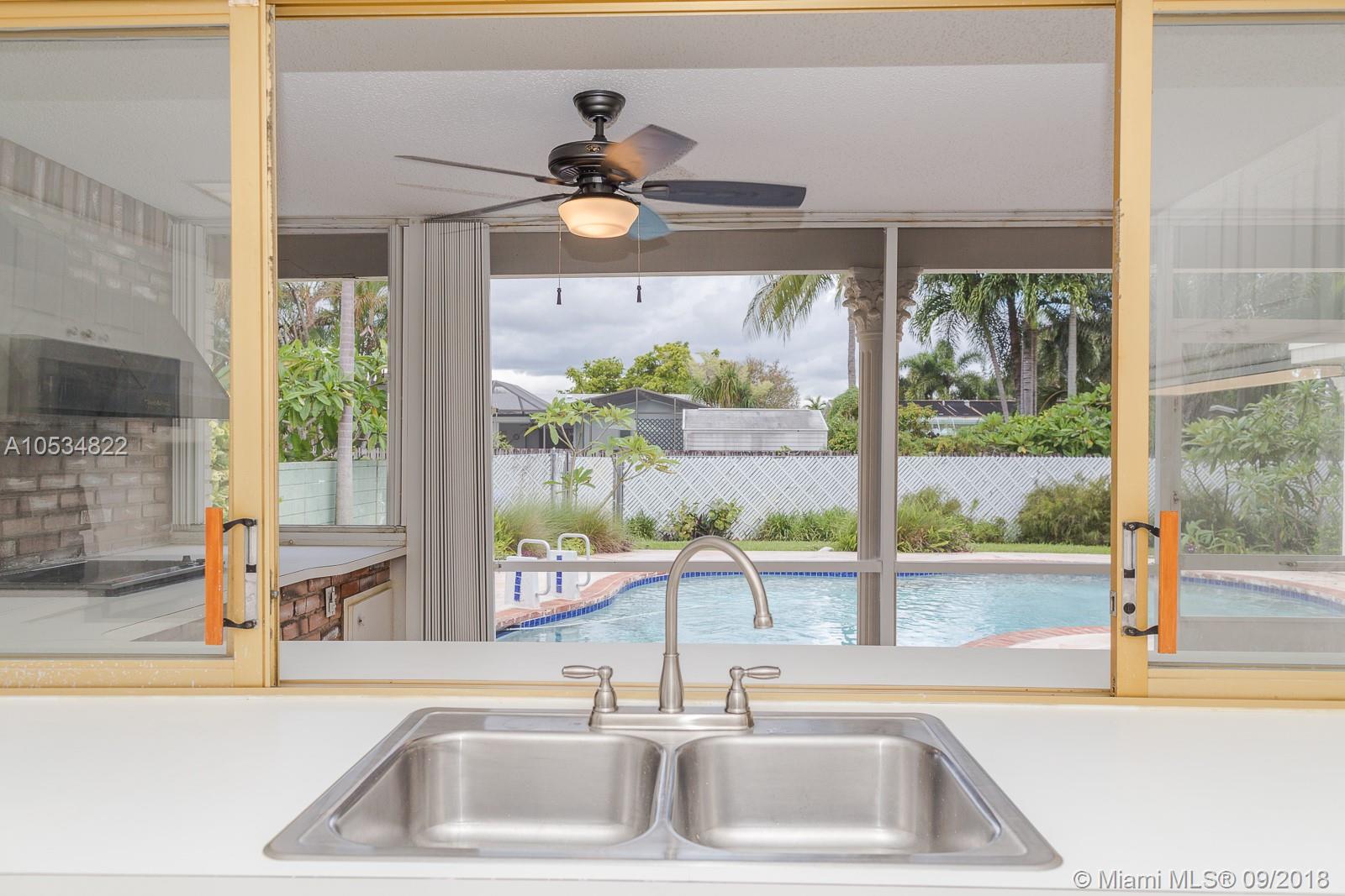 MOVE FAST ON THIS OASIS IN HOLLYWOOD HILLS! This home’s landscaping is the talk of the block. Featuring 3 bedrooms, 2 bathrooms, formal living room, formal dining room, large kitchen, family room, screened-in lanai with built-in grill, 2 car garage, and swimming pool. The kitchen was updated traditional style with white cabinets, stainless steel appliances and a small seating area that is perfect for quick meals. The kitchen opens to the lanai and shares a small counter with the built-in grill. The resort like backyard steals the show with it’s lush landscaping, stamp concrete pool deck and a beautiful free form pool. In addition, 2018 kitchen appliances, storm ready w/ hurricane shutters, new laminate wood floors, new interior paint and termite warranty.PERFECT MARRIAGE OF LAND AND HOUSE!