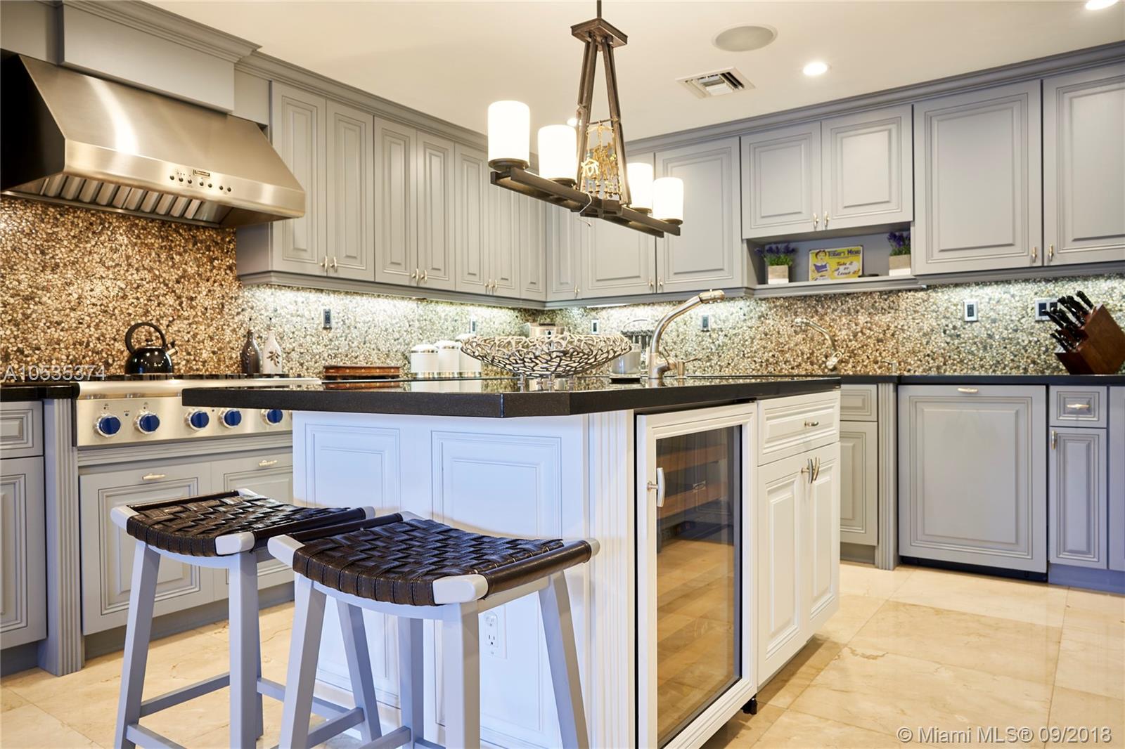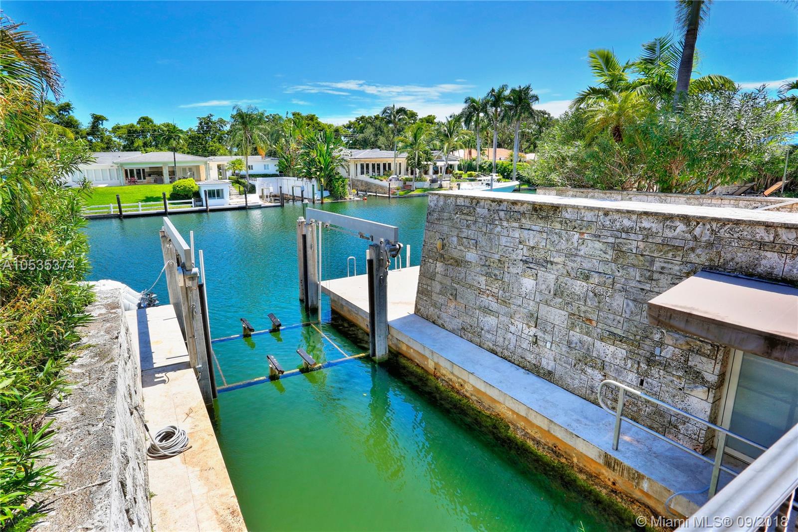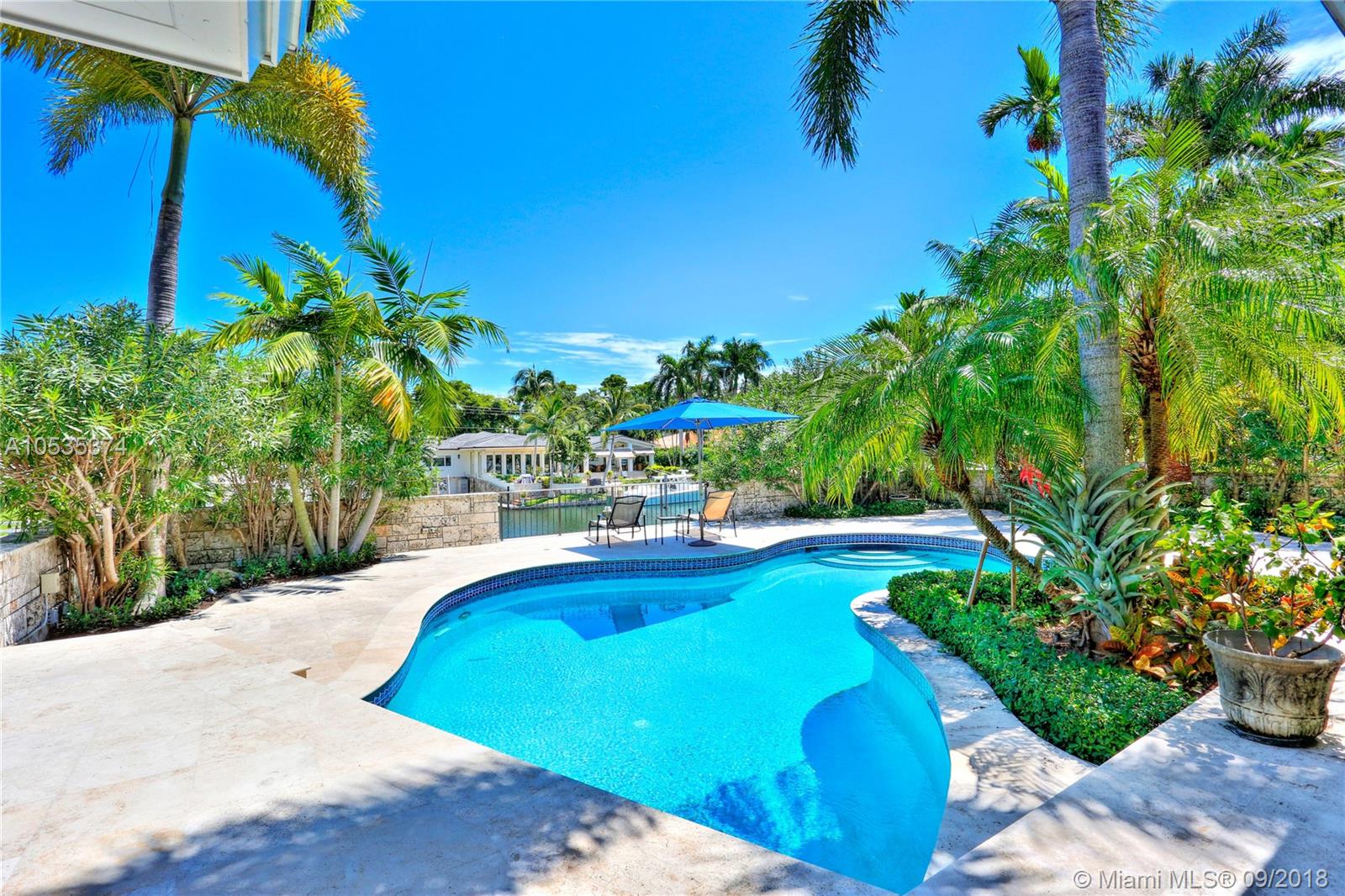 This beautifully renovated home offers a modern-flair & open spaces inside, with the most gorgeous pool, patio & oversized Keystone dock-the perfect place to entertain guests or relax for a quiet evening while taking in the waterway. The newly updated kitchen opens to the family area & features Thermador appliances, including a gas stove, lovely custom cabinetry & sleek marble counter tops. There are 3 bedrooms on the main floor all with en-suite bathrooms, a gorgeous master suite privately situated upstairs with his and her bathrooms, large walk-in closet, wood deck overlooking the waterway, & office, & a captain's room downstairs off the cutout boat slip. 2 car garage, fireplace, impact windows throughout, newer roof, laundry room & so much more make this a true dream home!