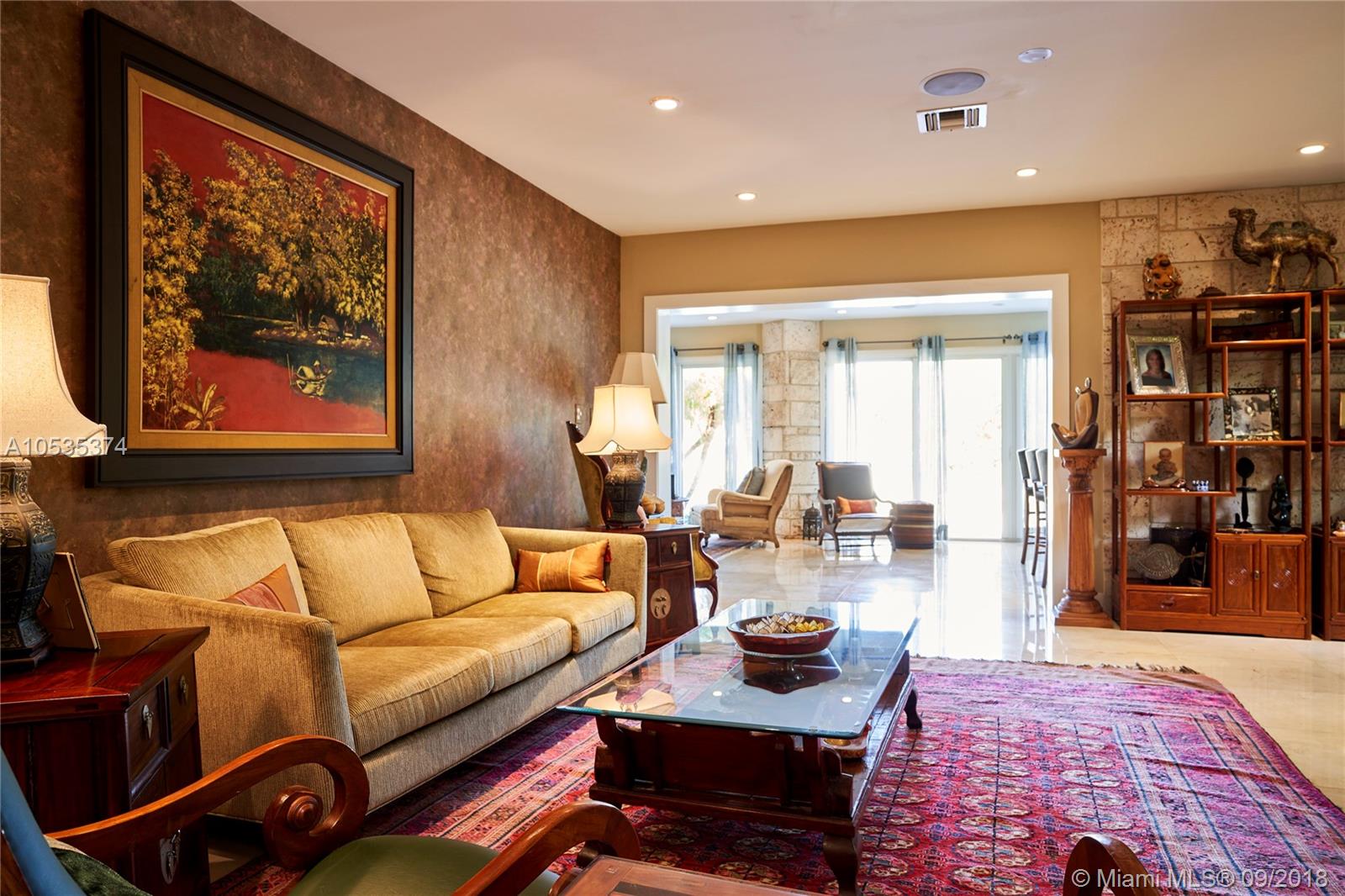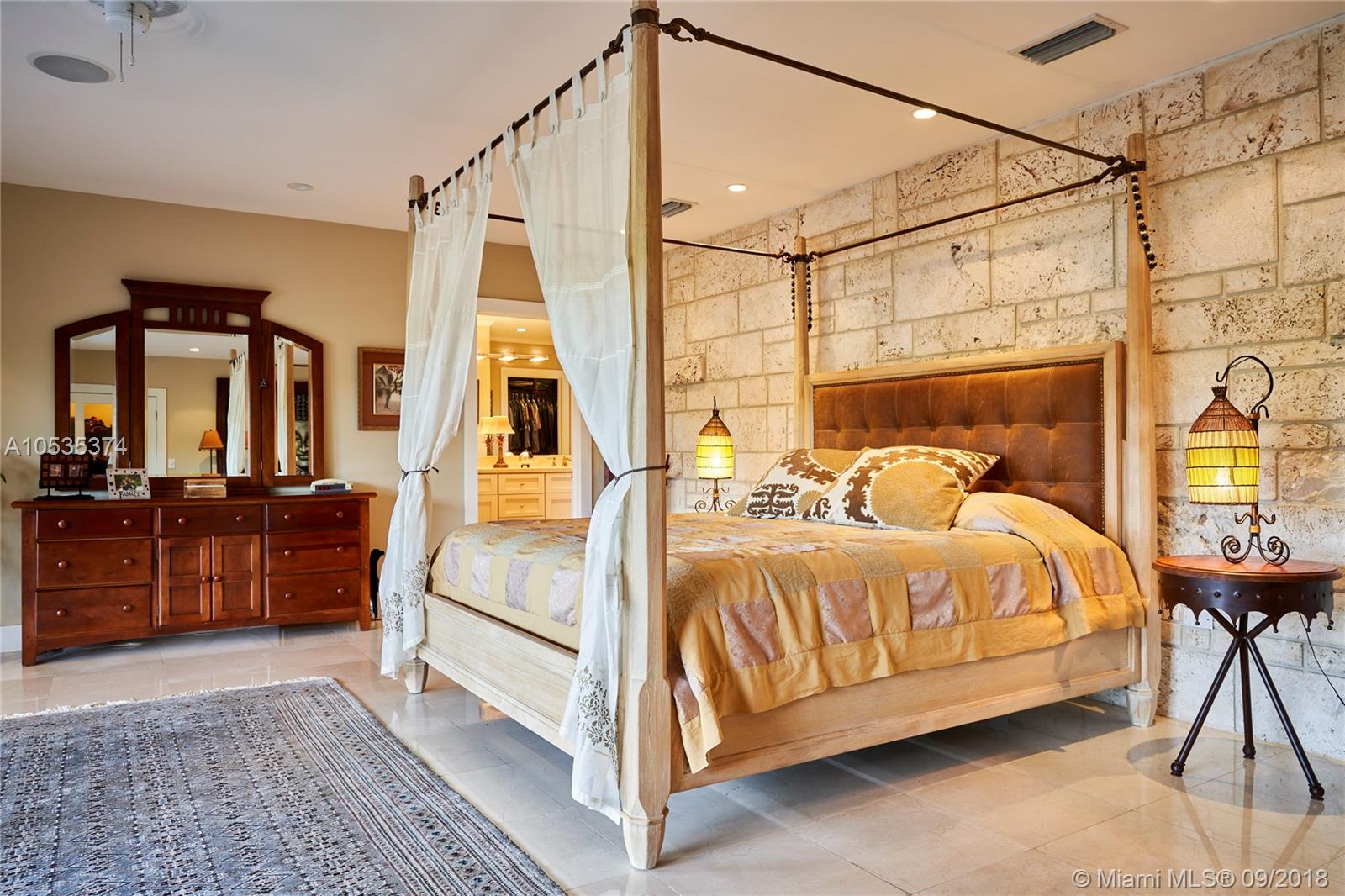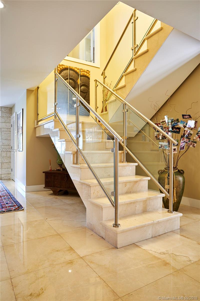 This beautifully renovated home offers a modern-flair & open spaces inside, with the most gorgeous pool, patio & oversized Keystone dock-the perfect place to entertain guests or relax for a quiet evening while taking in the waterway. The newly updated kitchen opens to the family area & features Thermador appliances, including a gas stove, lovely custom cabinetry & sleek marble counter tops. There are 3 bedrooms on the main floor all with en-suite bathrooms, a gorgeous master suite privately situated upstairs with his and her bathrooms, large walk-in closet, wood deck overlooking the waterway, & office, & a captain's room downstairs off the cutout boat slip. 2 car garage, fireplace, impact windows throughout, newer roof, laundry room & so much more make this a true dream home!