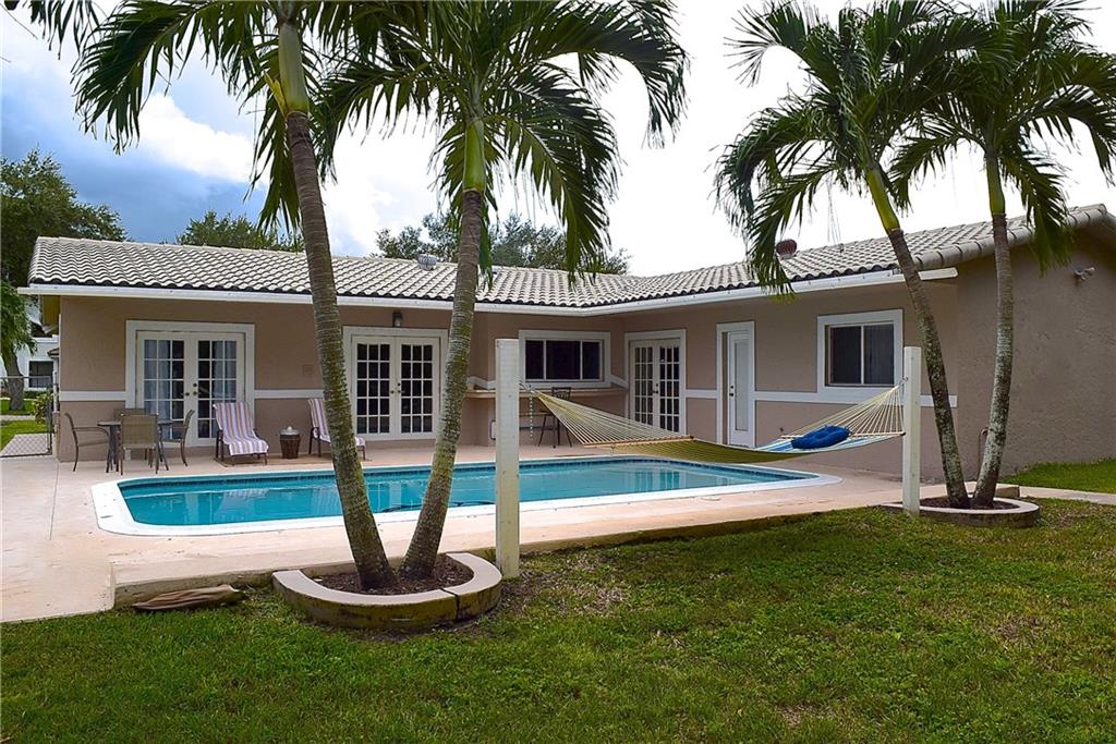 This absolutely beautiful 4 BR / 2 Bath home has been remodeled from floors to ceilings...everything new. This home has it all...Open floor plan w/split bedrooms. Home features remodeled kitchen w/granite countertops & real wood cabinets, Updated baths w/his & her sinks & river rock shower in master bath & spa tub in guest bath. Walk in closets, freshly painted interior & exterior, updated electrical, newly diamond brighted pool w/ new pool deck. Fenced yard, hammock, hurricane shutters. Avoid the crazy school car pool lines... great location to walk to all area schools (elementary, middle & high school).
