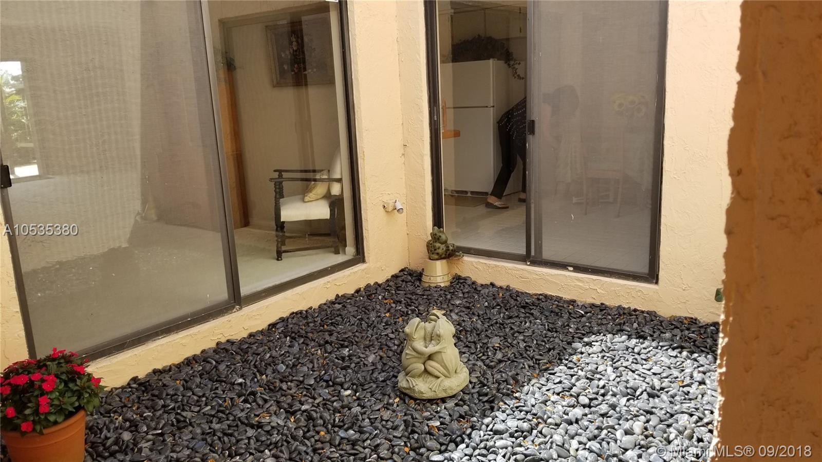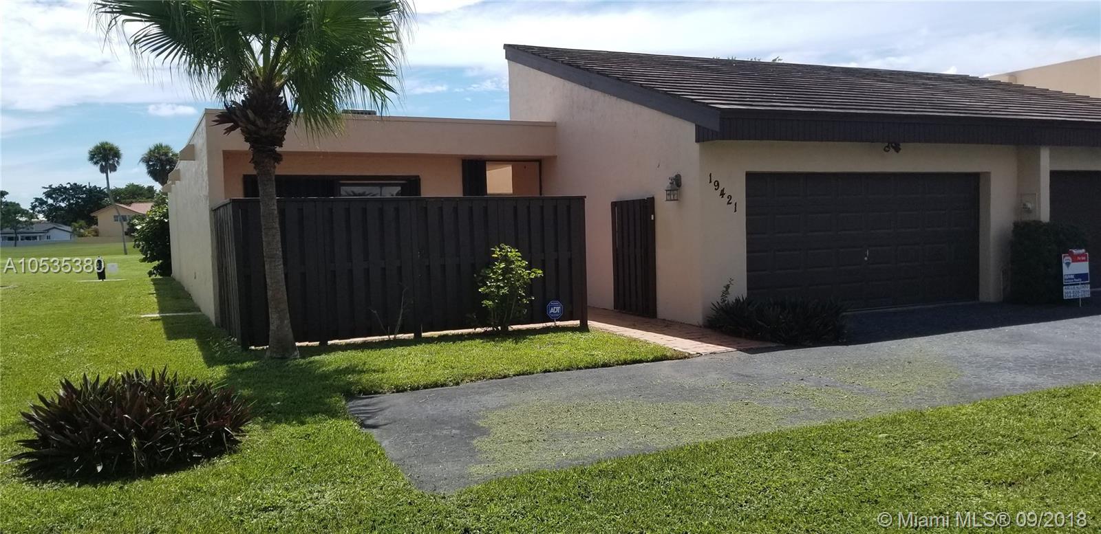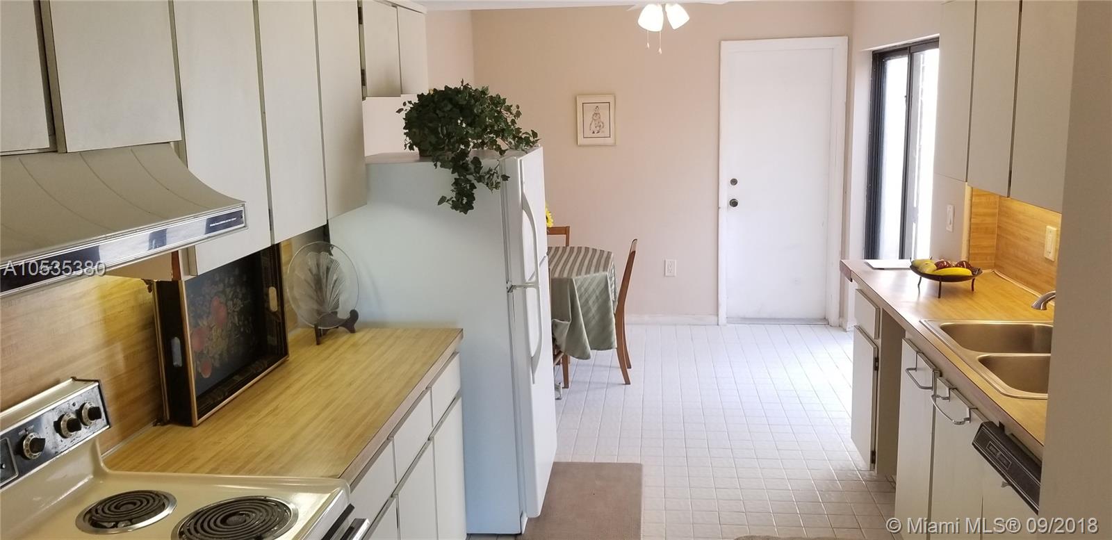 Big 1 story townhome on Golf Course, Country Club of Miami. Lush green spacious view. 2 large Bdrms/2 Bths, 2 car gar, corner unit. Master Bdrm & baths renovated, new vanities (dual sinks master Bth) shower, toilets, mirrors. 2 Central AC's, new electric panel. Replaced tile roofs & flat roof under warranty. New tankless water heater, gate & fencing, covered porch w/newly tiled floor. Dues only $200/YEAR! Kitchen & LR floor need updating.