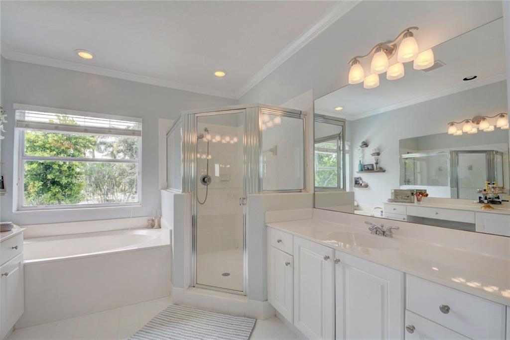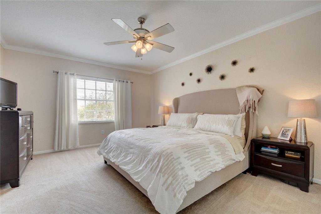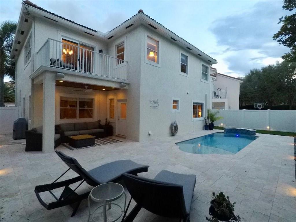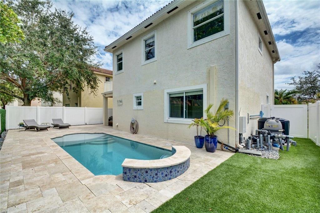 MUST SEE! BRAND NEW SALTWATER POOL with HEATER/CHILLER & a BEACH LANDING POOL Totally controlled from your phone including the waterfall and bubbler.ULTRA PRIVATE FENCING and COVERED PORCH. THIS HOME has a great floorplan w/ a VERY LARGE Master SUITE & Master Bath Upstairs. As well as, Spacious living & dining room areas overlooking the tropical GARDENS. THE balcony & kitchen upstairs with Upgrades galore/SS appliances, granite countertops, and 42"cabinets. Downstairs are 2 spacious bedrooms a full bathroom. There is a large utility/laundry room, also a computer-study nook. The Family room overlooks the spectacular pool/patio area and covered porch. Crown MOLDING throughout the home. Lots of closet space, oversized 2 car garage with under the stairs storage. BRAND NEW Water Heater+