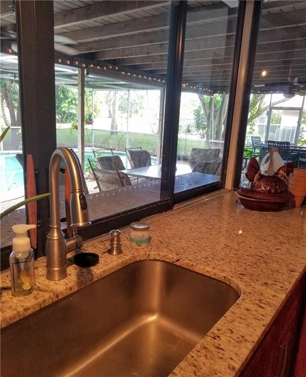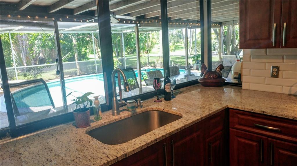 This true 5 bedroom, 2 full bath boasts a brand new remodeled kitchen to include granite countertops and wood cabinets! Screened in porch with serene water views to relax and or entertain. All impact windows (except kitchen window pass through) for added protection. Beautiful Italian porcelain tile in all bedrooms and other tile throughout the home. No carpet here! Split bedroom for additional privacy and access to the pool. Picturesque quiet street and wonderful community spirit isn't inviting enough - there is NO HOA in this neighborhood. This is a great value for the price as well as an investment property.