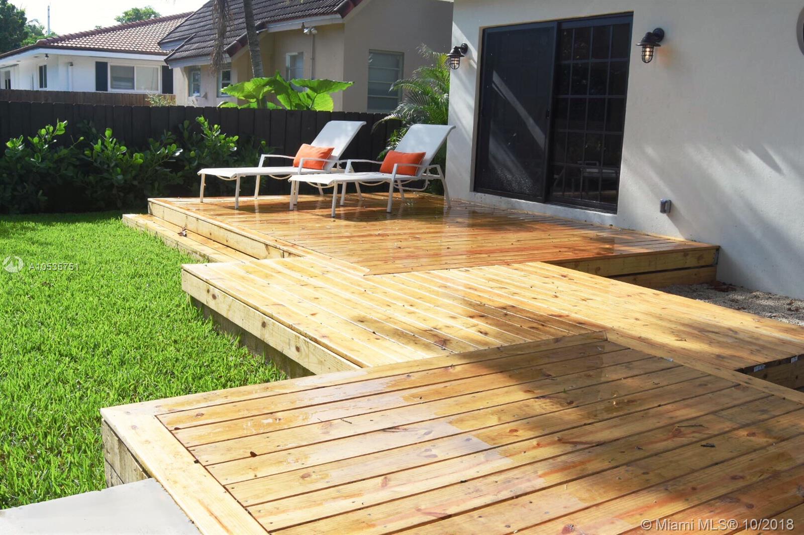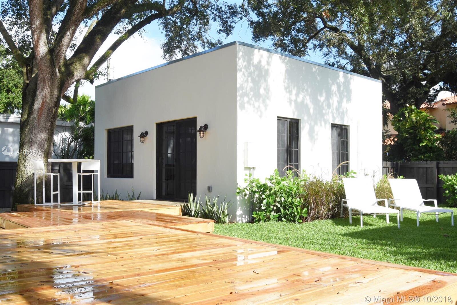 1930's Spanish Revival. Completely transformed following a 2-year, structural remodel by top developer/design team. No expense spared. No detail overlooked. Boasts open living plan, 14ft vaulted ceilings, & wide plank French Oak floors by Pianetta Legno. Grand living room w/ fireplace flows to large dining area and open chefs kitchen w/ island. Entertainers delight! Spacious bedrooms include a light-filled master suite w/ walk-in closet. An architecturally stunning deck seamlessly connects the 3br/2.5ba main house to a separate, oversized 1br/1ba cabana. Professionally landscaped & irrigated yard has room for a pool. All new hurricane windows/doors, electric, plumbing, irrigation, septic, AC & roof make this brand new, never lived-in home a must see. Unrivaled design. Unrivaled location.