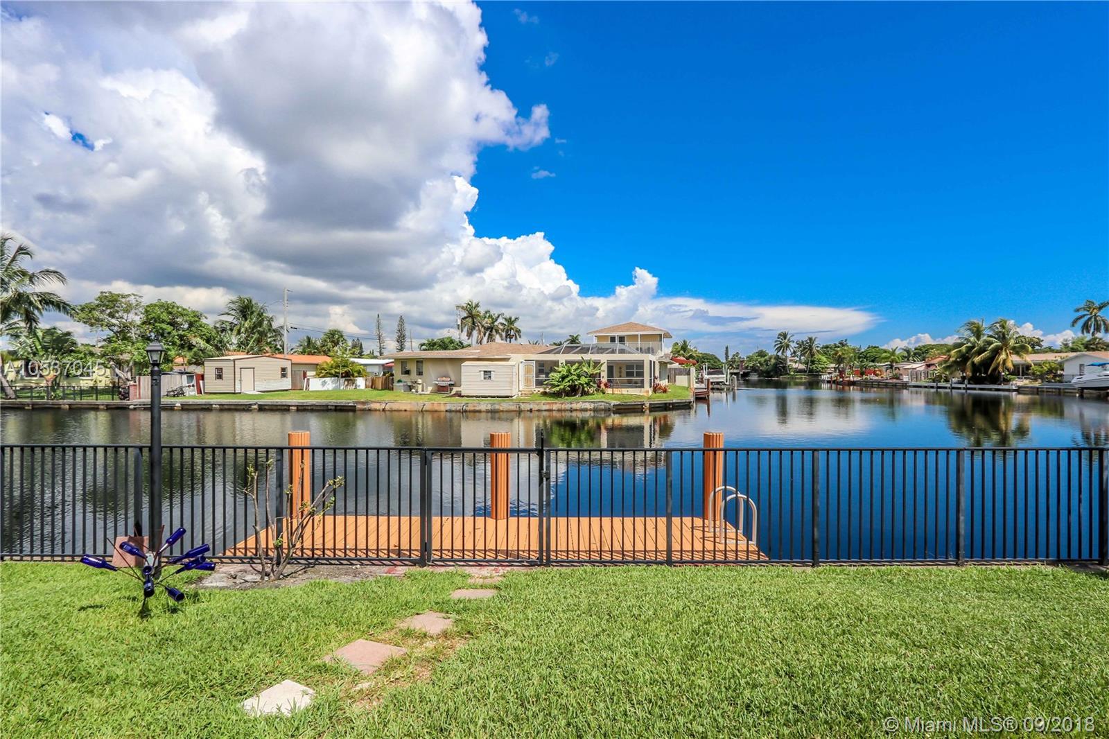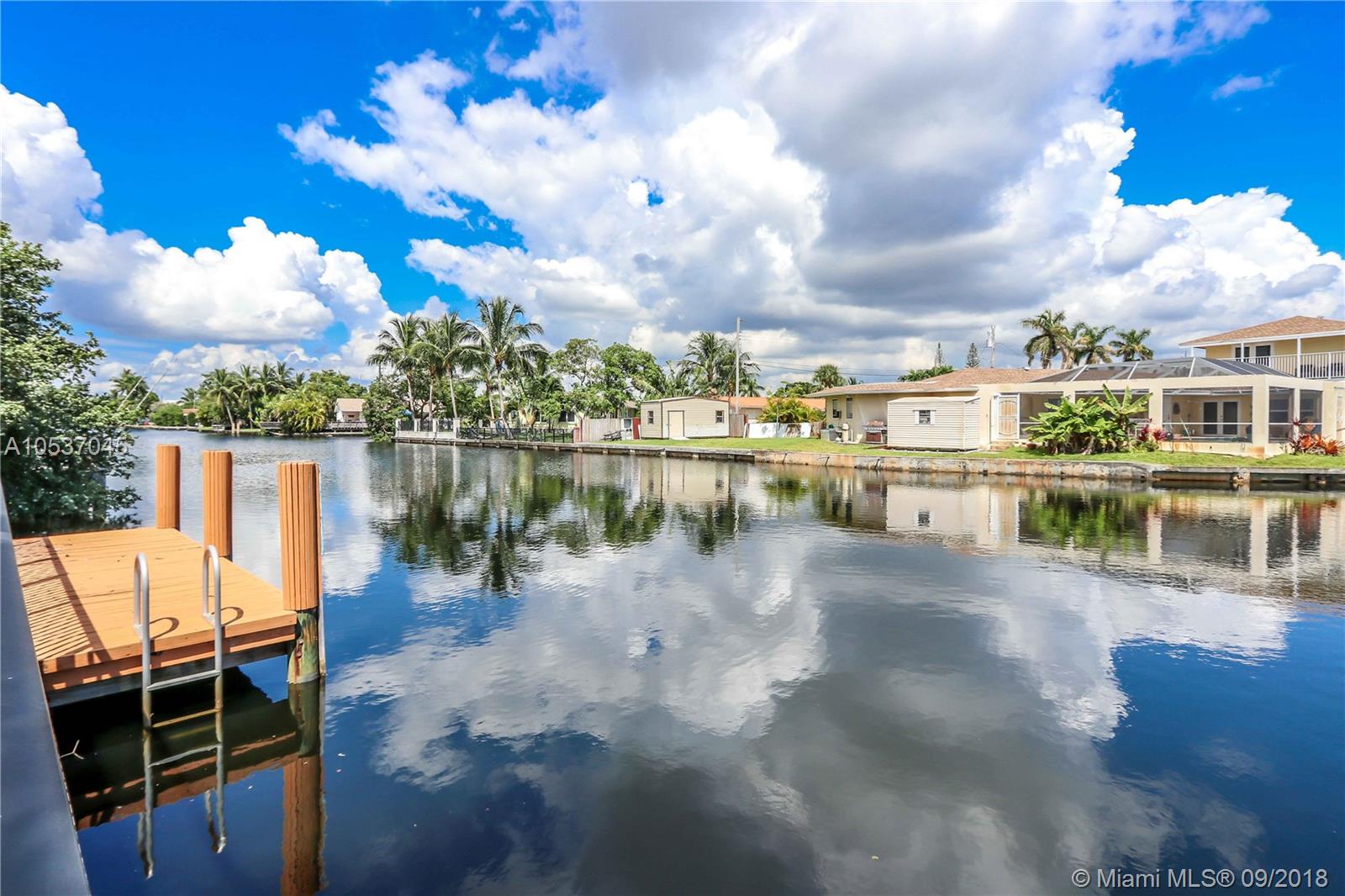 Great Location with Fantastic Water View~Ocean Access with 17' Dock~3 Bedroom/2 Baths~Bright Home with Lots of Windows with Lots of Natural Light~Double Door Entrance with a Massive Foyer~Satillo Tile~Open Kitchen with Bar Area connected to an Island w/a Cooktop~Black Granite Countertops~Vaulted Ceiling with Exposed Beams~Crown Molding~Living Room, Formal Dining Room, Family Room~Sunroom~Master Suite w/ French Doors Looking out to the Water and leads you to one of the Patio areas~Double Closet and Crown Molding~Guest Bedrooms Share a Jack & Jill Bath~2 Covered Patios, Great for Entertaining~1 Carport~Storage Shed~Seawall Reinforced approx 10 yrs ago~Fenced Backyard~Tented 8/23/18 w/Warranty~4 Fixed Bridges~Appliances 2yrs~Roof 2006~Close to Beachs, Gulfstream Park, Downtown Hollywood