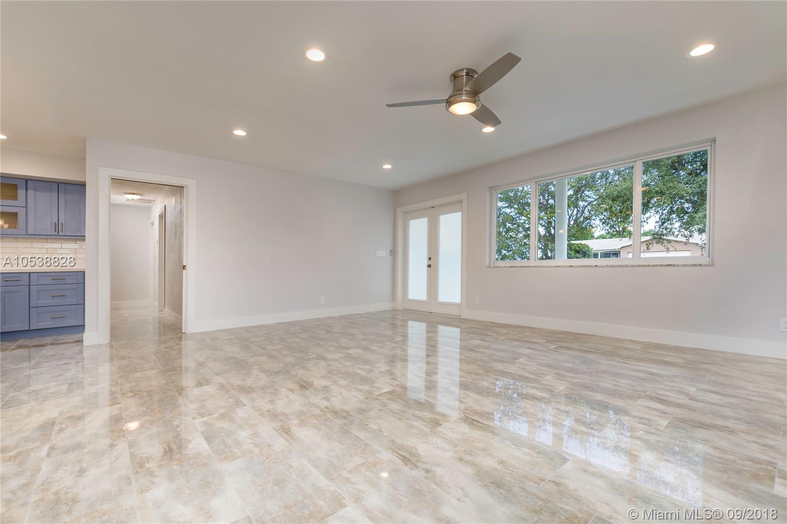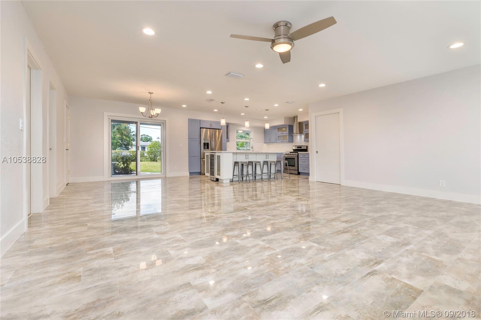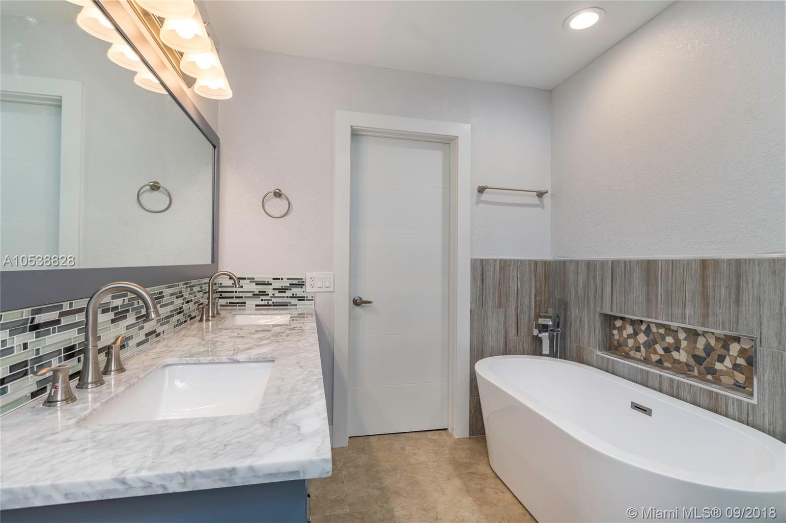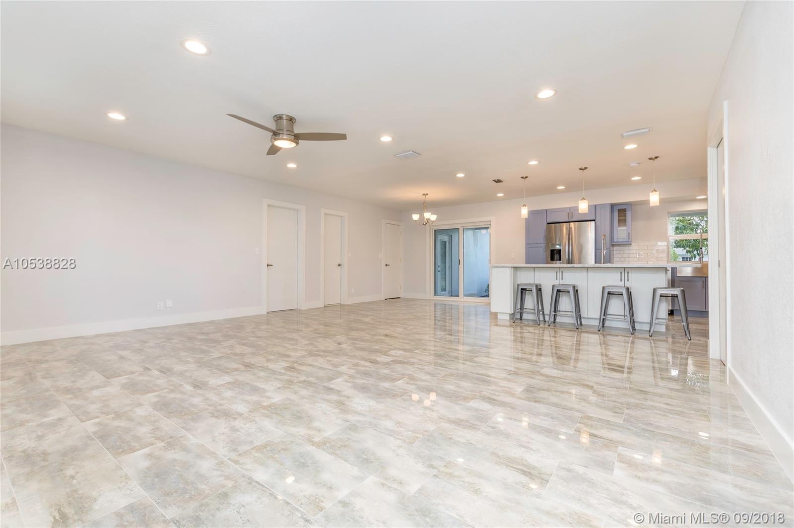 Gorgeous 4/2 Hollywood Hills home with NEWLY REMODELED EVERYTHING-bedrooms, bathrooms, living/dining, laundry, patio & kitchen. No details spared! Plus NEW HURRICANE PROOF WINDOWS & DOORS. Amazing open floor plan, great for family life & entertaining. 2 master bedrooms; 1 master on opposite side from other 3 bedrooms. Unique blue modern kitchen, white quartz counters, stainless steel appliances, gas stove & a large vivid stone-top center island with a separate sink, built-in microwave & wine cooler/bar area, plus front load washer & dryer in spacious laundry. Large fenced-in backyard with a beautiful mango & gardenia tree. Circular front driveway & alley access to 2nd rear driveway leading to garage. Excellent location; next to turnpike & a short drive to I-95.