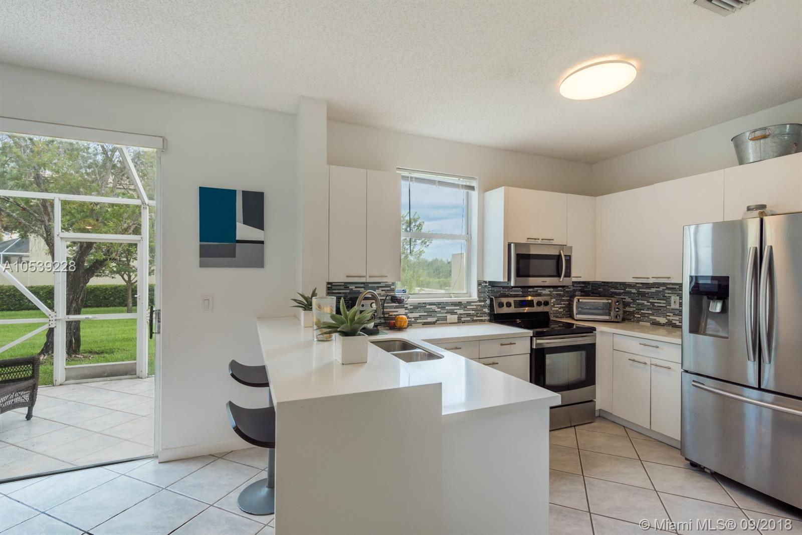 Impecable 3 bedroom 2.5 baths corner unit townhouse. Featuring a very nice upgraded kitchen with quartz countertops, stainless steel appliances and a new master bathroom. Also has tile floors downstairs and laminated wood floors upstairs. new dryer machine. Towngate is centrally located off of I-75 and Pines Boulevard, with the convenience of ample nearby shopping, business centers, houses of worship, restaurants and medical facilities. Once inside the community you will appreciate the beautiful terrain, with wide sidewalks for casual strolls, lovely lakes and a recreational area with a community pool, tennis and children's playground.