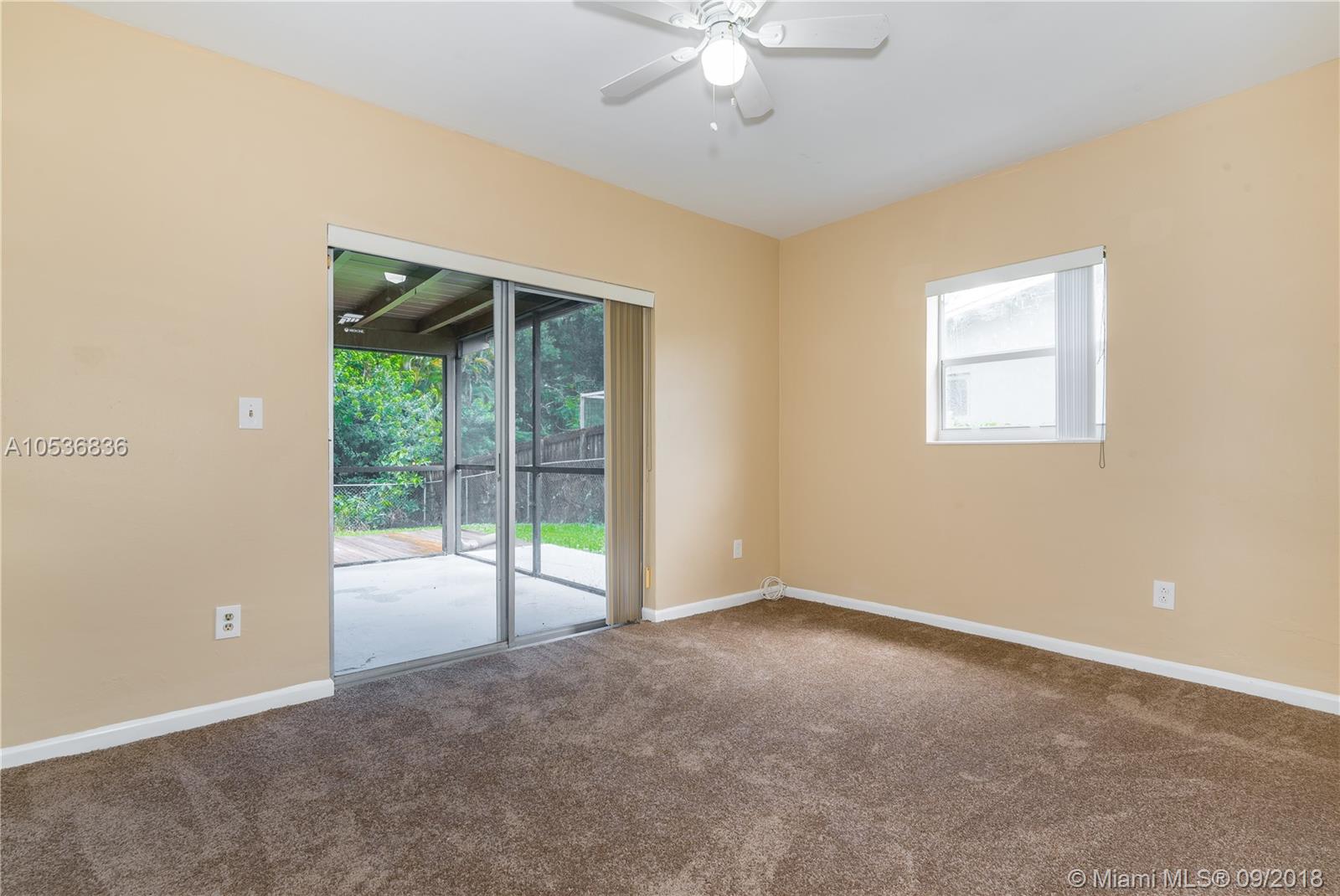 Check out this move-in ready, split floor plan, 3 bedroom 2 bathroom home located in quiet family oriented Davie neighborhood. Great home for entertaining with a large family room and Florida room. Home is situated on 6,660 sqft lot neighboring Silver Lake Park to the rear. Completely tiled throughout the living areas and kitchen with new carpet in each of the bedrooms. Home also features a covered screened in porch, a nice wood deck in backyard, and an attached 1 car garage. Conveniently located near major highways. Per owner - home is larger than tax roll. Must see. Schedule your showing today!