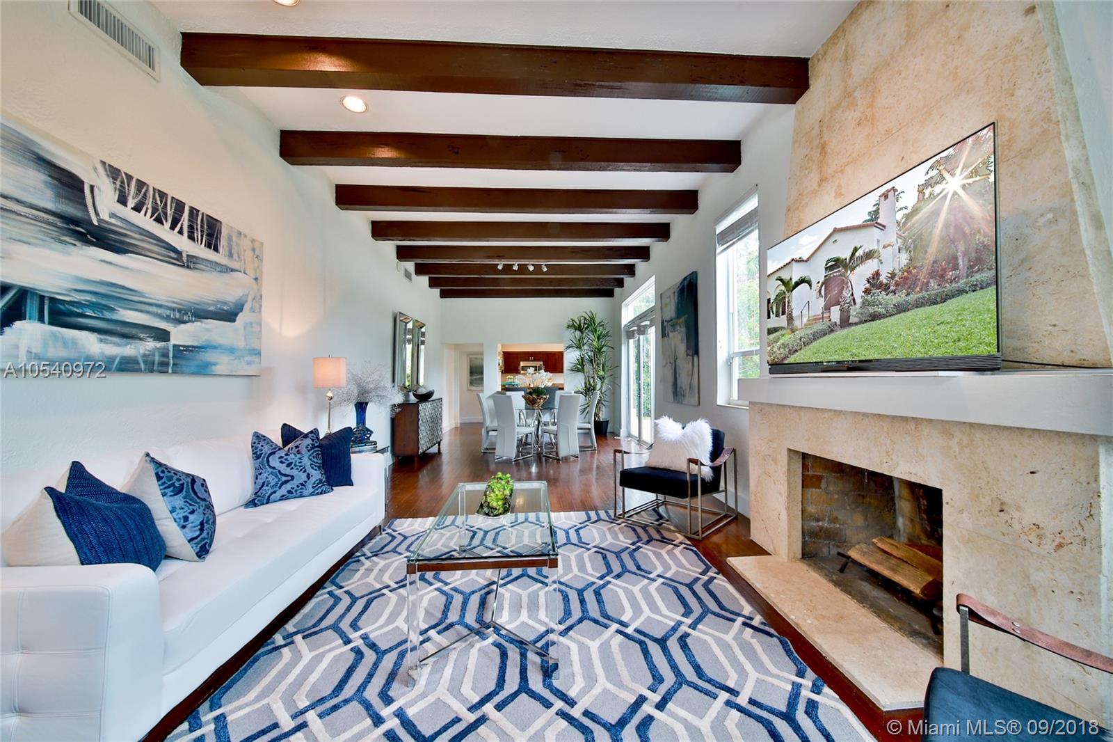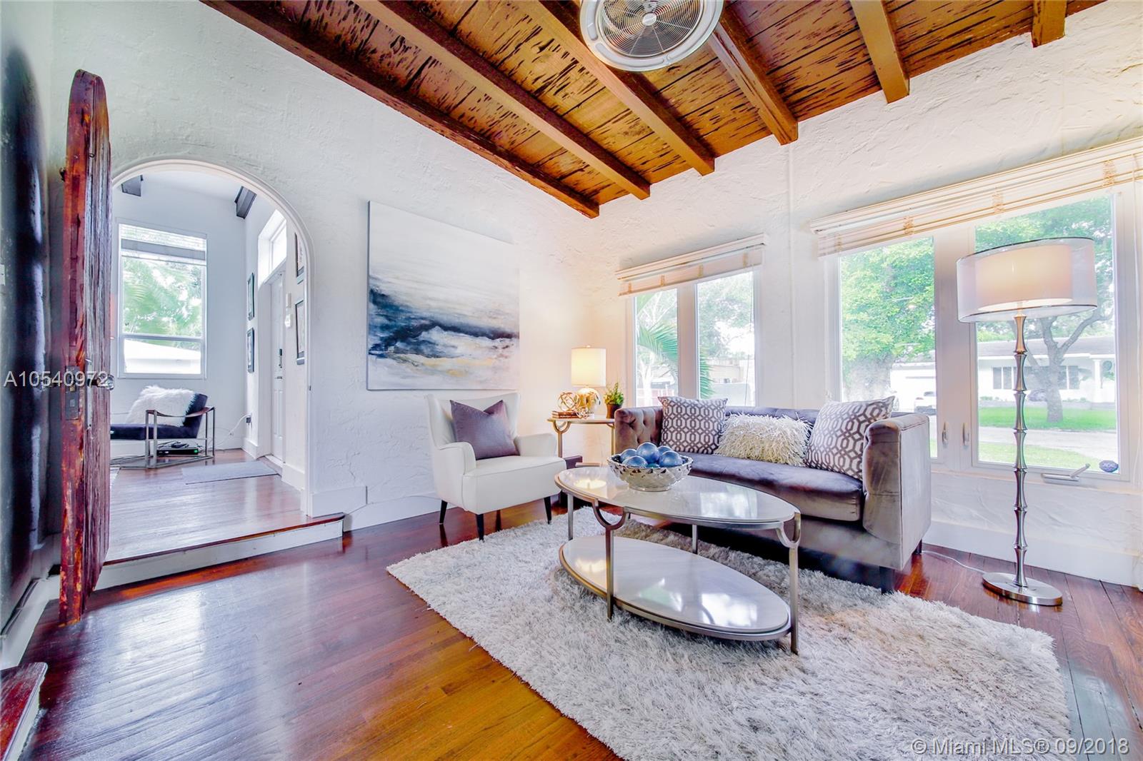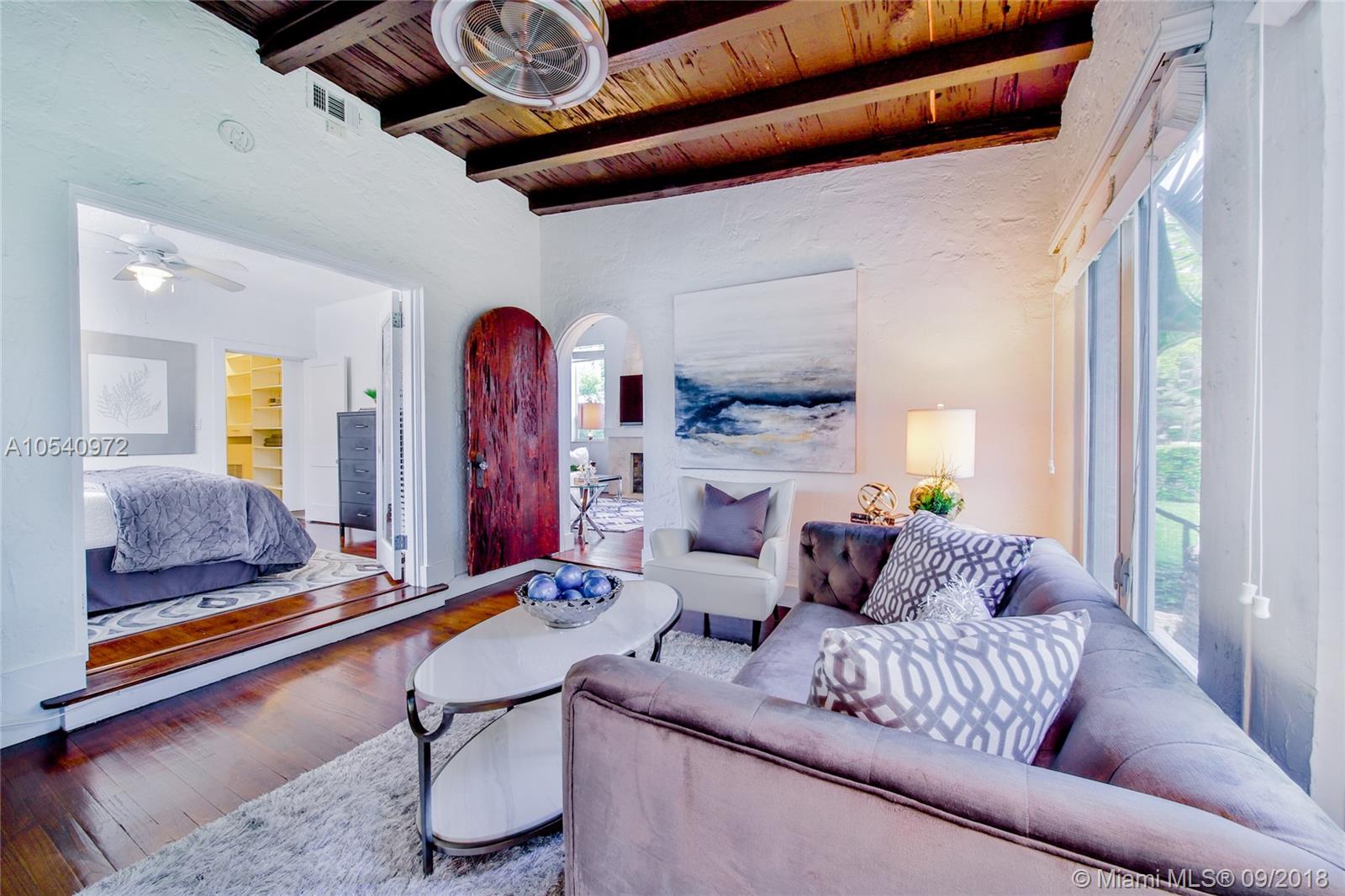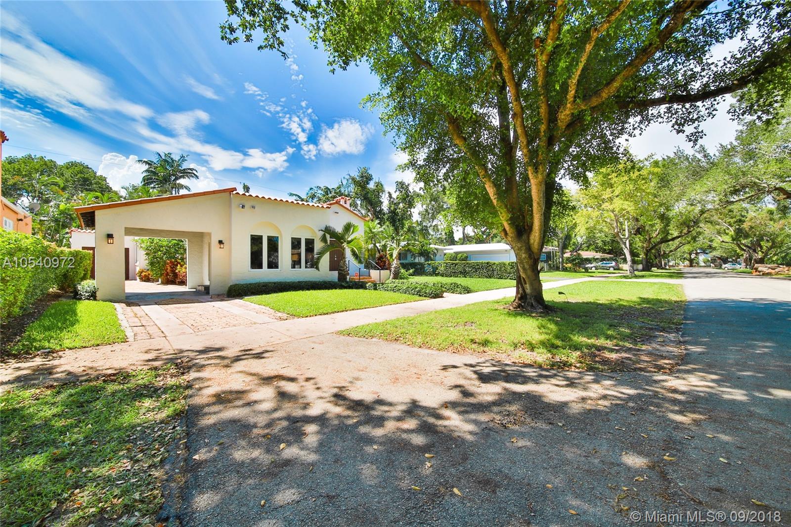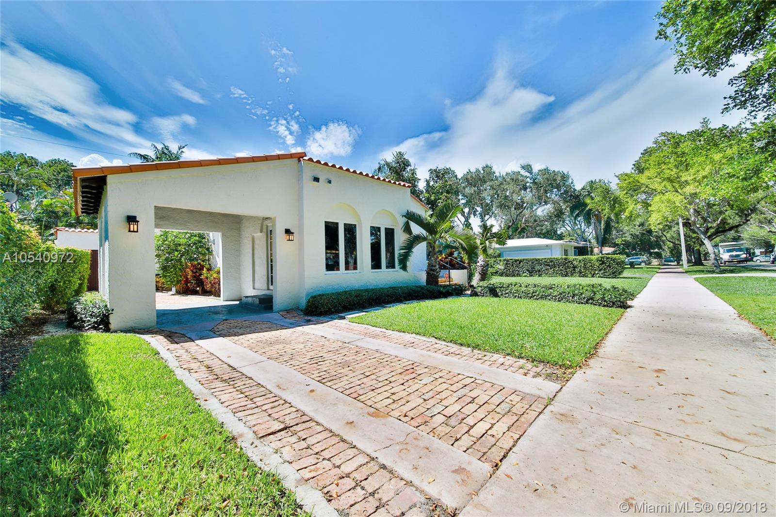 METICULOUSLY MAINTAINED 1925 OLD SPANISH GEM SITTING ON AMPLE 7,500 SQ FT LOT WITH TWO OUTDOOR ENTERTAINMENT AREAS AND A ONE CAR GARAGE. VAULTED CEILINGS & PECKY CYPRESS BEAMS ADD TO ITS ORIGINAL CHARM. THE OPEN CONCEPT LIVING AREA IS INFUSED WITH NATURAL LIGHT AND IS STILL WEARING ITS ORIGINAL WOOD FLOORS. EXPANSIVE MASTER SUITE WITH A PRIVATE EN SUITE/SITTING AREA, WALKING CLOSET AND MASTER BATH WITH HIS-AND-HERS SINKS. KITCHEN IS OUTFITTED WITH STAINLESS STEEL APPLIANCES, CHOCOLATE BROWN CABINETRY, LIMESTONE FLOORS AND GRANITE COUNTER TOPS. IMPACT RESISTANT WINDOWS & DOORS AND A BRAND NEW ROOF. WALKING DISTANCE TO SUNSET ELEMENTARY. CONVENIENTLY LOCATED JUST BLOCKS FROM MANY DINING AND ENTERTAINMENT OPTIONS. GREAT OPPORTUNITY TO LIVE IN HIGHLY SOUGHT-AFTER SOUTH CORAL GABLES!
