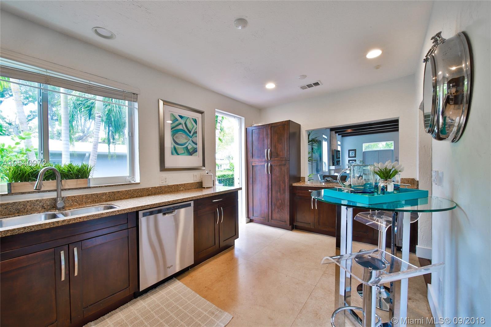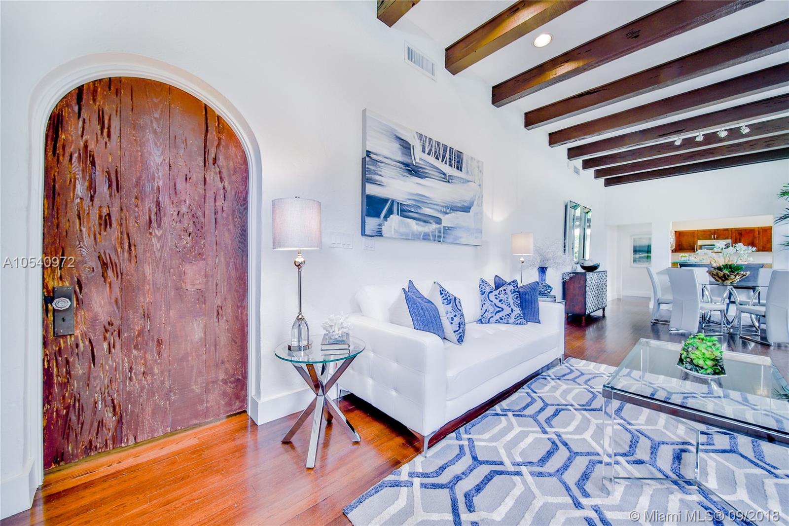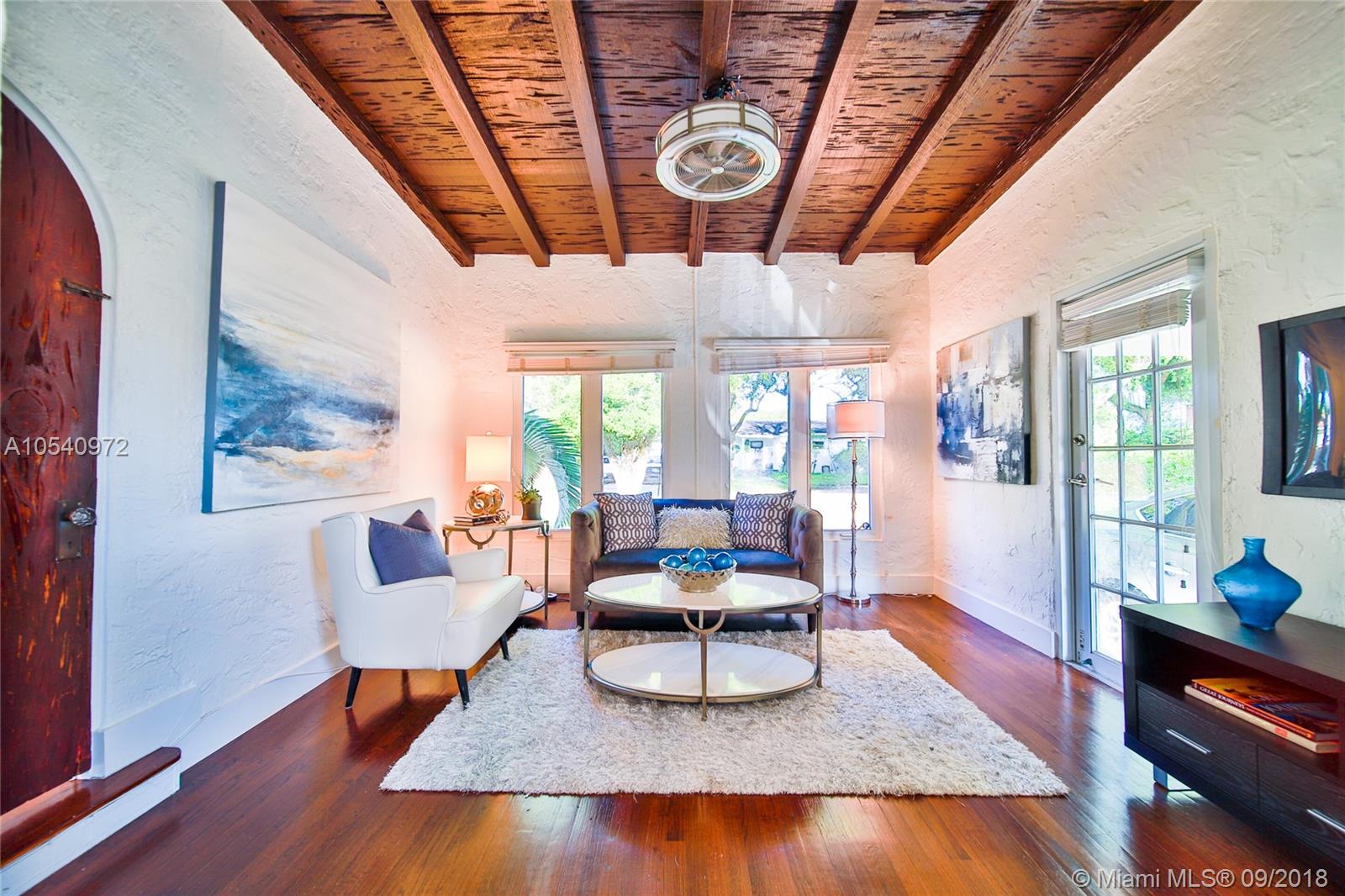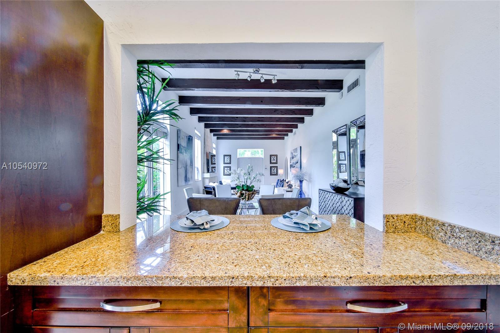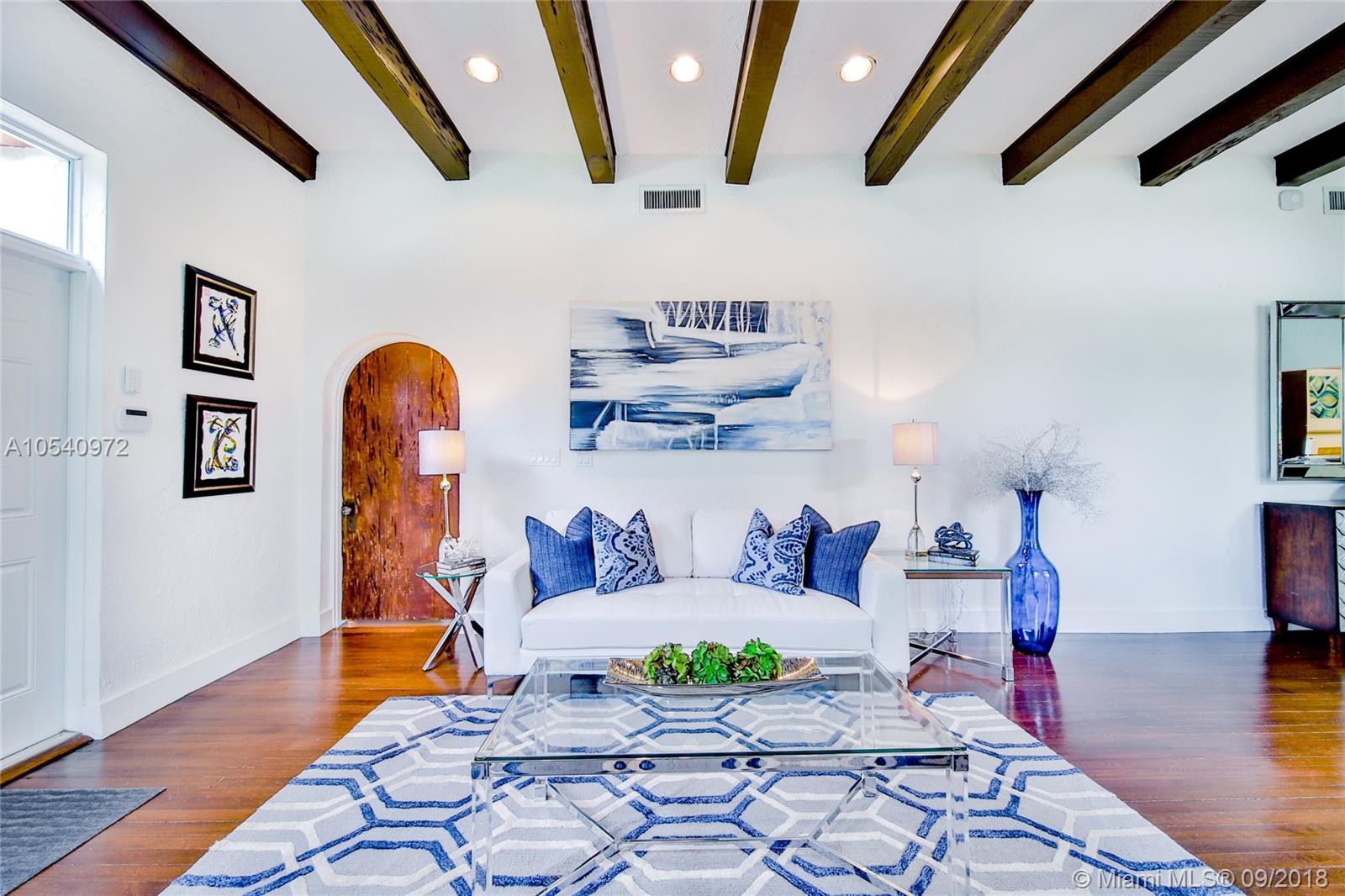 METICULOUSLY MAINTAINED 1925 OLD SPANISH GEM SITTING ON AMPLE 7,500 SQ FT LOT WITH TWO OUTDOOR ENTERTAINMENT AREAS AND A ONE CAR GARAGE. VAULTED CEILINGS & PECKY CYPRESS BEAMS ADD TO ITS ORIGINAL CHARM. THE OPEN CONCEPT LIVING AREA IS INFUSED WITH NATURAL LIGHT AND IS STILL WEARING ITS ORIGINAL WOOD FLOORS. EXPANSIVE MASTER SUITE WITH A PRIVATE EN SUITE/SITTING AREA, WALKING CLOSET AND MASTER BATH WITH HIS-AND-HERS SINKS. KITCHEN IS OUTFITTED WITH STAINLESS STEEL APPLIANCES, CHOCOLATE BROWN CABINETRY, LIMESTONE FLOORS AND GRANITE COUNTER TOPS. IMPACT RESISTANT WINDOWS & DOORS AND A BRAND NEW ROOF. WALKING DISTANCE TO SUNSET ELEMENTARY. CONVENIENTLY LOCATED JUST BLOCKS FROM MANY DINING AND ENTERTAINMENT OPTIONS. GREAT OPPORTUNITY TO LIVE IN HIGHLY SOUGHT-AFTER SOUTH CORAL GABLES!