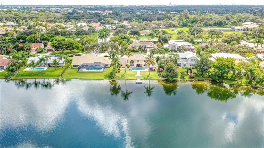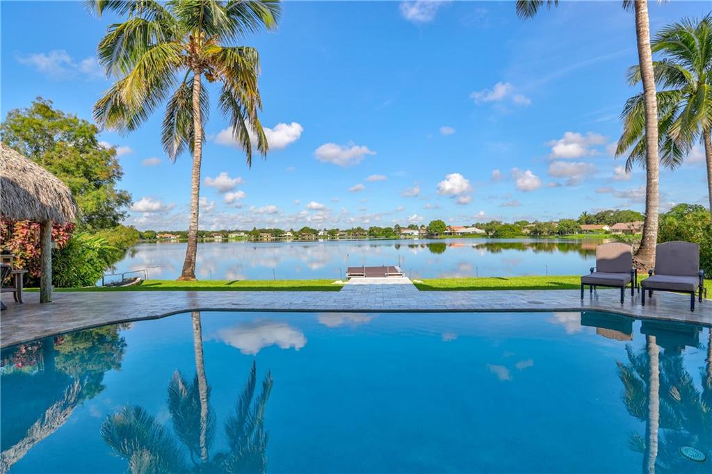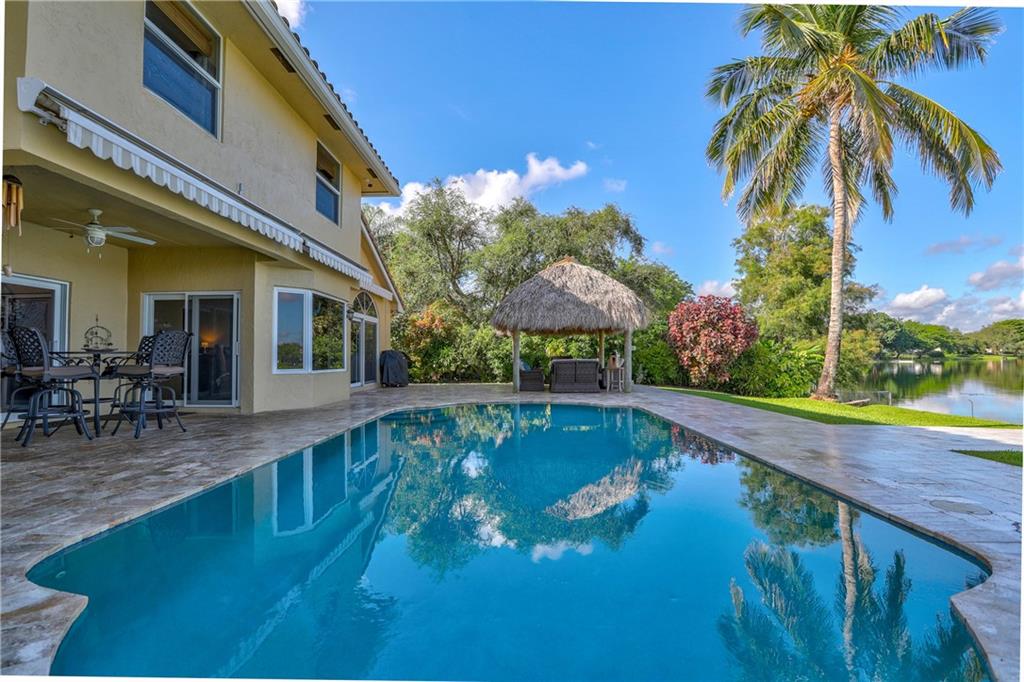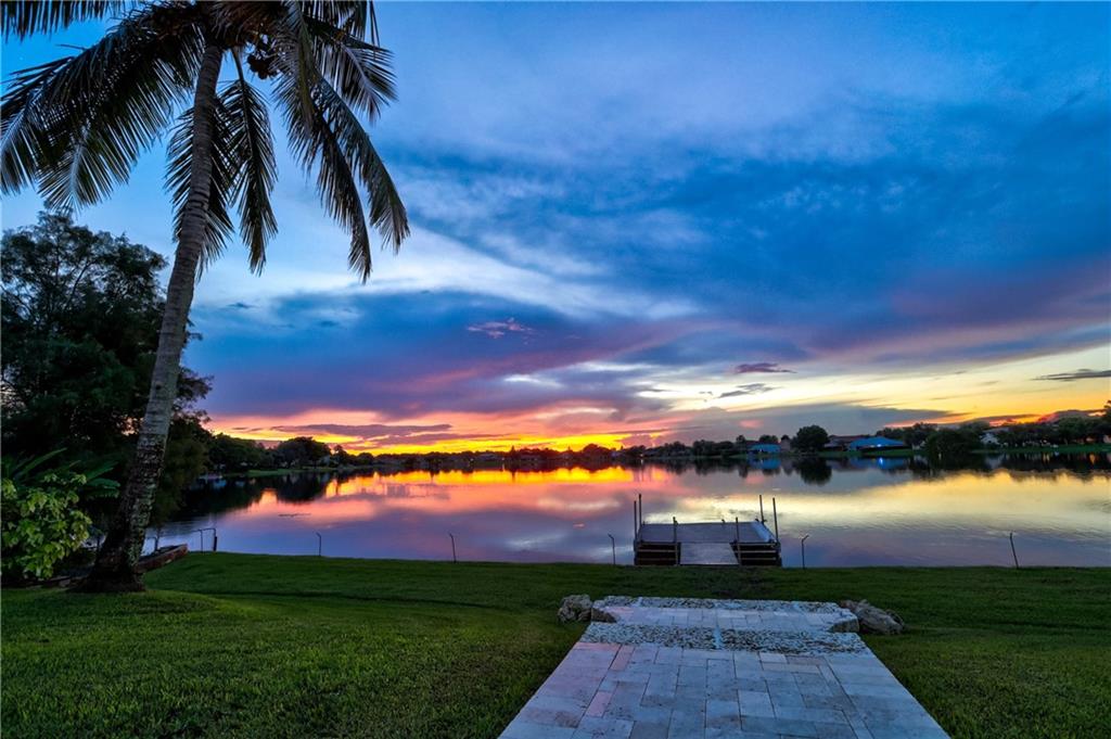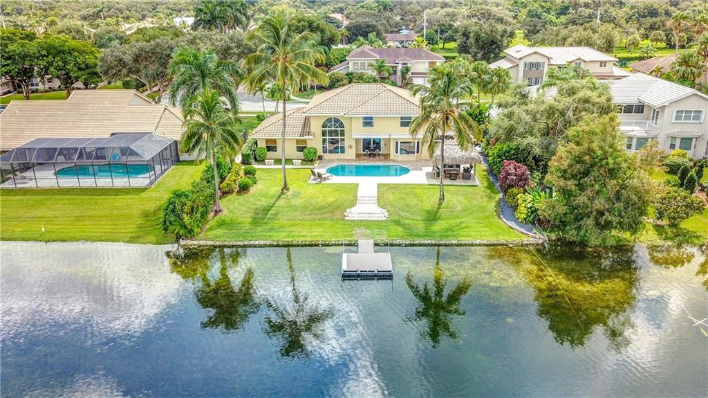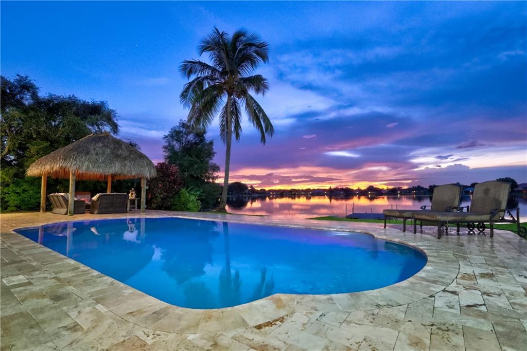 Orange, Pink, and Purple Sunsets overlooking the best water views in all of Davie. This 5/3 salt water pool home has been updated at every turn. Triple split floor plan including 2 master suites on the first floor. Spacious family room featuring volume ceilings and 20” foot custom stone/rock wall. Eat-in kitchen has been remodeled with granite counters, custom cabinetry, and new appliances. Backyard is an entertainer’s dream. Impact windows and doors, Newer Roof, security system and the list goes on.