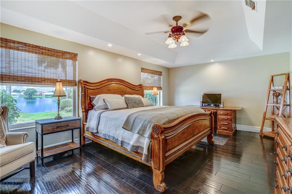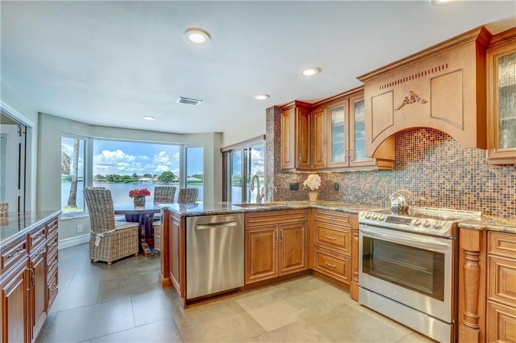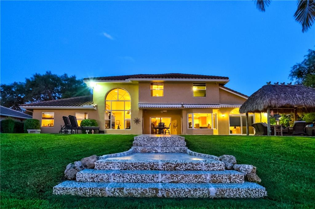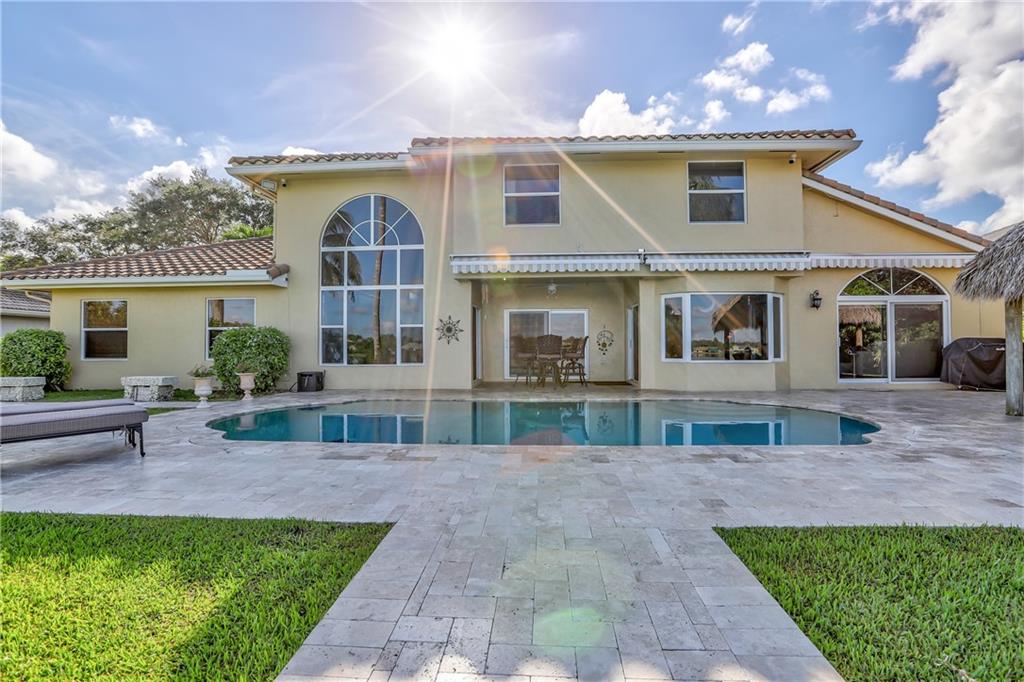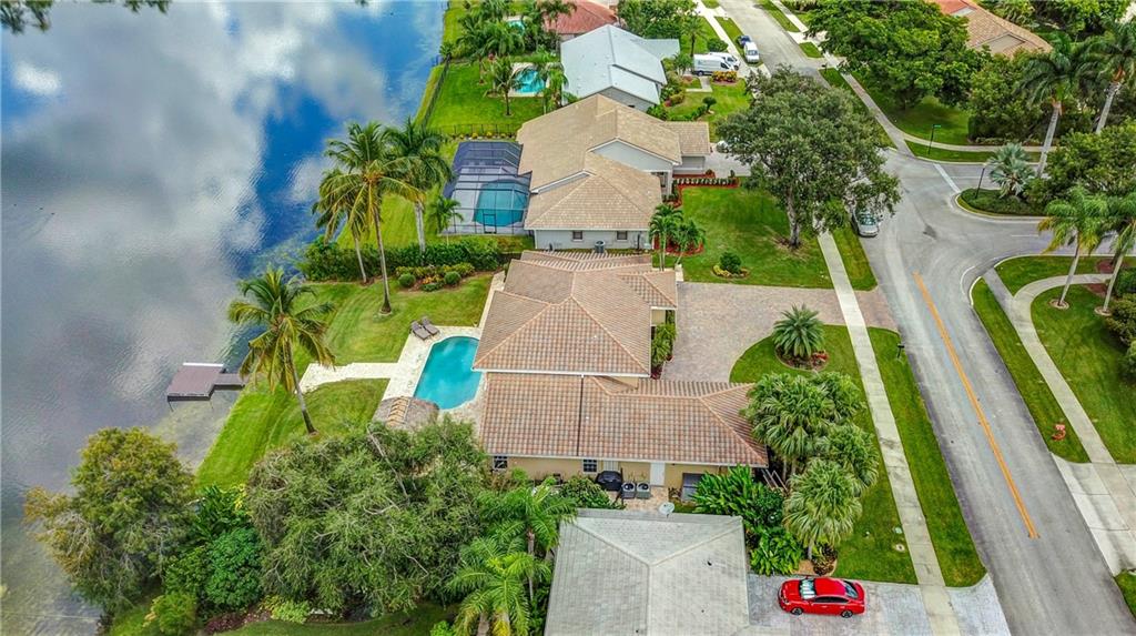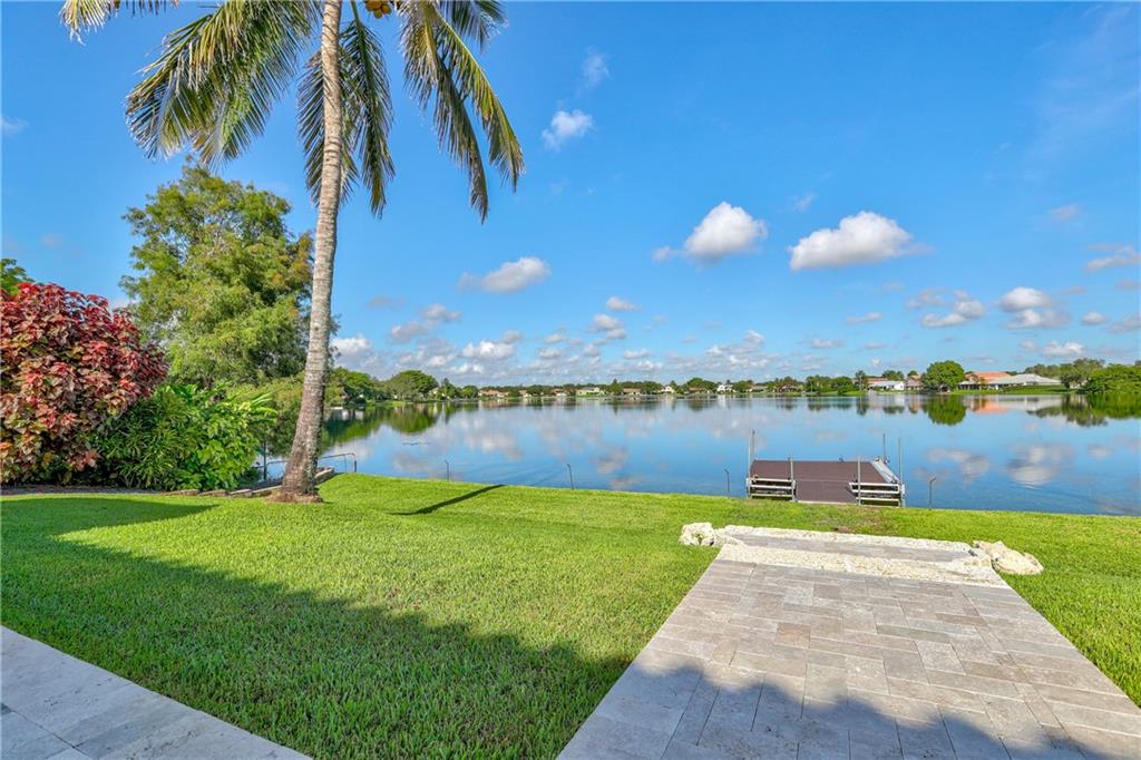 Orange, Pink, and Purple Sunsets overlooking the best water views in all of Davie. This 5/3 salt water pool home has been updated at every turn. Triple split floor plan including 2 master suites on the first floor. Spacious family room featuring volume ceilings and 20” foot custom stone/rock wall. Eat-in kitchen has been remodeled with granite counters, custom cabinetry, and new appliances. Backyard is an entertainer’s dream. Impact windows and doors, Newer Roof, security system and the list goes on.