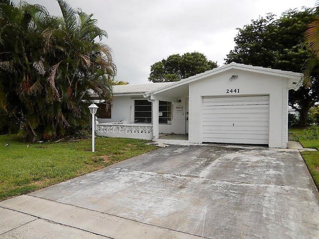 Centrally located 2/2 single family home perfect for investor or owner seeking a "fixer upper". Attached garage. Extended living. Walk-in closet master bed. Diamond in the rough but tons of potential. New roof needed. Leisureville states HOPA. Community amenities. Courtesy bus transportation. Lease/ Pets ok. Convenient to restaurants, shops, bus routes and thoroughfares. Close to beach.