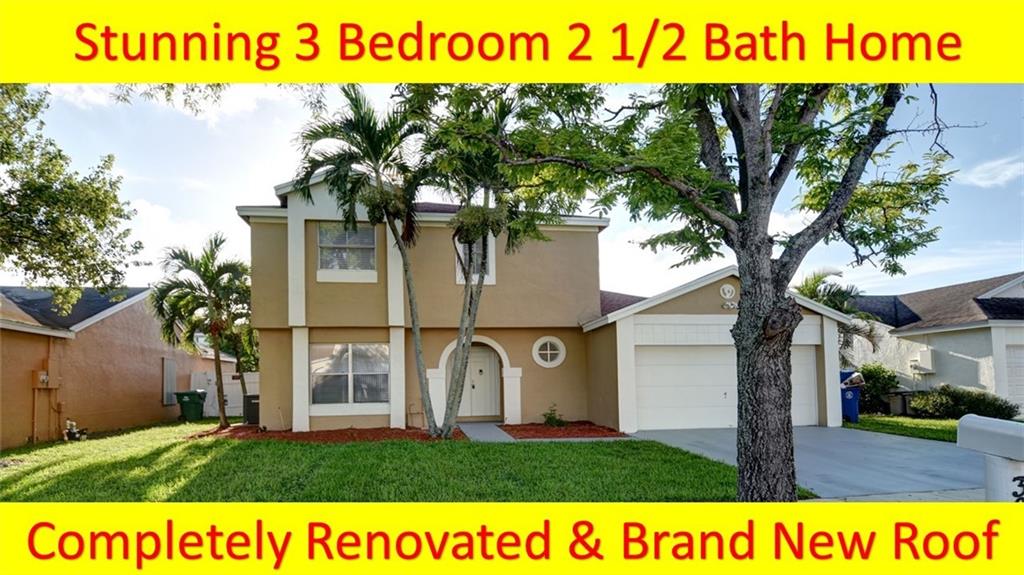 Gorgeous 2 Story Miramar Home! Fully Renovated 3 Bedroom 2 1/2 Bath With 2 Car Garage, & Brand New Roof With 10 Year Warranty. Brand New Paint Inside & Outside All Surfaces. Brand New Kitchen, Self Closing Cabinets, Granite Countertops & Back Splash. Brand New Stainless Steel Appliances, Brand New 24 Inch Tile Flooring Throughout The 1st Floor, Brand New Carpet Upstairs. All 3 Bathrooms Are Fully Renovated With Porcelain Tile. Brand New Window Treatments On All Windows, Brand New Garage Door Opener. Recessed Lighting. Huge Backyard With Jacuzzi & Plenty of Space to Add A Pool. Very Low HOA. A Must See!