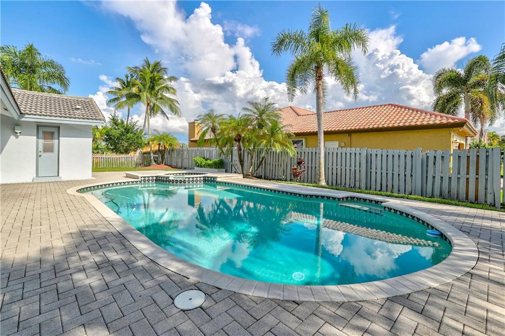 GORGEOUS 4/2.5 HOME IN JACARANDA LAKES. RENOVATED KITCHEN WITH GRANITE COUNTER TOPS AND BRAND NEW APPLIANCES! OPEN FLOOR PLAN WITH VAULTED CEILINGS & TONS OF NATURAL LIGHT. MARBLE FLOORING IN MAIN LIVING AREA. BEAUTIFULLY REMODELED MASTER & SECONDARY BATHROOMS. OVER SIZED, 12,700+ SQ FT CORNER LOT. LARGE PATIO W/ POOL/SPA GREAT FOR ENTERTAINING. AC UNIT & WATER HEATER 2017. NEWER POOL PUMP AND SPRINKLER PUMP. HURRICANE SHUTTERS & IMPACT GARAGE DOOR. ROOF 2007.