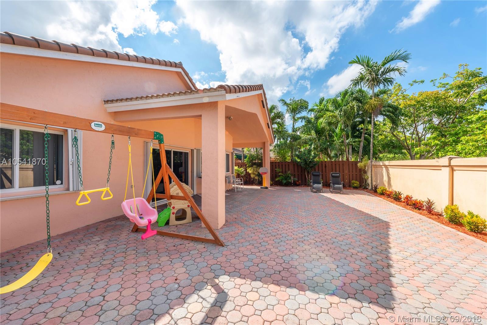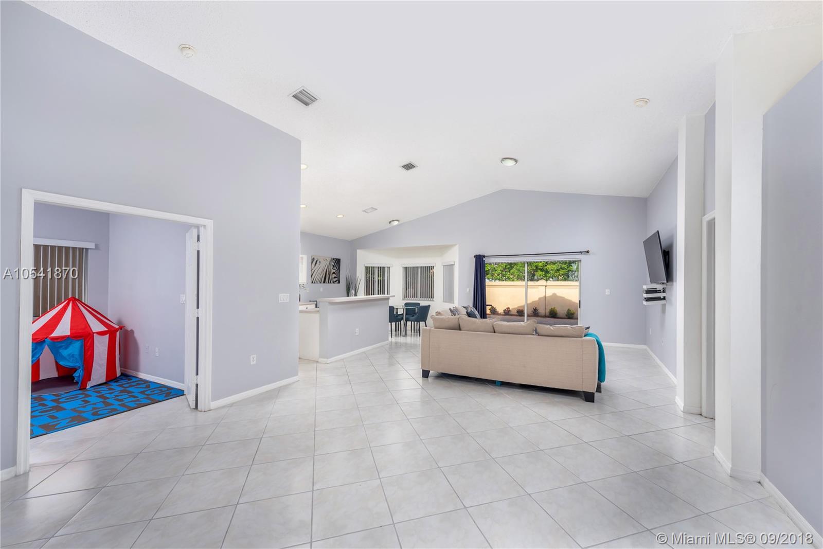 Ideally located in Doral Gardens gated community, This charming one story 4 bedrooms 3 baths residence features beautiful rarely seen vaulted ceilings, split floor plan, spacious master bedroom including two walk in closets, dual master bath sinks for his and hers, large bathtub and shower. Separate laundry room and tons of storage throughout with a two car garage. A paved well manicured fenced backyard with a covered terrace. Plenty of room for entertaining your friends and family, and let’s not forget enough room for a playground. Amenities include basic cable, alarm and security.