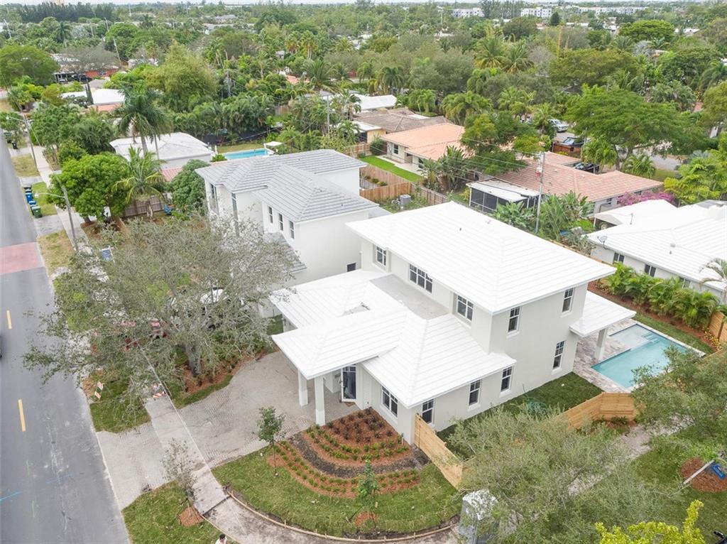 JUST COMPLETED! This contemporary Poinsettia Heights NEW CONSTRUCTION has well-proportioned rooms, volume ceilings and a smart floor plan. Features include a first floor master suite, powder room, den, and entry hall, a spacious living-dining area and a bright, well designed kitchen with Euro-cabinetry, stainless appliances and large center island. The second floor has two guest rooms and a bath with a cool wet space design. A roofed patio perfect for entertaining overlooks the sparkling pool and fully fenced back yard.