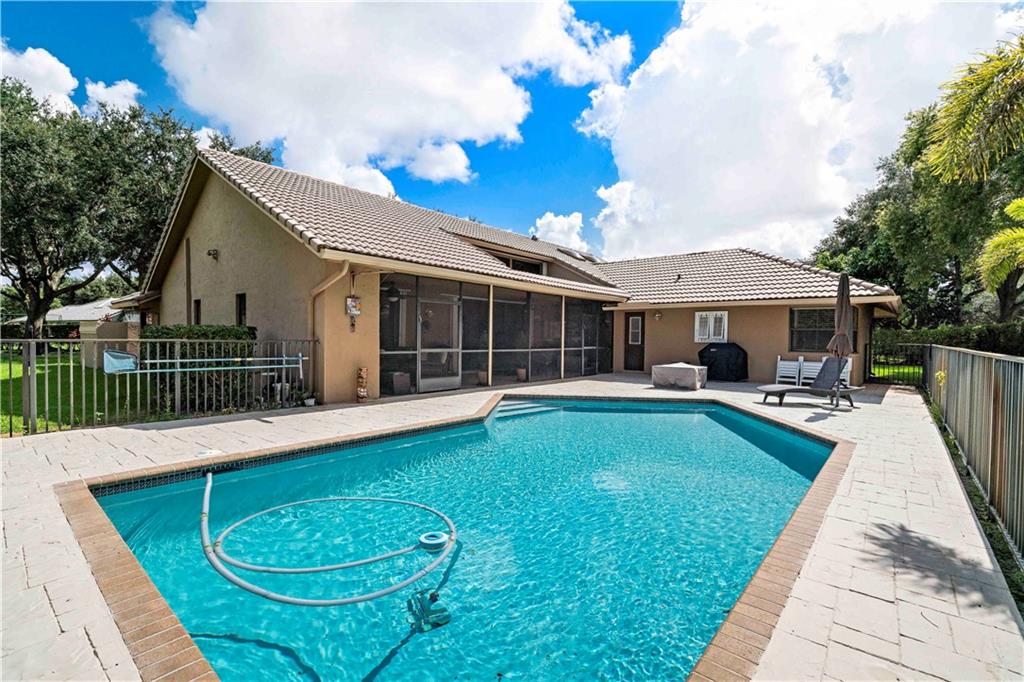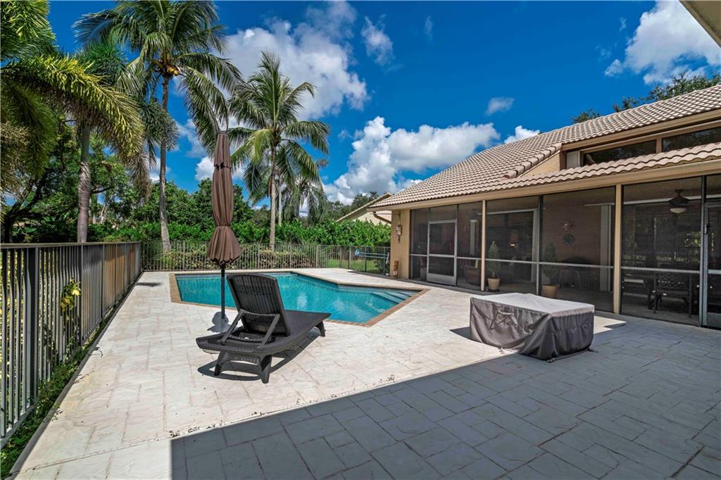 Updated Corniche model in sought after Pine Ridge. 4/2.5 plus office with pool has open floor plan. Kitchen has been remodeled with center cooking island, granite counters and wood cabinets. 2 Bathrooms have been remodeled. Wood like flooring and tile throughout. Pool just Diamond Brited. New hot water. 1 Ac less then a year 2nd less then 5 years. Fenced yard pool. Spacious screened patio. Accordian shutters on sliders. Large lot with lots of yard.