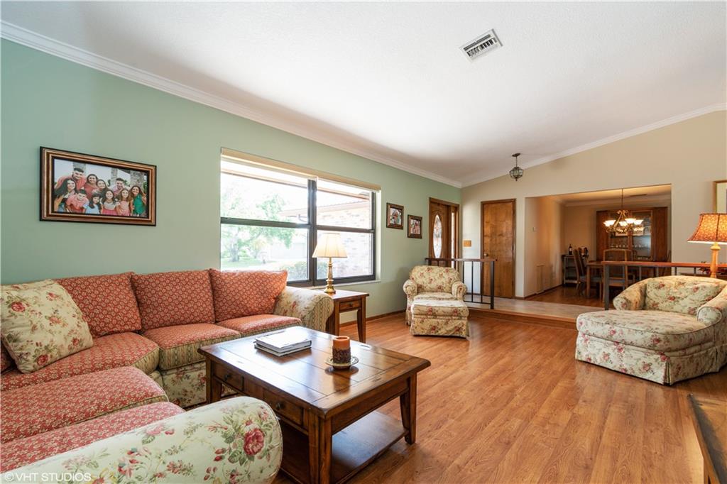 Immaculate, light and bright, one story 4/2 pool home on lake in desirable Cypress Glen. Open floor plan boasts crown molding, knockdown ceilings, tile & laminate wood flooring, and impact windows & doors! Kitchen features a cooking island, double wall oven, stainless steel appliances, and there is plenty of room for large kitchen table. Counter/Bar seating as well. Spacious formal living room with vaulted ceilings. Master and guest bath have been completely remodeled. Expansive covered patio with shades overlooking sparkling pool with lake views. Large circular driveway, clean manicured landscaping. Home is turnkey! NO HOA!