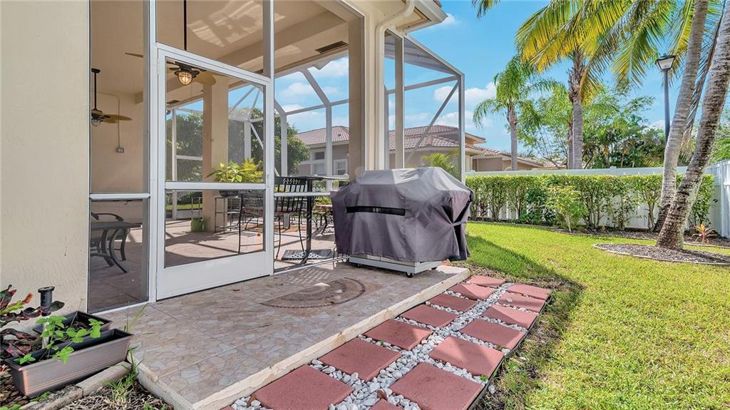 You will enjoy coming home to your impeccable true 4 bdrm 3 full bath home 3 car garage on cul-de-sac w/impact windows & doors.Chef delight gourmet kitchen w/wood cabinets, granite & stainless steel appliances including double wall ovens. Triple split bedrm plan. Master suite has huge walk-in closet & french door to patio. Master bath has dual vanities, separate shower and roman tub. Formal Dining Rm, Formal Living Rm. Enjoy barbequing on your extended dome screen patio w/fully fenced yard. Wood floors throughout. Crown moldings, new a/c system 2014. Please exclude dining rm & entry light fixtures. Wood cabinets in laundry room with tub sink. 24 hr guard gated community, clubhouse w/pool, billiard rm and exercise rm. Resort style living. Motivated seller relocating out to State