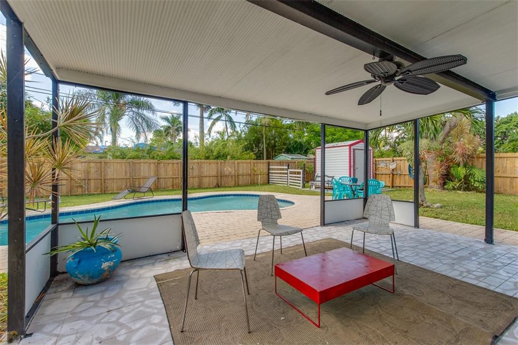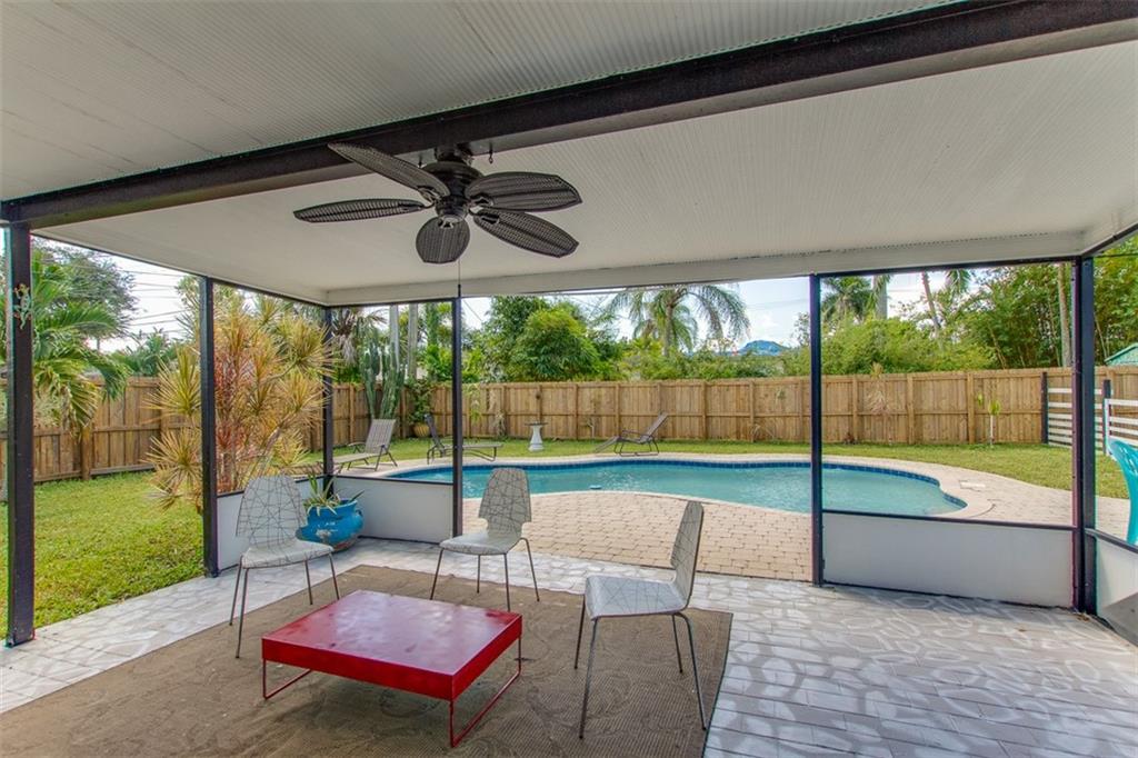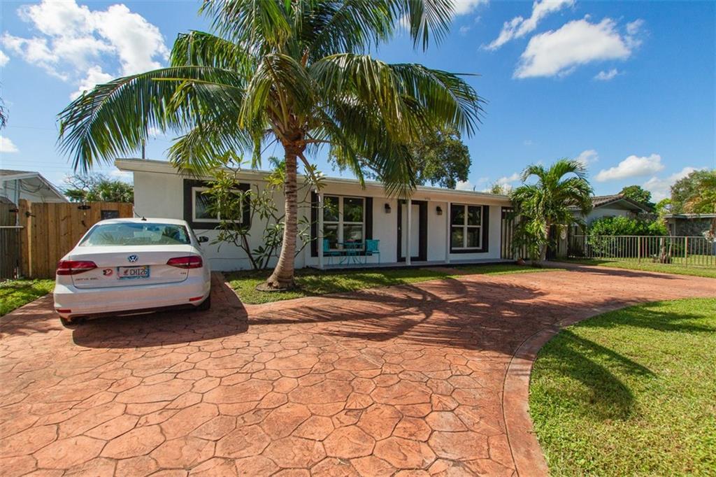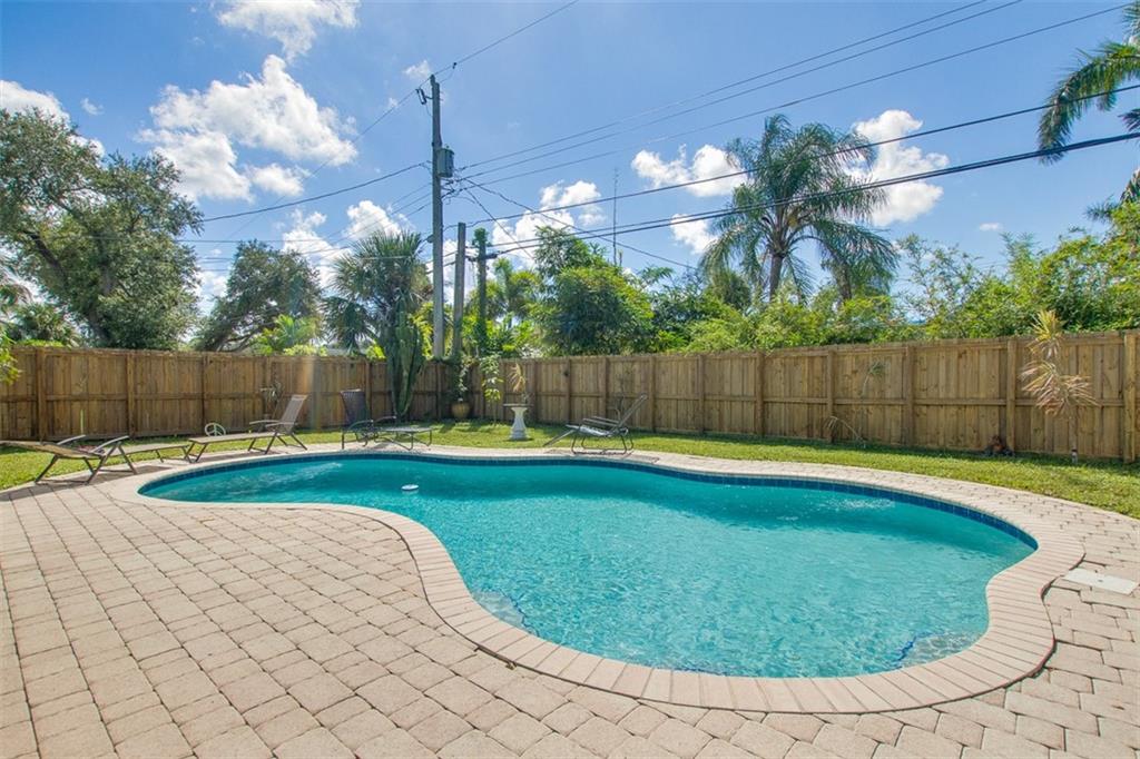 Fantastic 3/2 house with tropical backyard! Plop in your pool on a hot day, sit under your covered patio and relax... Tons of parking on your circular driveway, large kitchen with separate laundry room, roof only 5 yrs new, impact windows, split Floorplan, carport, newer wood cabinets in the kitchen. Sewer connection in 2004, pool installed in 2008, shed stays with sale, there is gas for stove/water heater but not hooked up. AC compressor 8 yrs old, Did I mention that gorgeous pool and fenced yard? ***(decor faux fireplace, 2 palm trees, extra fridge and freezer do not convey. Palms will be replaced with a similar tree)