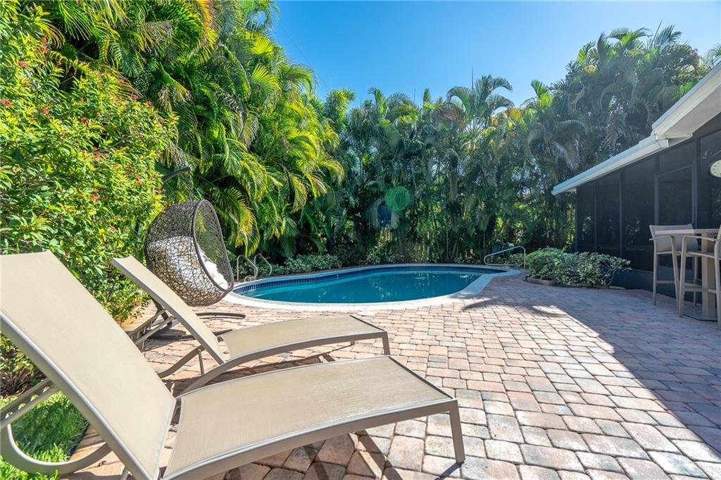 Delightful 3/2 Pool home set amidst lush tropical landscaping for total privacy w/,outdoor lighting & water feature creating a resort like oasis, free form pool & large paver patio complete this fenced yard . Kitchen appliances new in 2016, AC 2017,WH 2018. Other features: screened sun room, Plantation shutters, impact windows and French Doors, separate laundry room. Updated master bath, Second Bath/Cabana Bath updated in 2016. Kitchen open to living & dining area great for entertaining, kitchen features granite counters and under counter lighting + tile back splash. Irrigation system on well water, pump new 2017. Exterior storage room in back yard. Nest thermostat, Comcast Security Camera and alarm in back of house. Close to stores & major hwys & less than 3 miles to the beach!