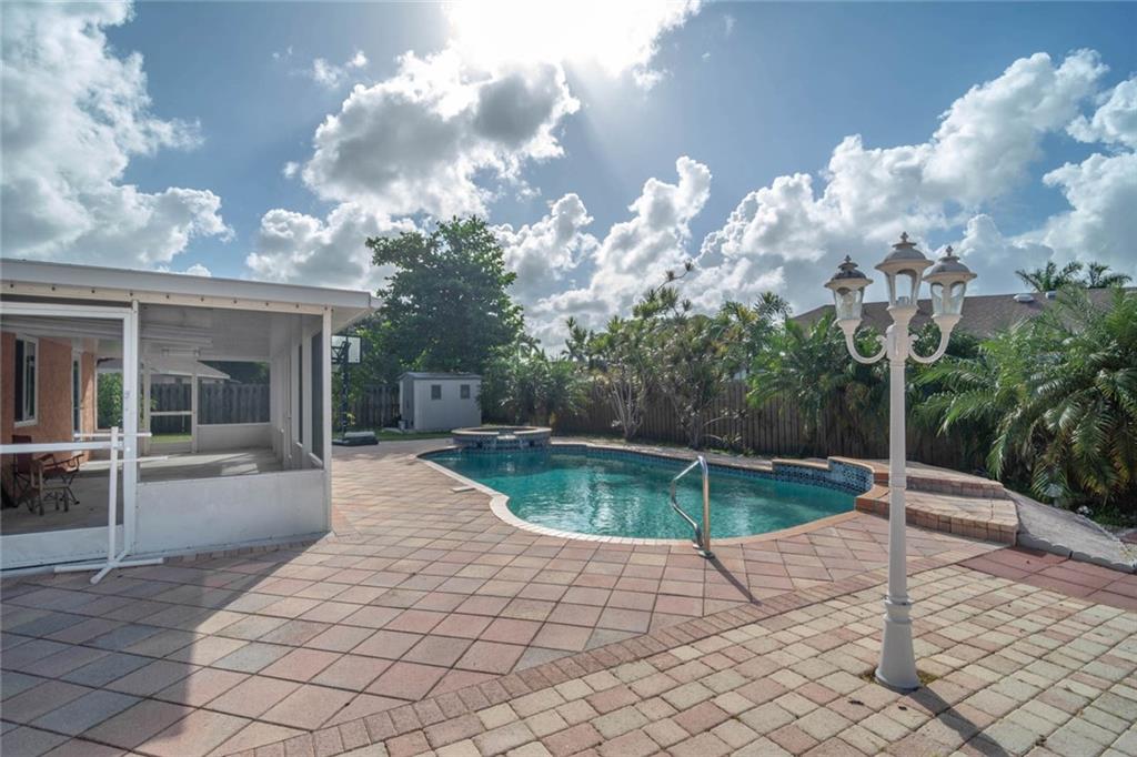 Nestled on a huge lot (10,703) this cozy 3/2 features a backyard oasis! Large pool, Jacuzzi, huge deck, multiple patios, covered/screened rear patio, fenced yard, basketball hoop, Lantern lights, & fruit trees! This is THE yard for entertaining South Florida style! Updated kitchen/granite guest bath, breakfast nook, tiled floors, walk in-master closet w/cabinetry, linen closet, French Doors. Newer Roof (2010), Newer A/C and hot water heater, Brand new Fridge & Stove; Microwave 1 year. Interior; and Exterior Front just freshly painted. Entire house, roof, patios & driveway just pressure cleaned. Low yearly HOA. Lots of room to grow and add an Addition later! Beautiful parks & shopping nearby! Excellent Weston area schools! Priced for minor TLC!