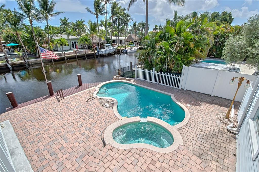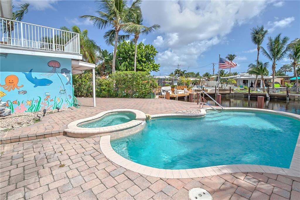 Boaters Paradise! Canalfront 2 story home in desirable Cypress Harbor with boat dock and ocean access. This 4BD/3BA features a large master bedroom with 2 open balconies and an ideal layout with one bedroom downstairs, perfect for guest bedroom or office. Fabulous outdoor living space with pool and hot tub overlooking the water. Huge paver patio and screened lanai is perfect for entertaining and family bbqs. Park your boat at your dock and enjoy easy ocean access with 2 fixed bridges and a short distance to ICW. Great neighborhood and no HOA. Endless potential turning this estate sale into your dream home!
