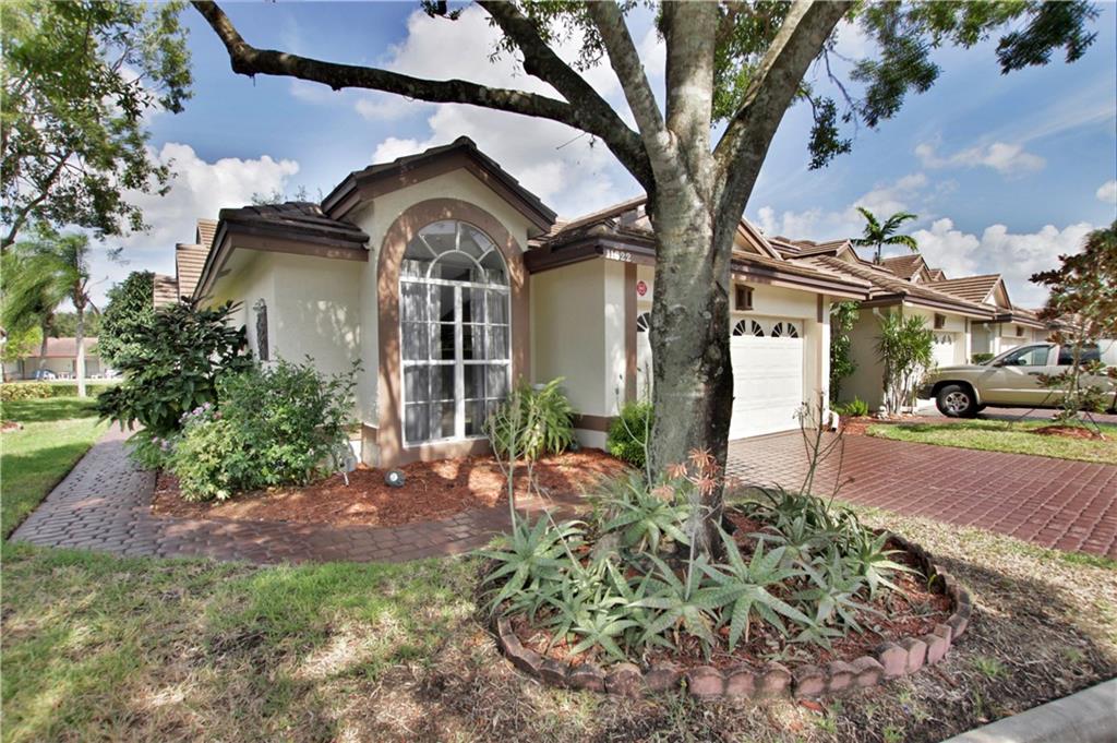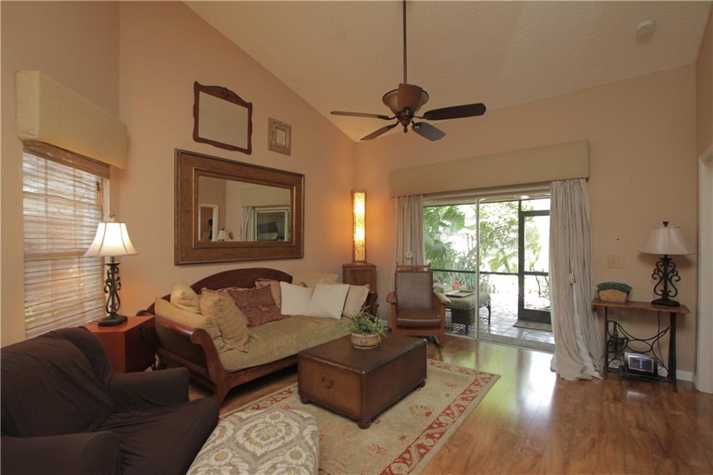Move-in ready corner unit townhouse featuring 3 bedrooms, 2 bathrooms, and a 2 car garage! Corner unit has a ton of natural light. Unit features newer appliances and granite counters in the kitchen. Wood & tile floors throughout - NO CARPET! Waterfront location w/ screened in patio & backyard pavers perfect for grilling or relaxing. Watch the sunset over the lake in your backyard! Association will require a minimum of 25% down but this unit is priced under the comps to sell quickly. Steps from the community pool. AC replaced in 2015, new roof (replaced by the association).