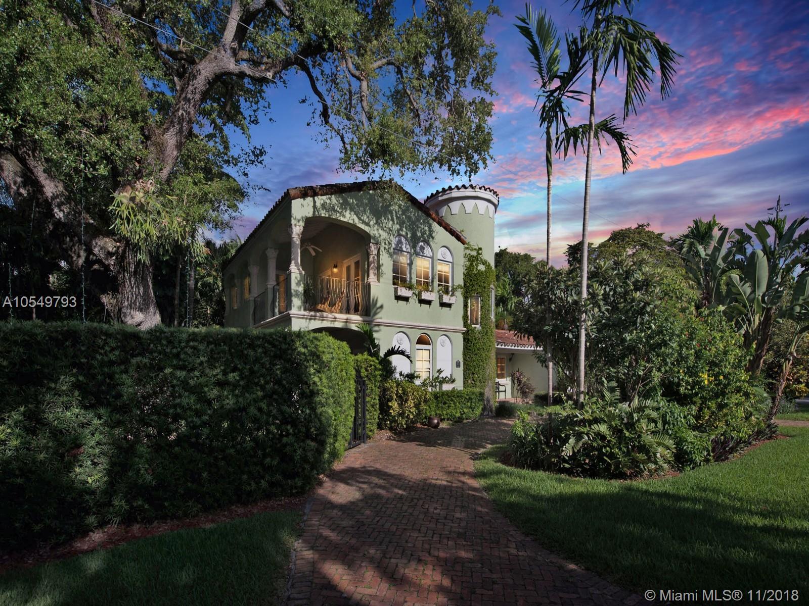 Coral Gables Iconic Turret House is finally available for purchase. This heavenly residence embodies the very essence of The Gables and has been featured in numerous books and magazines. First erected in 1938 & masterfully expanded in the mid 90’s to include an upstairs master suite accessible via its emblematic turret. The residence enjoys CGI impact windows/doors, walk-in closets, volume ceilings, wood-burning fireplace, Old Chicago Brick circular drive and sublime patios & balconies. The floor plan consists of 3 bed/2 bath in the main home + a detached 1 bed/1 bath cottage. It enjoys a gracious North Patio plus a verdant backyard delightfully enveloped in the Florida landscape. The Turret House is just 1 block from the Golf Course and another 2 to the Country Club & Tennis Courts.