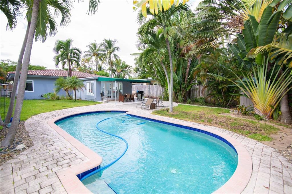 Beautiful open concept living in this 3 bedroom 2 bath home with private swimming pool. Property has fenced backyard, newer kitchen, stainless steel appliances, granite counter-tops in bathrooms, master suite with 3/4 bath, abundant natural light throughout, and enjoy views of the lush backyard and pool from your Florida room!