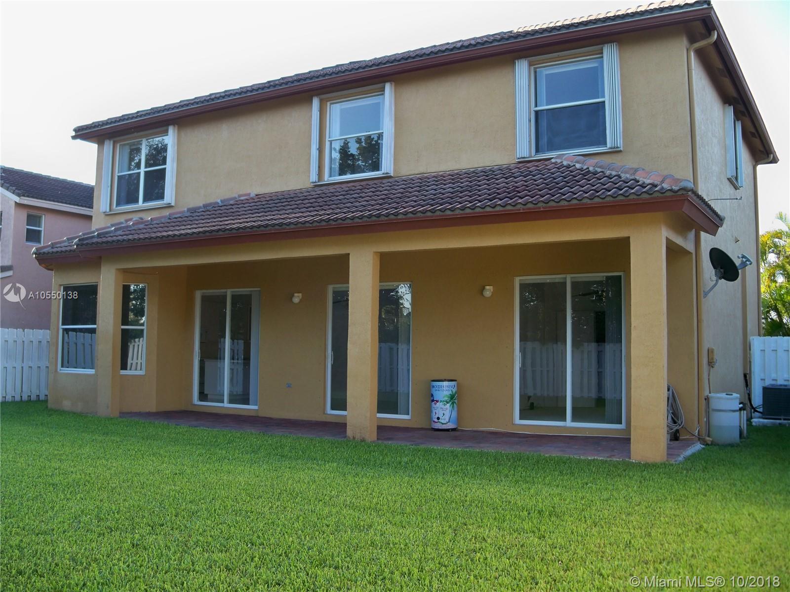 Beautiful 4/2.5 Grace model located in the prestigious Sunset Lakes community. NO rear neighbors.Ample DEN with sliding glass door to access covered terrace. Separated formal living and dining rooms. Family room with 2 sliding glass doors to easy access to the covered terrace. Kitchen with large eat at island and 42' European style cabinets. Breakfast nook. Master suite with 2 walking closets. Master bath with double sink vanity, 2 cultured marble vanities and cultured marble Roman tub.Bath #2 with double sink, cultured marble vanity and private shower. Laundry room with sink. EXTENDED covered terrace. Fenced backyard. Side entry garage. South facing home with low sun exposure since the majority of windows facing North (only one little window facing West).