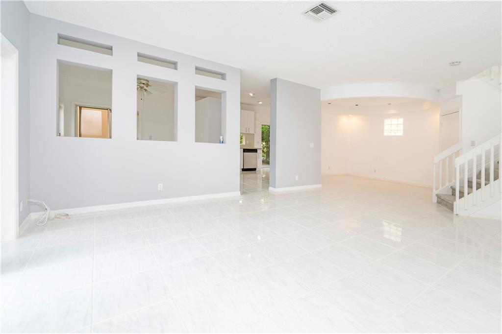 Gorgeous 4 bedroom, 2 1/2 bath, two story home in beautiful Portofino. This spacious home has 1 car garage plus parking space for up to 6 vehicles!!! Remodeled kitchen with granite counter tops/backsplash. 18'' porcelain tile throughout the 1st floor and brand new carpet in bedrooms upstairs. Sliding doors in the living room leads to a screened patio. Newer roof and A/C. Beautiful community pool with cabana and lots of trees! Assoc. requires 680 Credit score & 20% Down. Property sold AS-IS