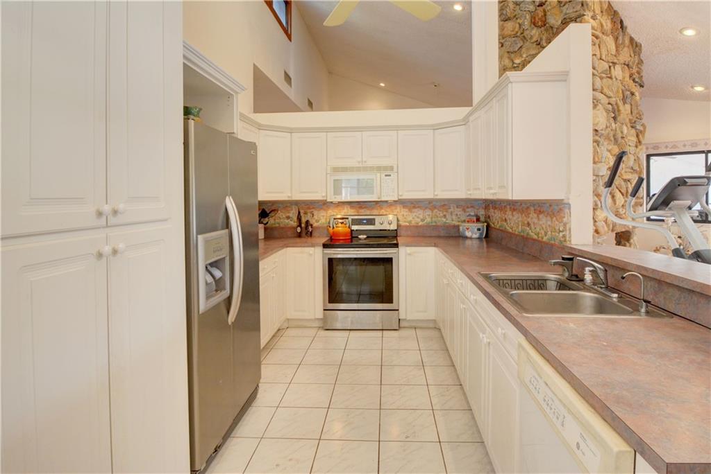 A MUST SEE!!!...4 bedroom 2.5 bath lake front pool home with 2760 sf under air and a 2 car garage. Master bedroom is 400 sf with 2 walk in closets. It also has 2 updated bathrooms, tile & laminate flooring, 2 AC units (2018 & 2015), 18ft ceilings, stone fireplace, pool & deck surfaces redone (2018), Newer roof (2010) and a large open pool/patio area with expansive water views. The homes lot has 145 feet of water frontage and is on a cul-de-sac. Its also close to restaurants, shopping, parks and A rated schools.