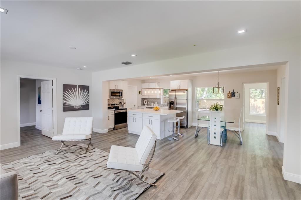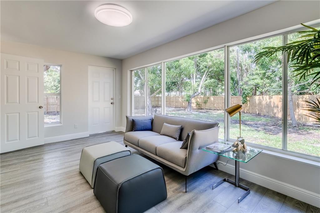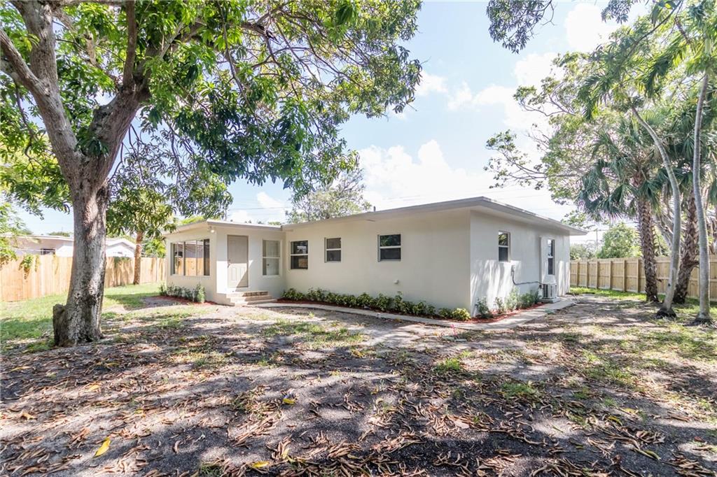 Absolutely stunning renovation in Lauderdale Park just around the corner from Wilton Manors!!! Large open concept 3 bedroom 2 full bathroom home with bonus room in the rear, overlooking the nearly half-acre fenced corner lot. Gorgeous island kitchen with 3-D glass back-splash, solid cabinetry, stone counter tops, stainless steel under-mount sink, disposal and all new appliances. Bathrooms built to be loved with fresh clean look, modern tiled showers, solid cabinetry, stone counter-tops and brand new fixtures. Whole house is trimmed in bright white, cool-look neutral paint and new plank flooring throughout. Master quarters has its own AC unit to make your sleeping space an icebox! All new electric, plumbing, central AC, roof, fencing and much more...