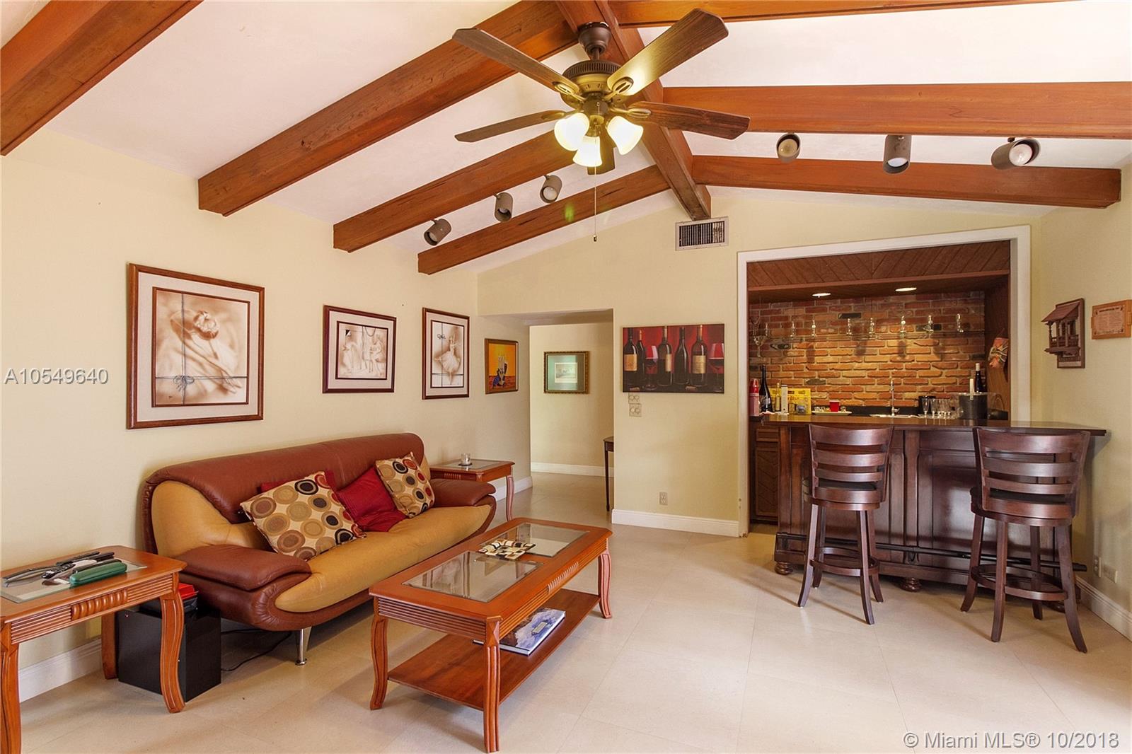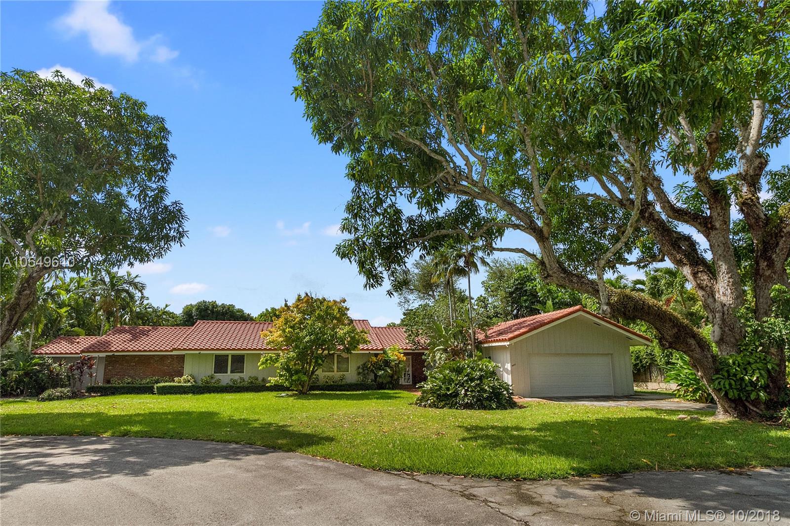 LOCATION, LOCATION, LOCATION! This North Pinecrest Estate is nestled at the end of a quiet CUL-DE-SAC with large mature trees. A beautiful home with 5 bedrooms + Den / 3.5 Bathrooms / 2 car garage, oversized Pool updated Kitchen with wood cabinets, granite, SS appliances, gourmet gas Dacor Range, high vaulted wood beam ceilings, 24x24 rectified Italian tile, Impact Windows/Shutters, New A/C and 2014 Roof. The master bedroom retreat has Bamboo floors and Spa-Styled Bathroom with Private Courtyard. Outdoor areas and chickee hut Bar-B-que area provides enjoyment for full Florida living. Secluded, yet in the mist of everything. Walk to the Royal Palm Tennis Club, or be minutes away to Trader Joe’s, great restaurants, Dadeland Mall, Metrorail, major thoroughfares and the Best Schools.