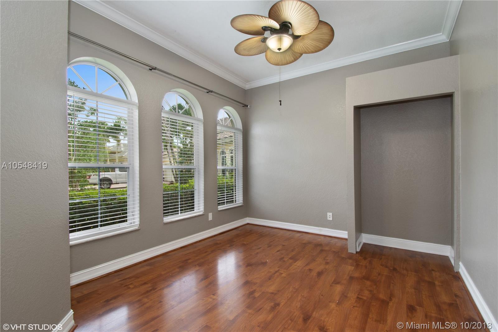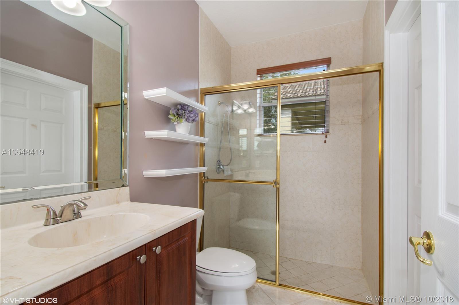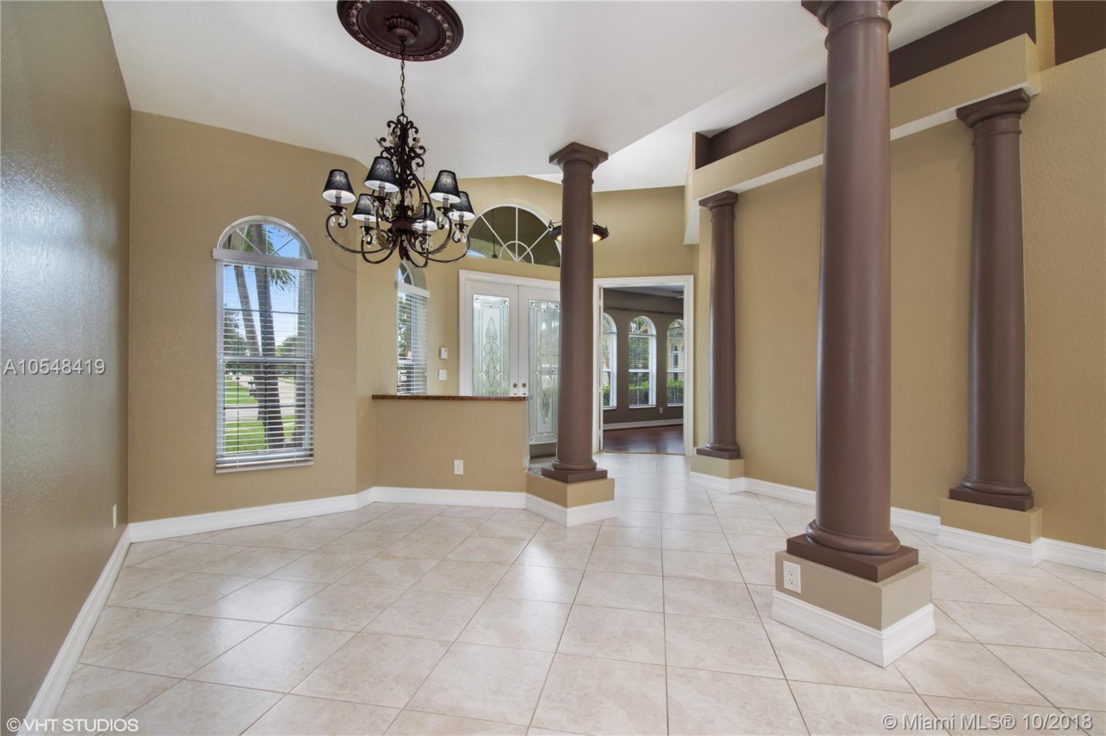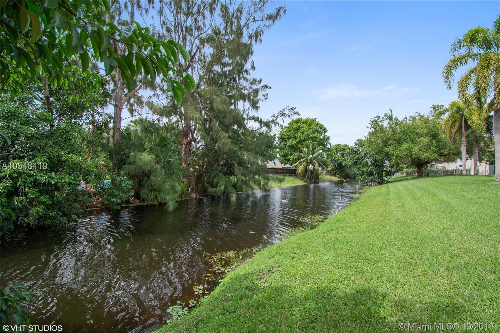 Second largest lot, pie-shaped, private with fenced backyard. 145' of canal-front. Desirable floor plan in prestigious gate-guarded, golf community, most conveniently located in Davie. 4-way 'split bdrms', pretty kitchen with new S/S appliances, double ovens, Maple cabinets, large pantry with pull-outs, center Island, Granite. Huge master bath with separate His/Hers vanities, double shower, Jacuzzi tub, His/Hers walk-in closets. Laminate in bedrooms. Dramatic 13' ceilings. Crown molding. New Washer/Dryer, A/C is 7 years, Water/Heater is 8 months. Freshly painted. Retractable awning. 2-car plus golf cart garage and 3-car wide driveway. 12,000sf lot w/additional 3,000 of slope to canal. Hurricane protection. Low HOA include: basic cable, alarm, internet & 24/7 gate-guarded. Top rated schools