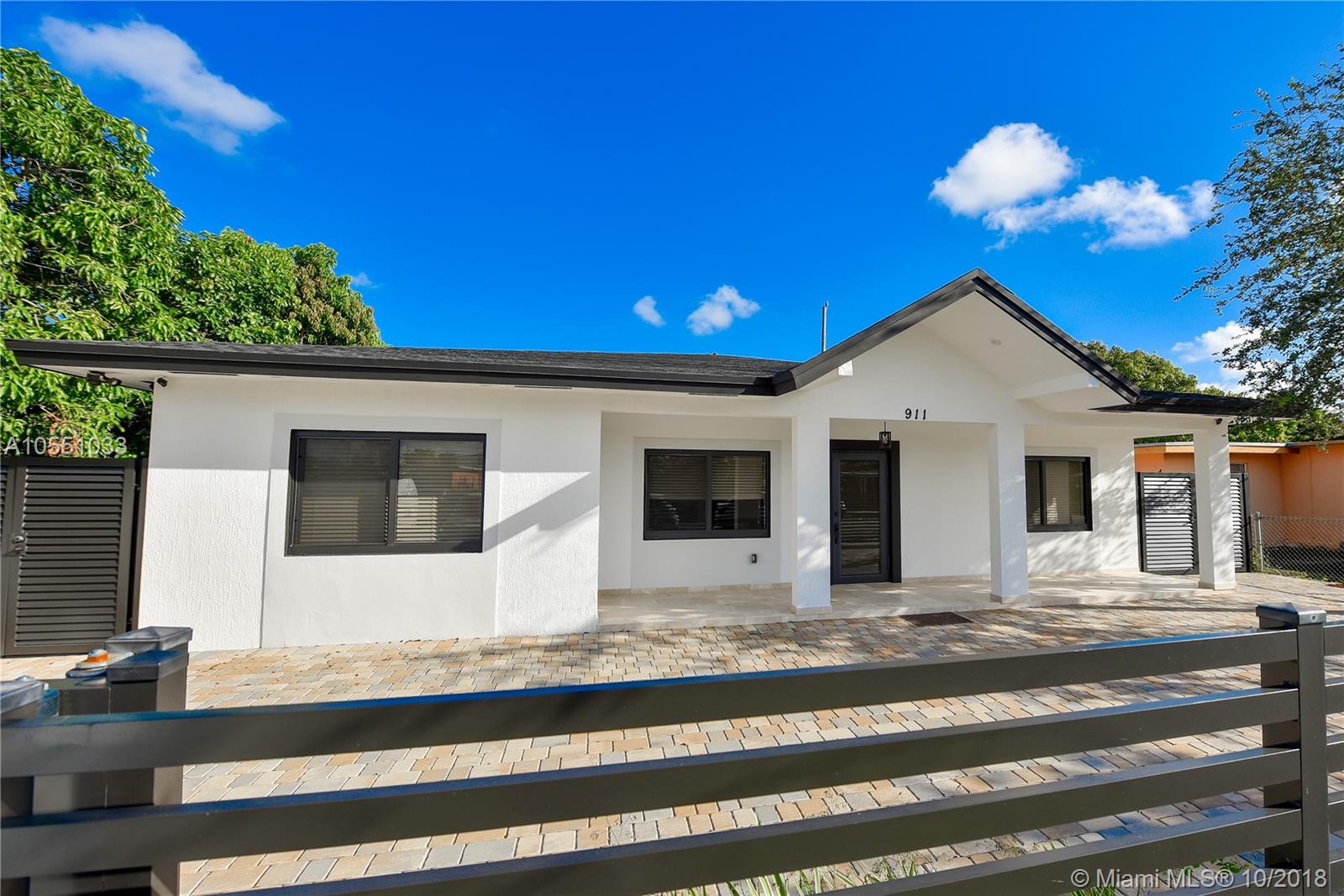 Modern Masterpiece in Hialeah. This 4 bedroom, 3 bath New Home was completed in 2017, and is an absolute perfection. Everything in this home is NEW (foundation, roof, plumbing, electrical, pool, a/c, appliances). No expense spared! The interior of the home has high hat lights throughout every room, two a/c units, top of the line appliances, high end quartz counter tops, and a split bedroom design. The exterior of the home has a huge gated and paved driveway big enough to fit 5 cars, and a 30x15 size pool with a jacuzzi complete with a pool heater and salt system generator filtration. There is a full bath in the outside pool area, a built in BBQ and connections for an outdoor kitchen.