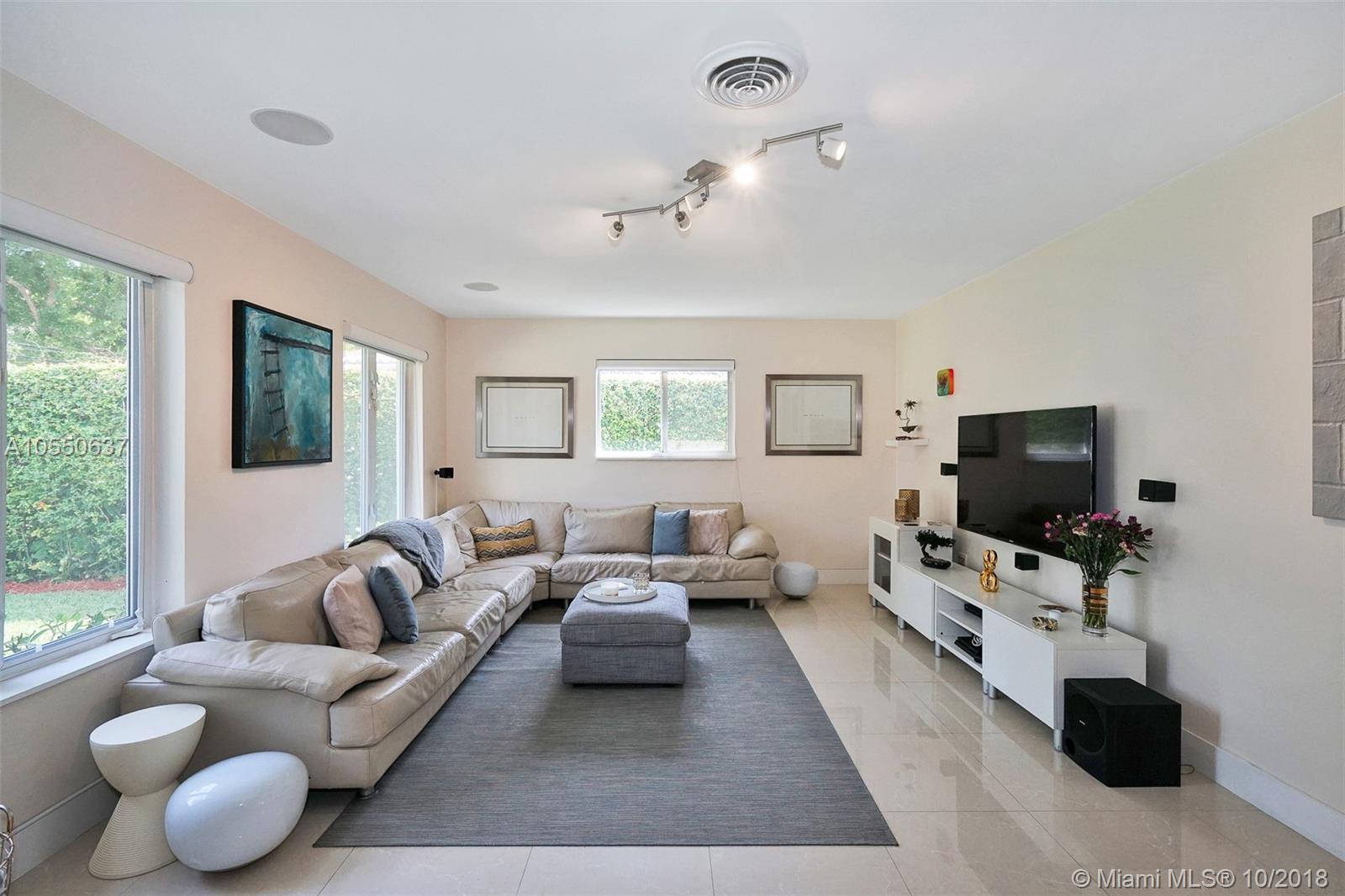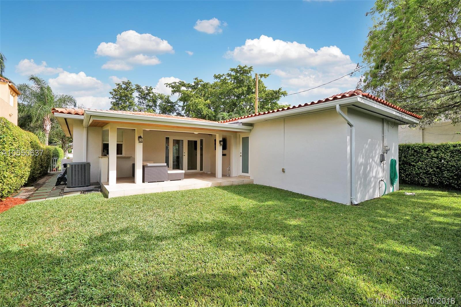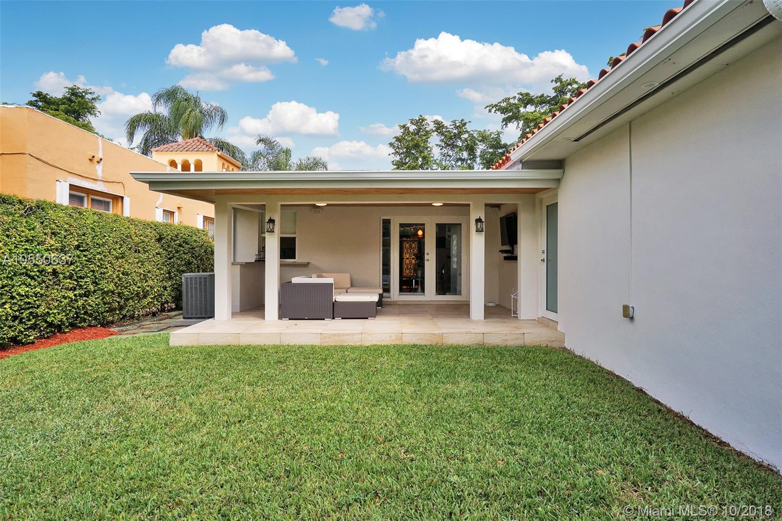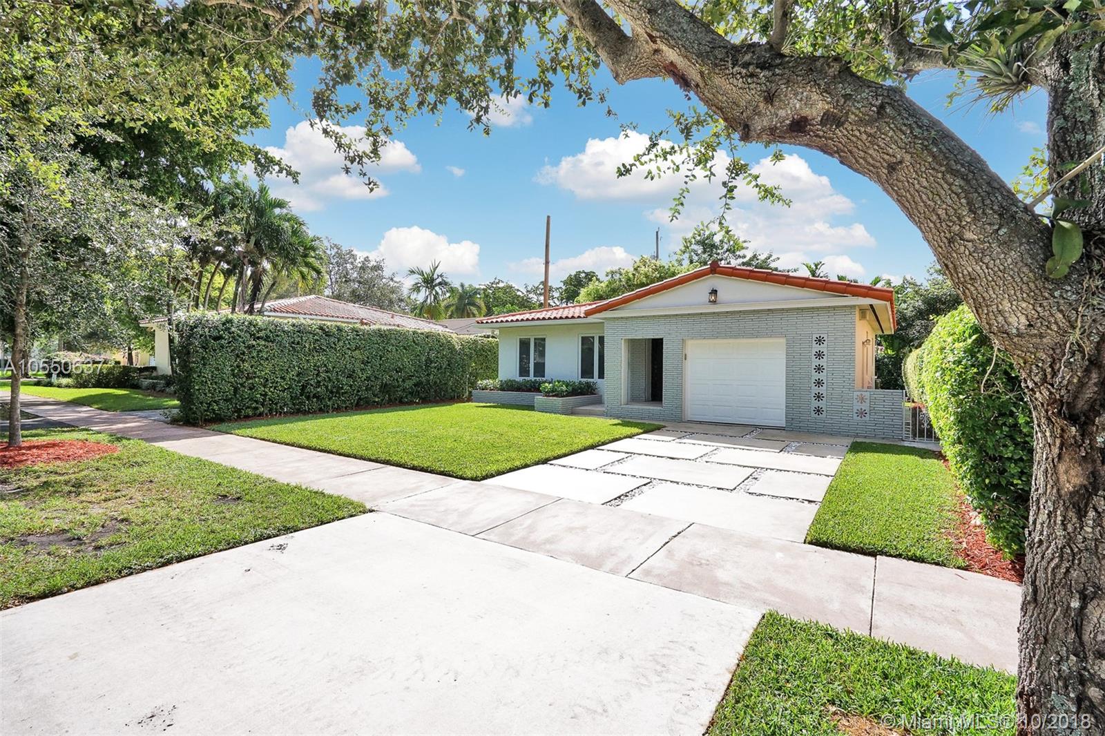 Move in Ready! Modern, Pristine & Bright 2/2 in wonderful North Gables neighborhood! This beautiful home offers all you are looking for! Either as a starter home or to downsize! Featuring porcelain tile floors, modern light fixtures, impact windows, renovated bathrooms, newer central a/c, 1 car garage & more! Spacious private landscaped back yard & covered terrace, great for entertaining! Minutes to Downtown Coral Gables, great schools & parks! Will not last!