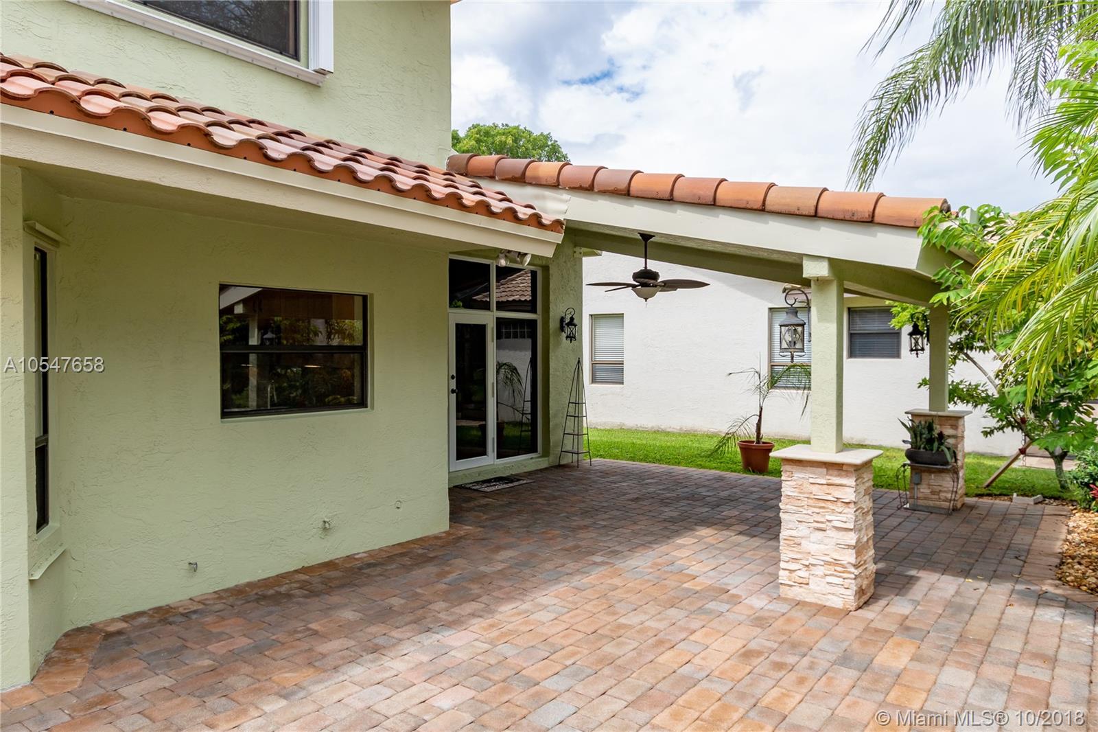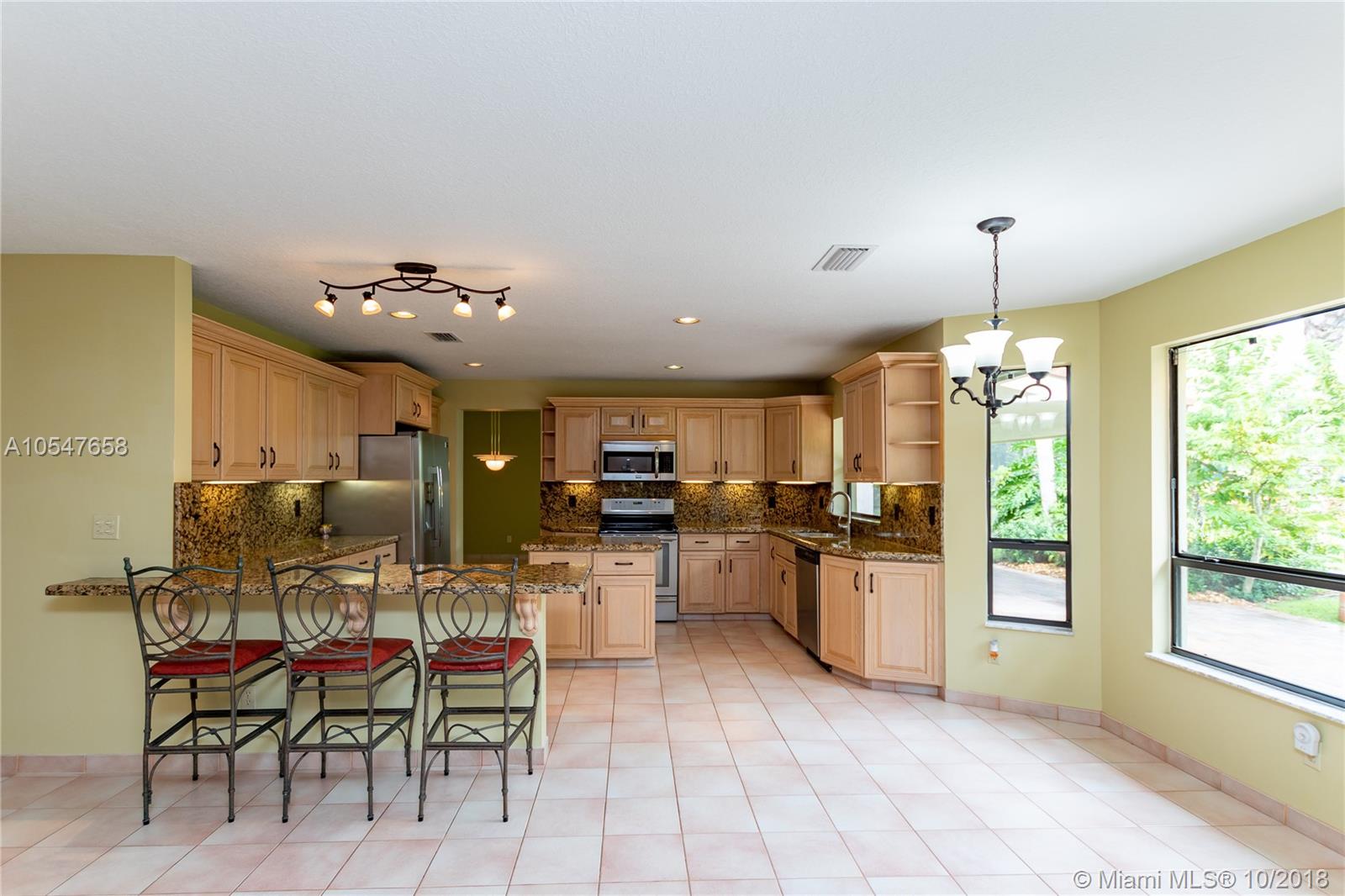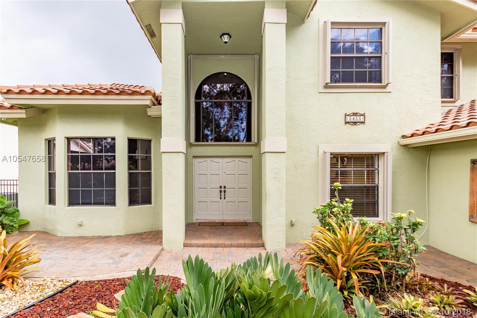 Gorgeous Mediterranean Style 4 bedroom, 3 bath home in Cooper City gated community, Embassy Lakes. Turnkey home offering a spacious, open-concept floor plan with upgraded bathrooms and a large kitchen featuring stainless steel appliances and granite countertops. Roof and AC were replaced in 2010. All windows upstairs are equipped with accordion shutters . Property sits on over 8,000 sqft lot, offering a large backyard with Lanai, perfect for entertaining and no rear neighbors! Meticulously kept community offers resort style amenities including club house with fitness center, banquet hall, and pool. This home is centrally located, and is zoned for all A+ schools. The best south Florida has to offer!