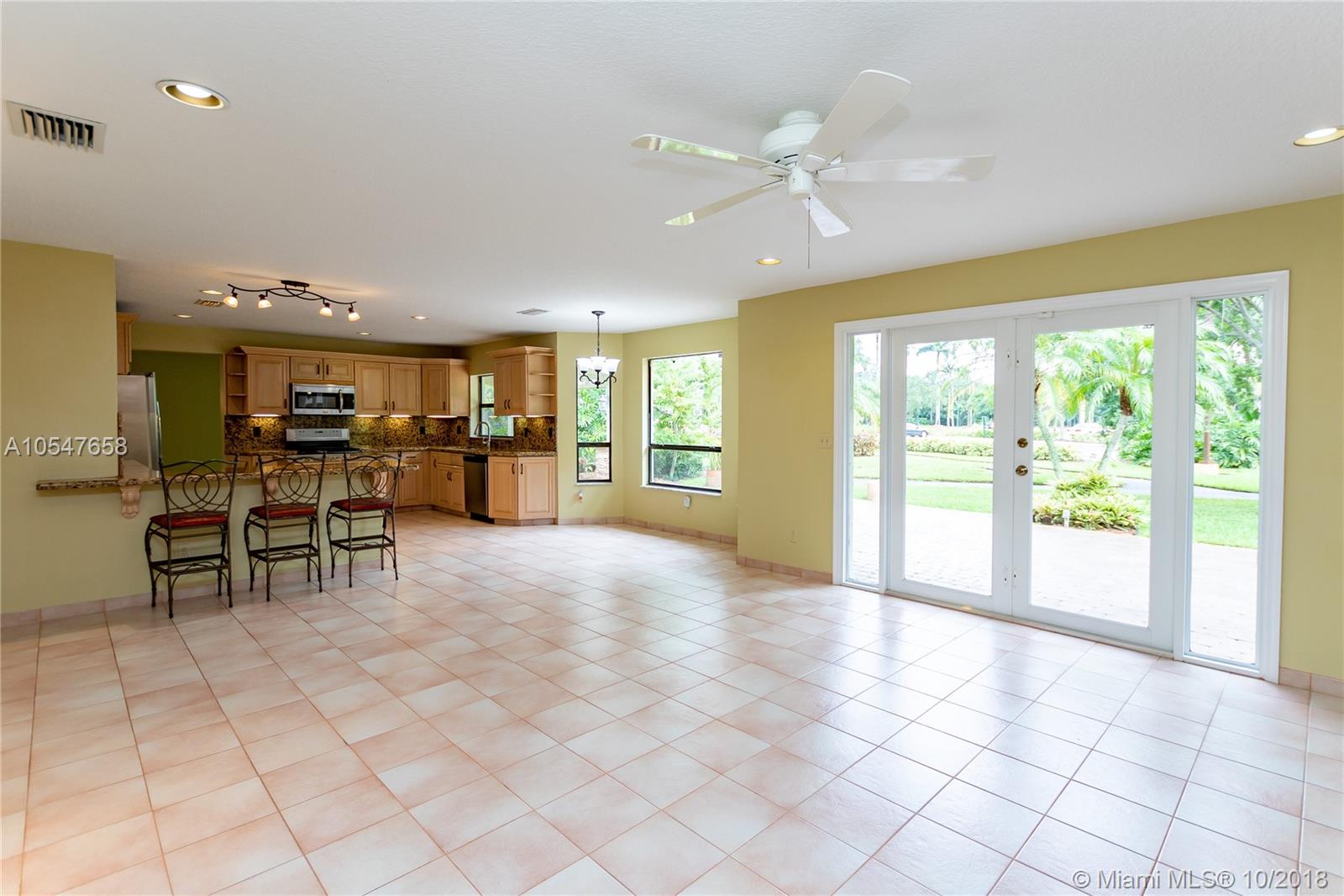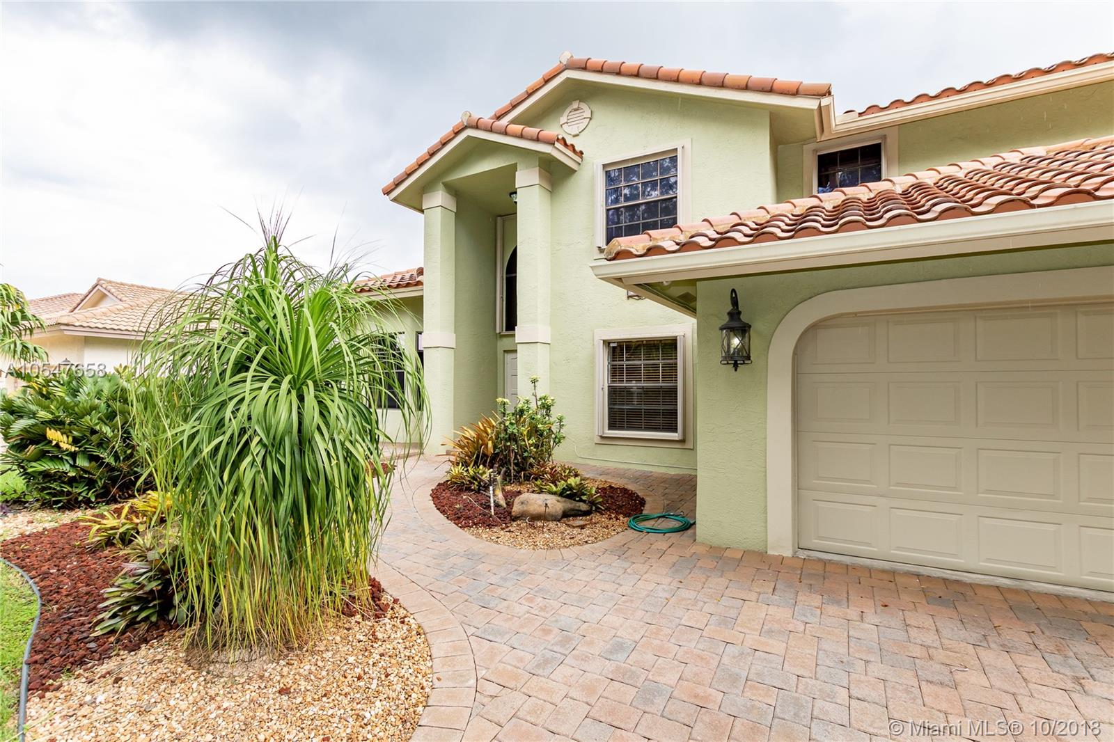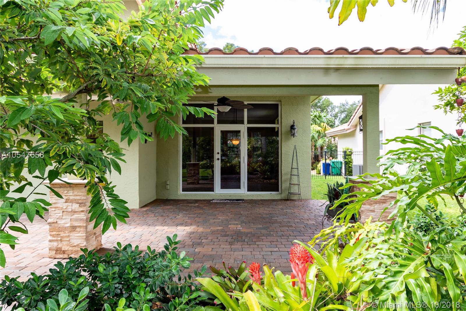 Gorgeous Mediterranean Style 4 bedroom, 3 bath home in Cooper City gated community, Embassy Lakes. Turnkey home offering a spacious, open-concept floor plan with upgraded bathrooms and a large kitchen featuring stainless steel appliances and granite countertops. Roof and AC were replaced in 2010. All windows upstairs are equipped with accordion shutters . Property sits on over 8,000 sqft lot, offering a large backyard with Lanai, perfect for entertaining and no rear neighbors! Meticulously kept community offers resort style amenities including club house with fitness center, banquet hall, and pool. This home is centrally located, and is zoned for all A+ schools. The best south Florida has to offer!
