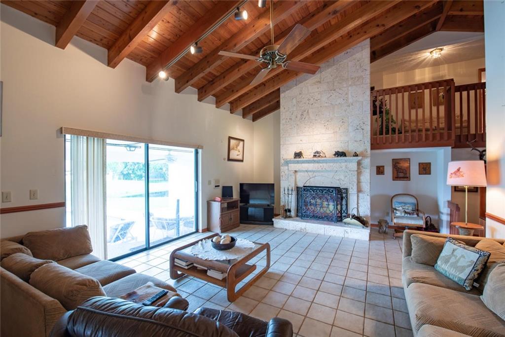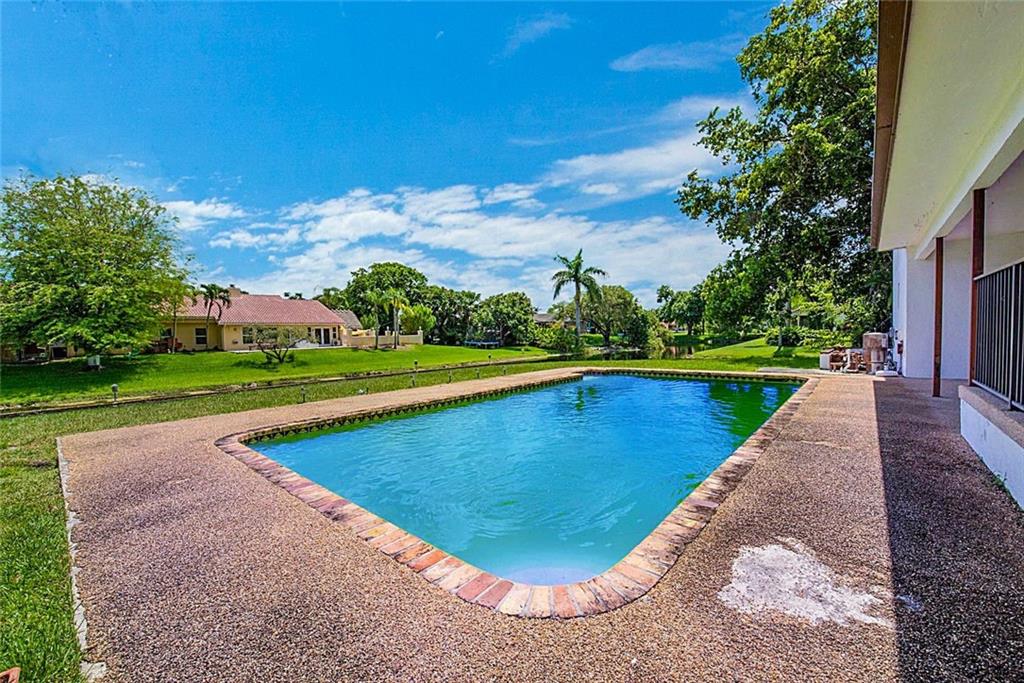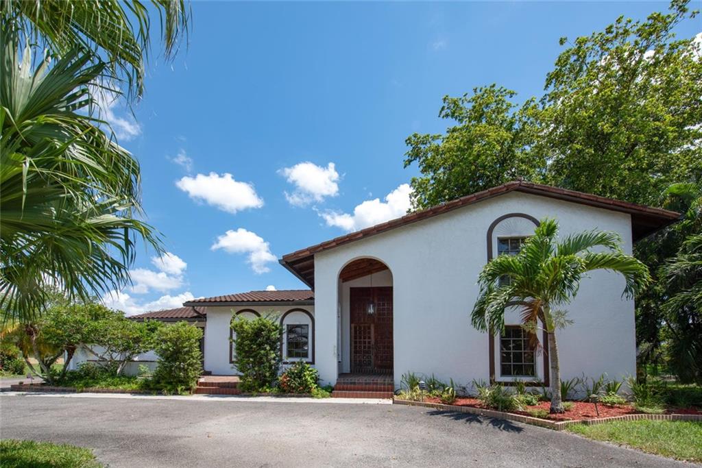 Charming home tucked away on a cul-de-sac in the highly desired, Groves Estates II of Davie. This waterfront property features a tranquil, panoramic water view in front AND back of property. Enjoy the spectacular view from the expansive upper balcony. 5 bedrooms, 3.5 bathrooms, master bedroom on first floor. Open floor plan, wood floors, gorgeous exposed wood beam ceilings, and fireplace. Office has parquet flooring. Covered patio ideal for Floridian entertaining. Circular drive with ample parking. Conveniently located near major highways and shopping. Top rated schools. NO HOA.