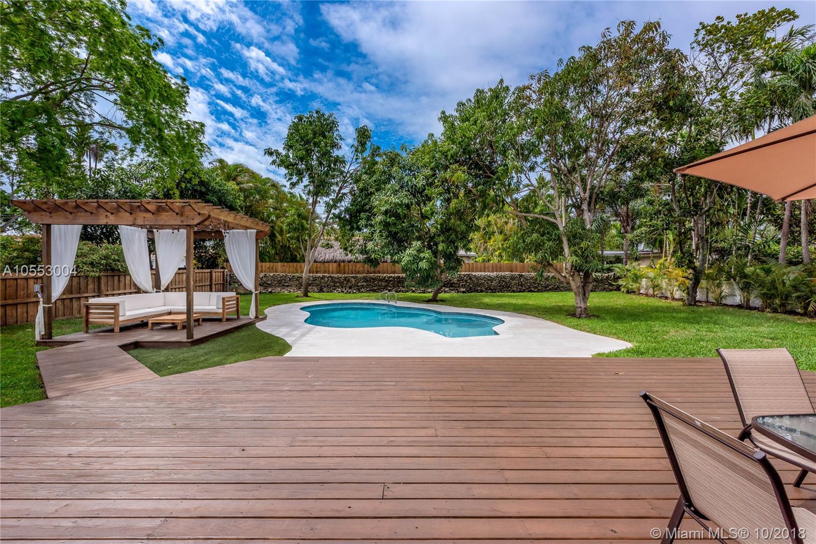 Dream house in Miami shore. Fully renovated with a unique 100sq/f Skylight on a quiet cul-de-sac street. Come to see this European style house made by a french designer. This stunning house features new roof, new high impact windows and steel double front doors, new A/C system and many more. The porcelain wood look tiles add a welcoming touch on this huge family room and integrated kitchen. The skylight, the numerous and large sliding doors transform the space into a true in/outdoor living experience. Come to see this breathtaking, modern and exclusive house. Other features: master suit with double shower and walking closet, big wood deck, outdoor patio, new garage, new pool resurfacing Inside tiles and stone, new sprinkler system, new driveway, and new inside and outside lighting system