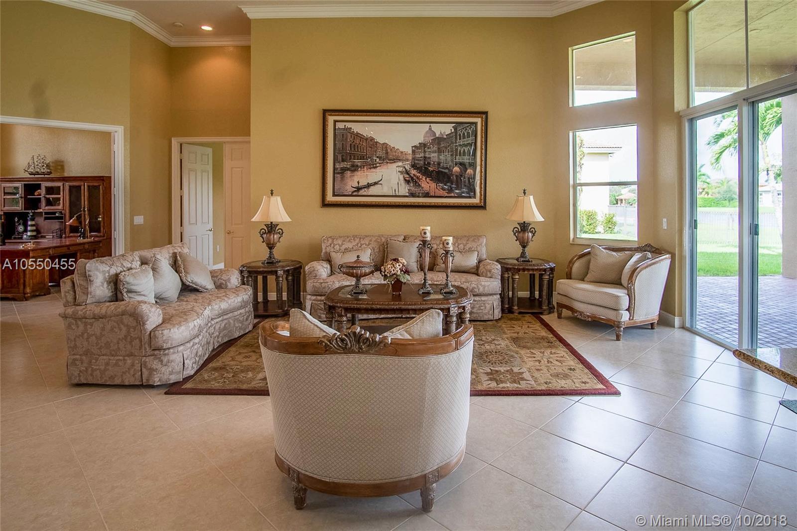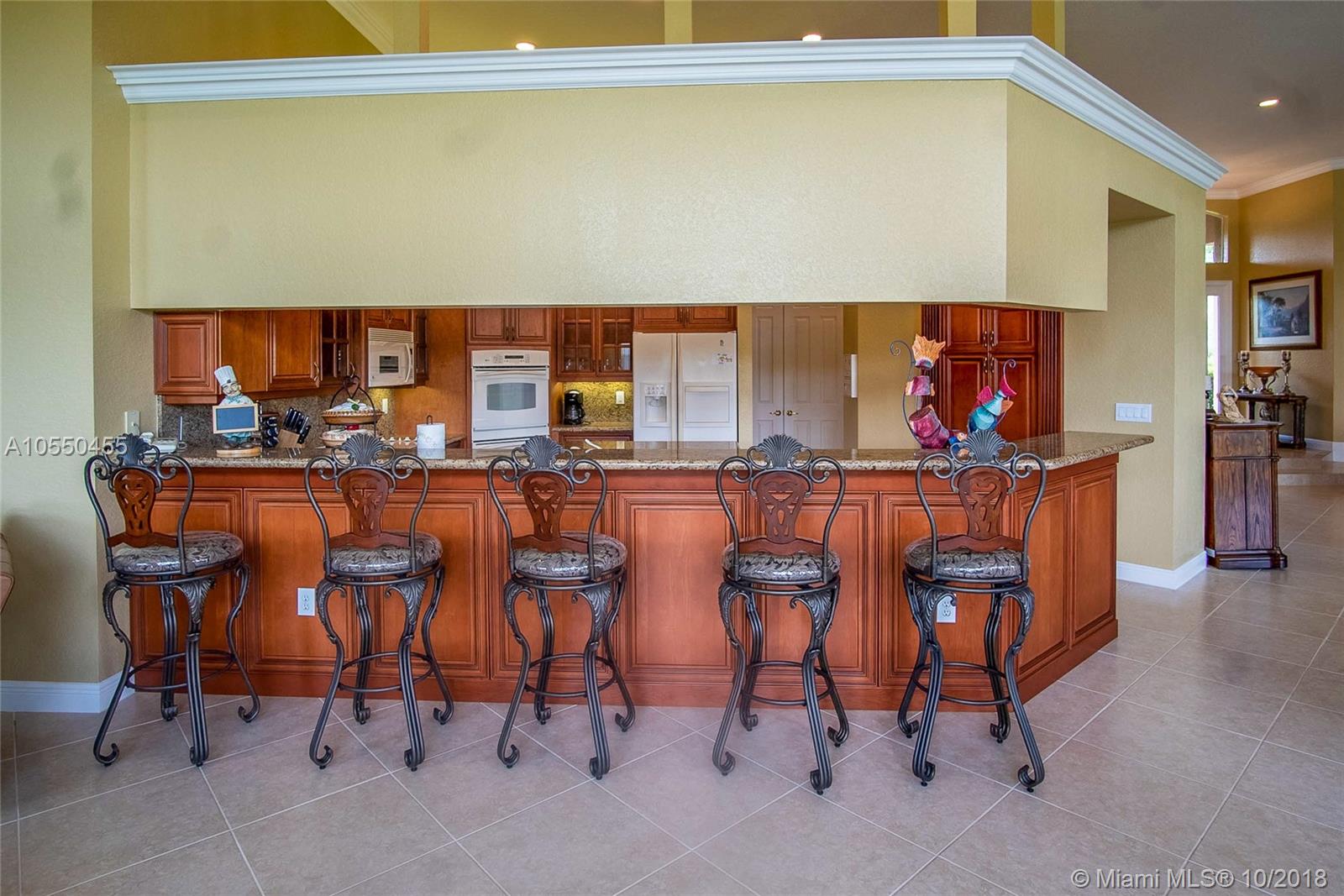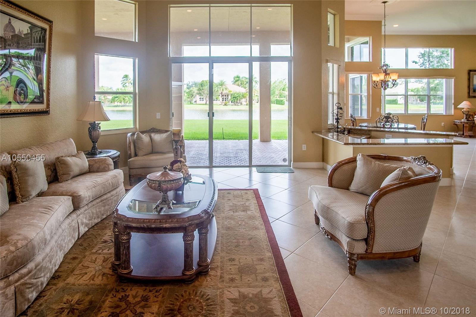ABSOLUTELY SPECTACULAR HOME A MUST SEE!!! This home has all the imaginable upgrades including crown moulding in every room, tray ceiling in master, built-in sound system, wet bar, gorgeous tile floors, full guest/pool bathroom, all recessed lighting, walk-in kitchen pantry and much more. The 5th bedroom can be used as a den/office. The home has abundant natural light throughout. 3 zone a/c system in perfect condition as well as a new HWH. The home is situated on an expansive lot with a 180 degree lake view. All openings have shutters in the event of a storm. The home has never been lived in since originally purchased and perfectly maintained.