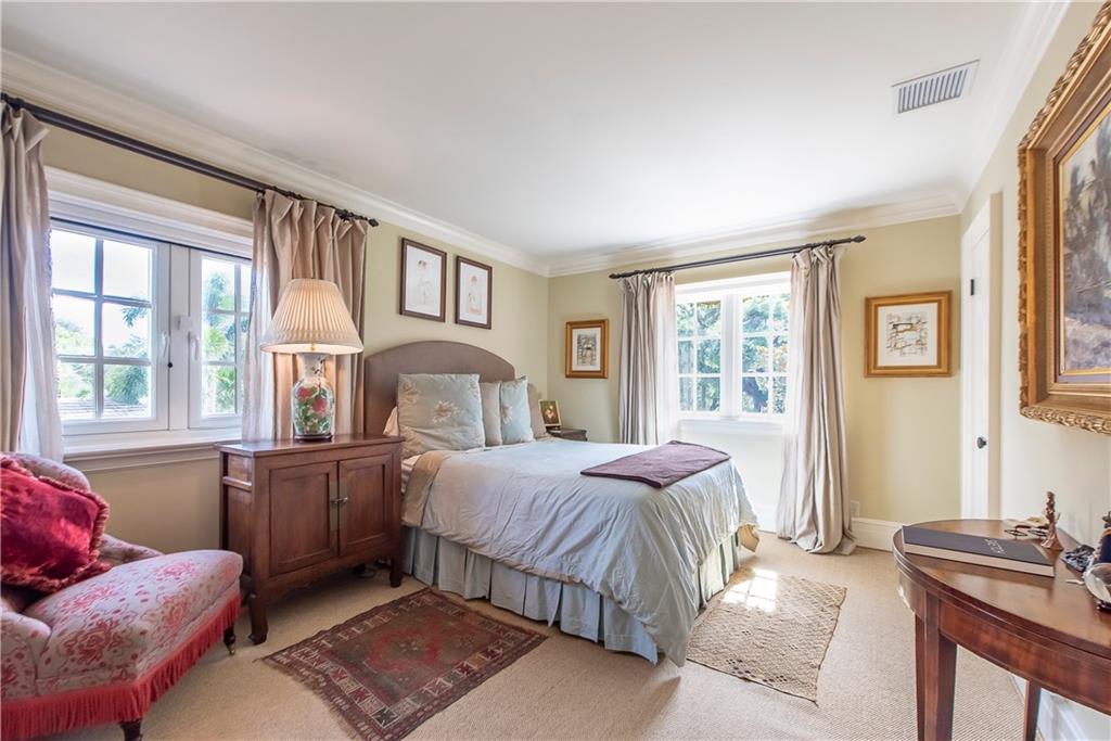 Superbly updated home designed for active living. Easy flowing indoor and outdoor living areas with wide rooms and high ceilings. Walls of French doors access a roofed terrace facing the huge pool, lushly landscaped gardens and lawn. The kitchen has ample areas for baking and chef's prep. Outdoors, the long bar faces a beverage center and adjacent second kitchen with a professional gas range. The master suite has a sunny office-sitting room, two generously sized walk-in closets and fabulous bath. On a large walled and gated lot, the house is perfectly located across from Victoria Park with access for paddle boarding and kayaking. Adjacent property at 1 N Victoria Park Road is also available. Properties may be combined to create a magnificent (nearly half acre) compound. See MLS# F10156861