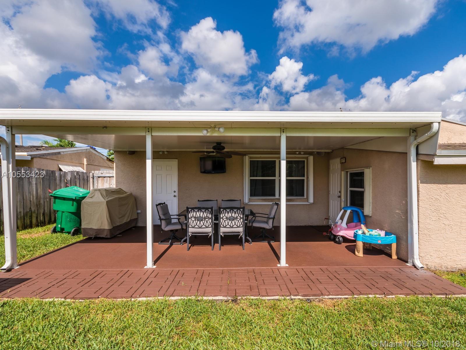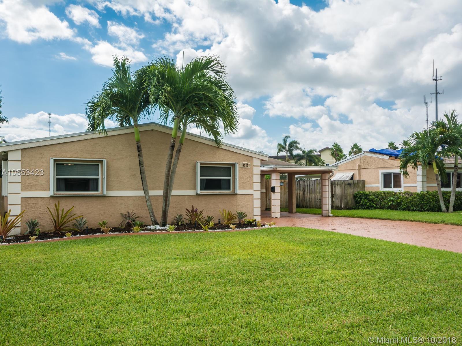 Don't miss this charming 3 bed, 2 bath waterfront home in Miramar. Featuring covered parking and a freshly sealed driveway, it's located close to all major highways. Enjoy cooking in the upgraded kitchen with stainless appliances, upgraded cabinets and granite countertops. You can eat your meal on the covered back porch while you overlook the peaceful water view and cool off with the overhead fan while watching the big game on the tv. Or enjoy the game only minutes from your home to the Hard Rock Stadium! The lawn and landscaping are very well maintained with the sprinkler system. Accordion shutters on the windows and hurricane rated doors keep you safe during a storm. Roof installed in 2009. Includes an 8 camera security system accessible remotely on your phone. NO ASSOCIATION!