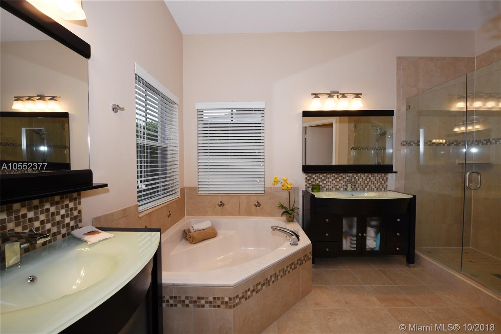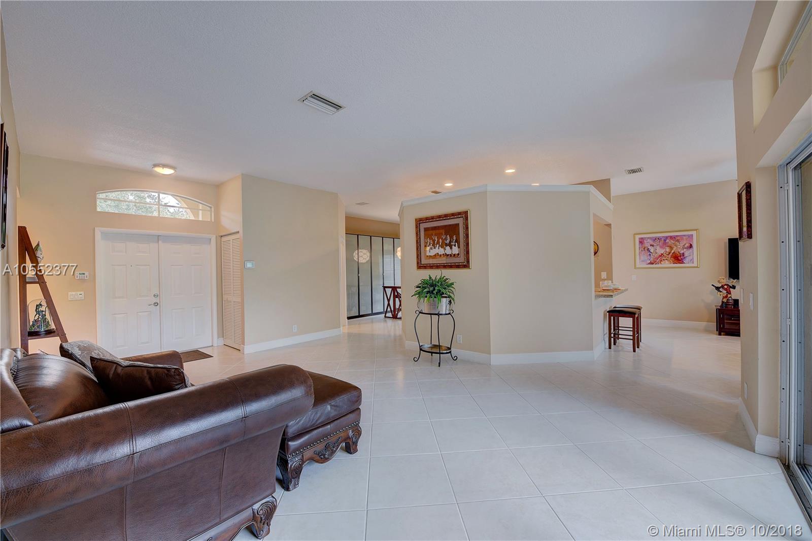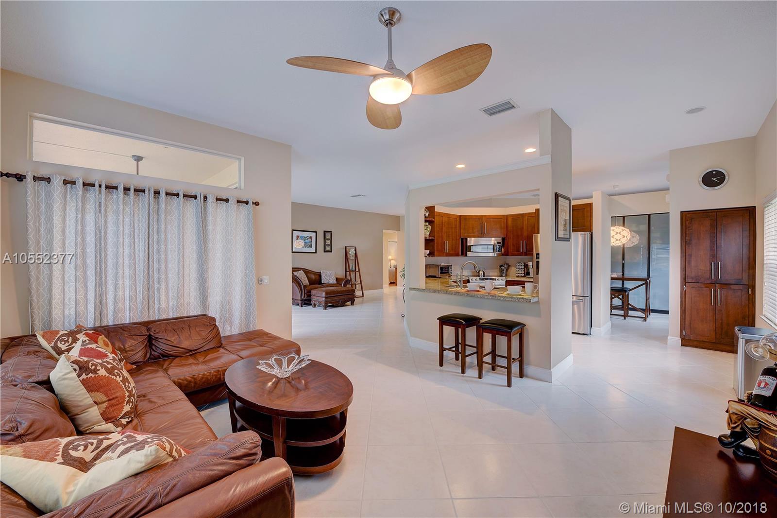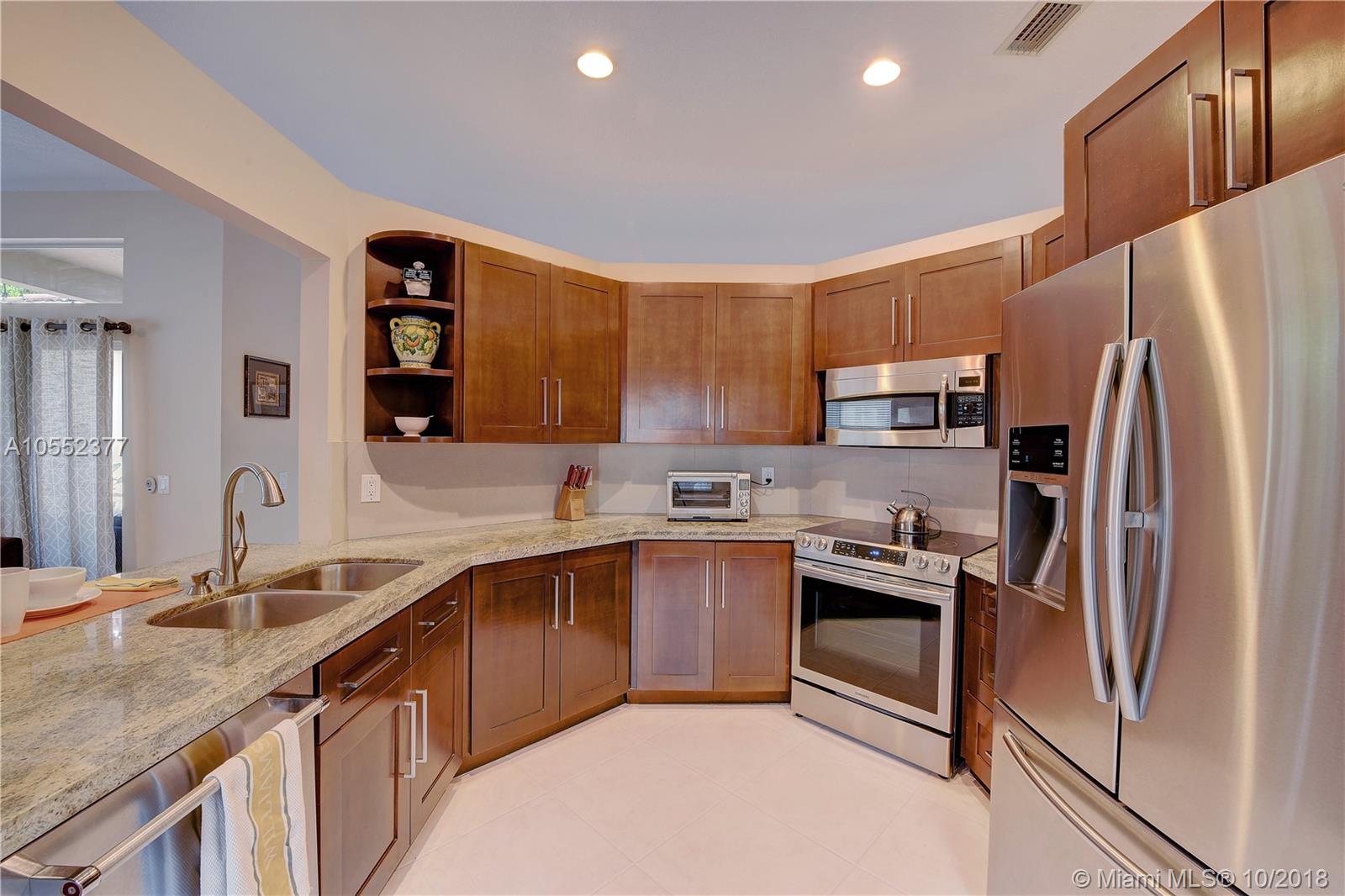 The Meadows-A pristine 24hr gated Weston community,walking distance to elementary school, pool & playground. Contemporary, upgraded 4 Bedroom, 2 Bath, single story open concept home with Volume ceilings, bright Transom windows, & 24" white tile throughout living areas. Cook for your crowd in the heart of this home, the Kitchen. Upgraded Samsung & KitchenAid Stainless Appliances, Wood Cabinets, & Granite Counters. Private Master bedroom suite with upgraded bath, seamless glass enclosed shower, wood/glass individual dual sinks, custom tile & Roman Tub. Split plan of 3 additional bedrooms with tile & second upgraded custom bath. New Washer/Dryer. Covered, over-sized patio & private yard with room for pool is perfect for entertaining. Hurricane Shutters. SMART AC controller. AHS Home Warranty.