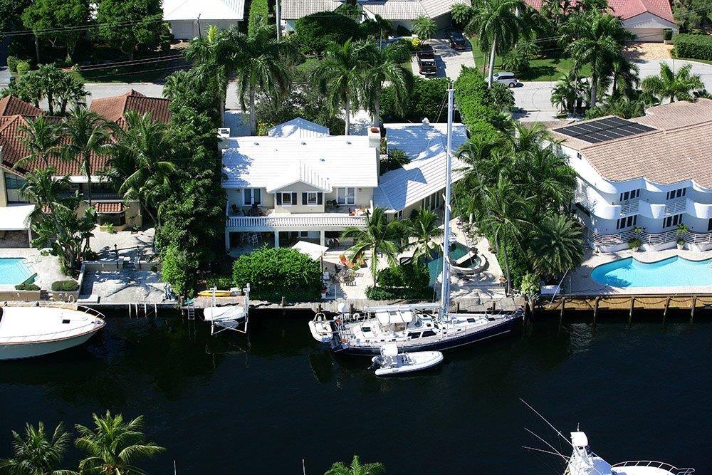 Sunrise Key home with Middle River views on 100 ft. of deep water with sailboat draft can accommodate a yacht of up to 80 ft. Extensive renovations. Impact glass windows and doors. Whole house generator. Living room with stacked stone fireplace and porcelain tile floors. Kitchen with gas cooking, two wall ovens and granite counters. Master bedroom with two walk-in closets, steam shower and outdoor terrace. Outdoor covered summer kitchen with gas grill and wet bar. Resort style pool with raised spa and waterfall and gas fire features. Sunrise Key is a gated community of