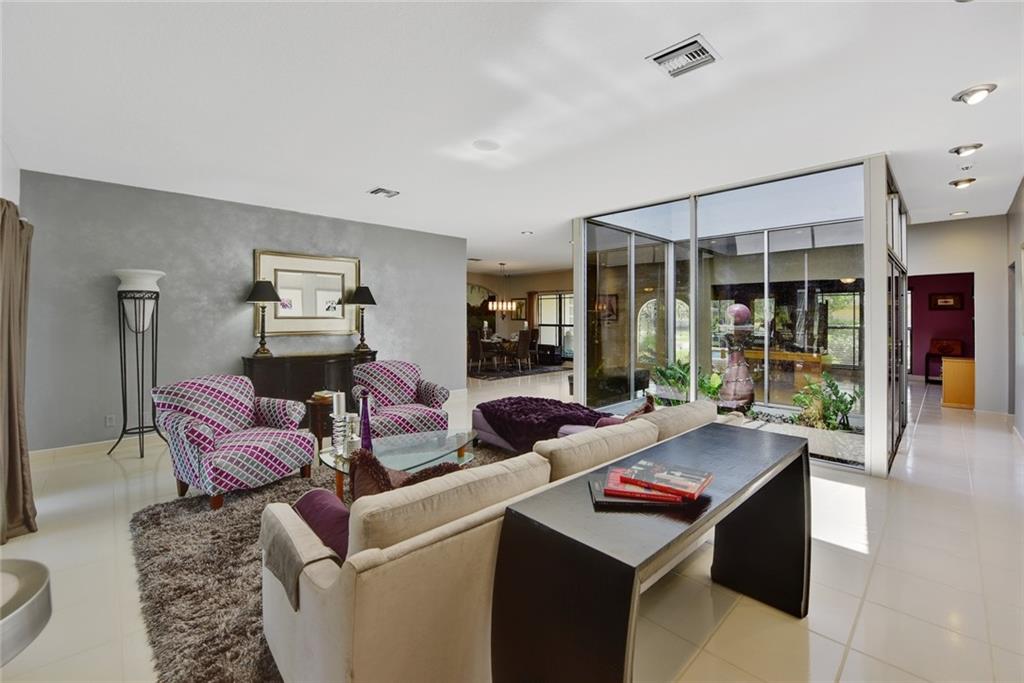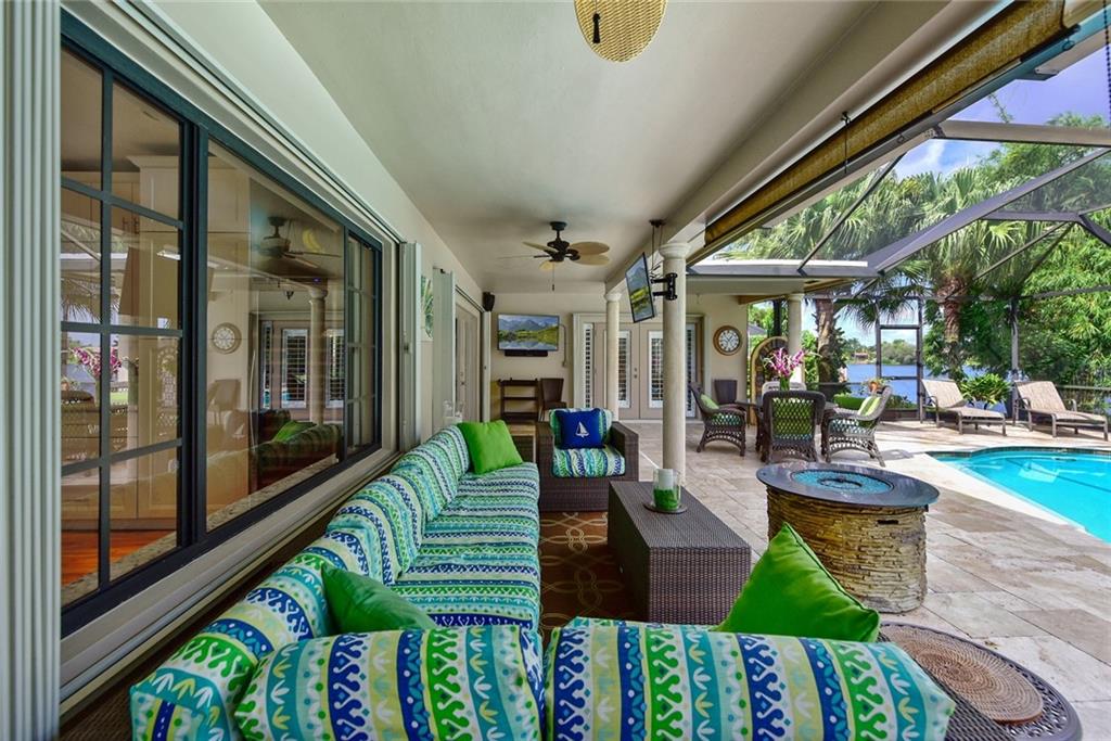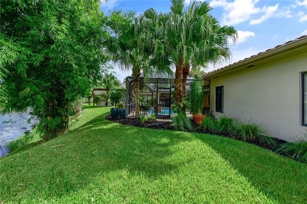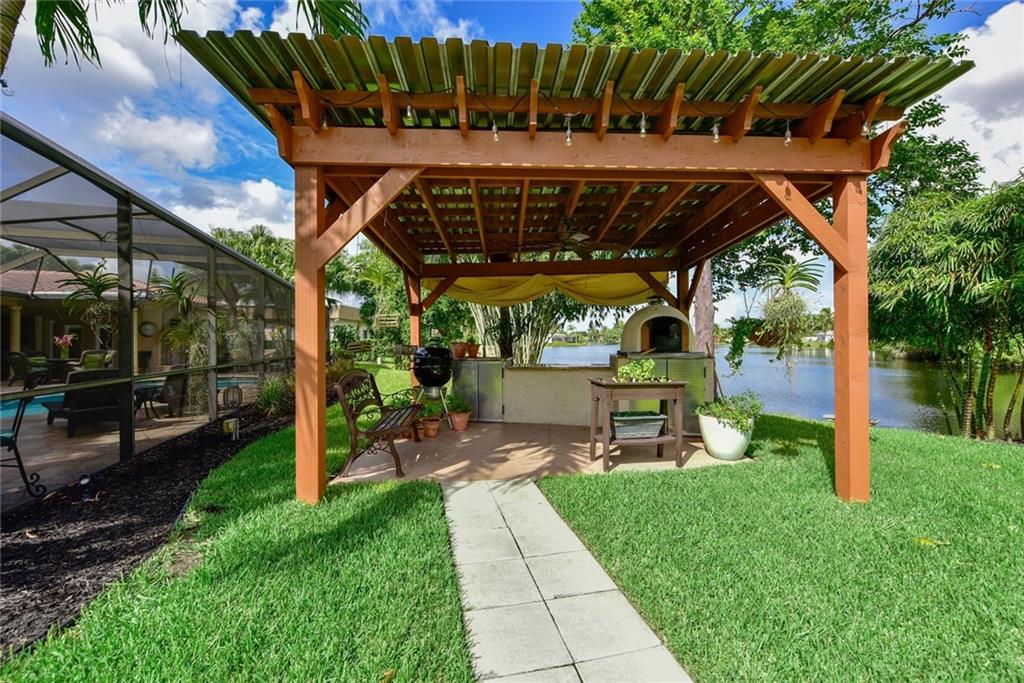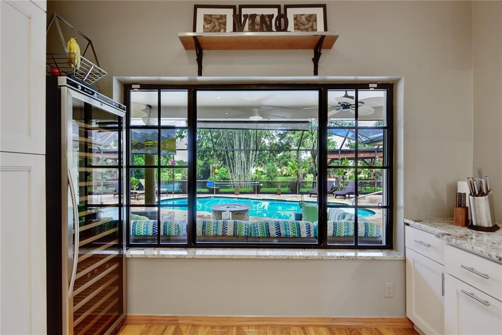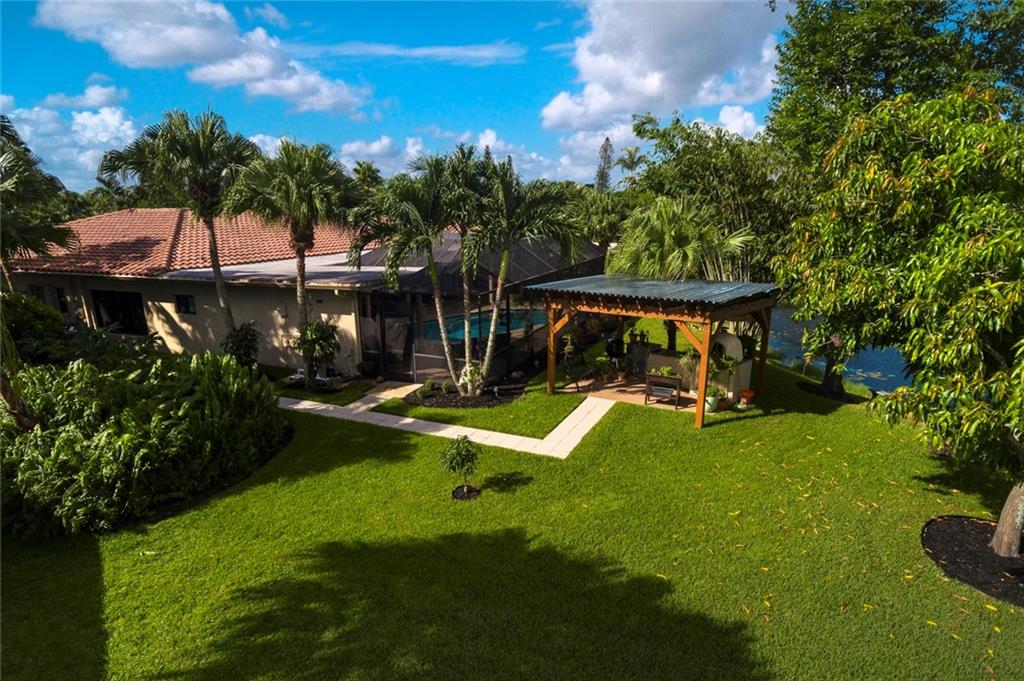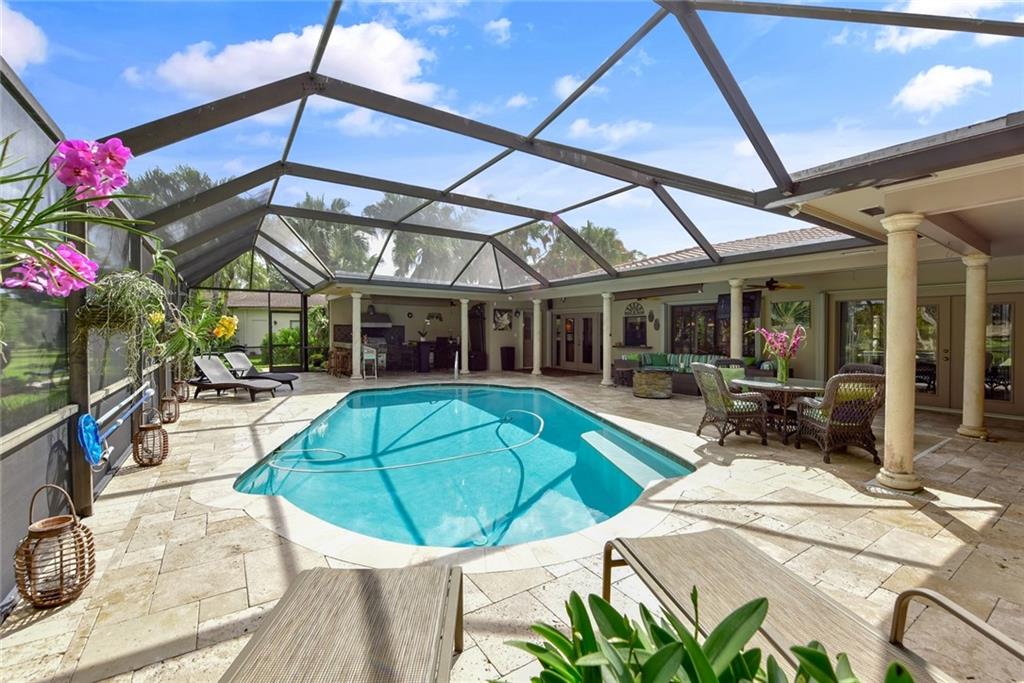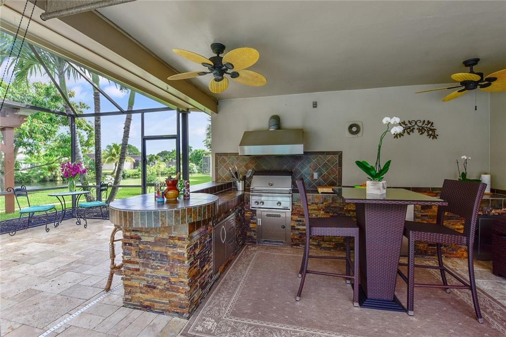 Weston stunner from top to bottom. The lush mature landscape beckons as you enter the double front door. Large entrance w/open dining, living & den space surround impressive atrium feature. Upgraded kitchen w/SS farmhouse sink, SS appliances, tall/deep cabinets & loads of counter top looking out on expansive new screen enclosed pool deck & entertainment space. Cozy family room & full cabana bath. All baths renovated. Master bath feels like a spa w/soaking tub plus multi-jet rain shower. Pool area is a must see! Tumbled marble deck w/french drains, NEW enclosure, surround sound, flat screen tvs, fruit trees, orchids PLUS imported Portuguese pizza oven under stand alone pergola on the banks of the stabilized water's edge. Sunsets are unique, private & unforgettable here. A must see!